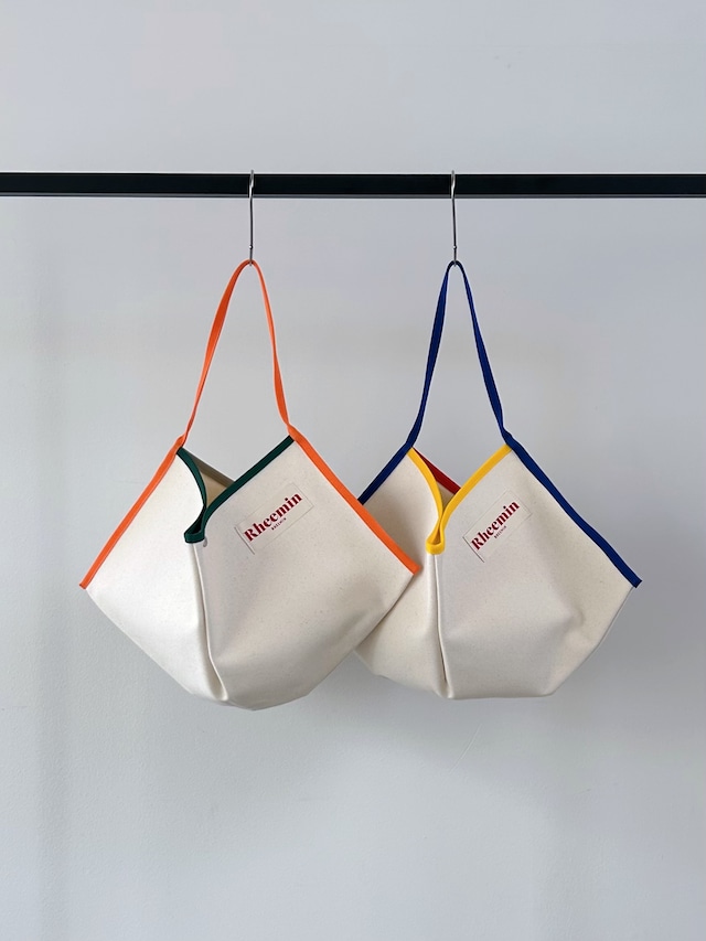 【Rheemin/リーミン】 Rheemin(リーミン)は、2018年にデザイナーを務める イ・ミンギョンが設立した、韓国発バッグブランドです。 “Determined to discover a new me(新しい自分を見つける決意)”をコンセプトに、透明感のある素材や鮮やかなカラー、印象的なフォルムを通して、日常にささやかな変化とアートを提案。 いつもの装いに自然に溶け込みながらも、確かな存在感を放ち、身につける人の個性や感性を引き出します。 Rheeminのバッグは、新しいスタイルや視点に出会うきっかけとなり、変化の一歩を軽やかに後押しします。 変わった形のキャンバス地バッグ。 かわいい配色でコーディネートをワンランクアップさせてくれます。 【サイズ】 たて:24.5 よこ:48 マチ:18 持ち手高さ:22.5 (cm) 【カラー】 Blue&Yellow&Red、Orange&DeepGreen&Beige 【素材】 ポリエステル50%、コットン50% 【原産国】 韓国 ※摩擦や濡れた際に色移りする場合がございますのでご注意ください。 ※モニター発色の具合により色合いが異なる場合がございます。 (Rheemin_3)