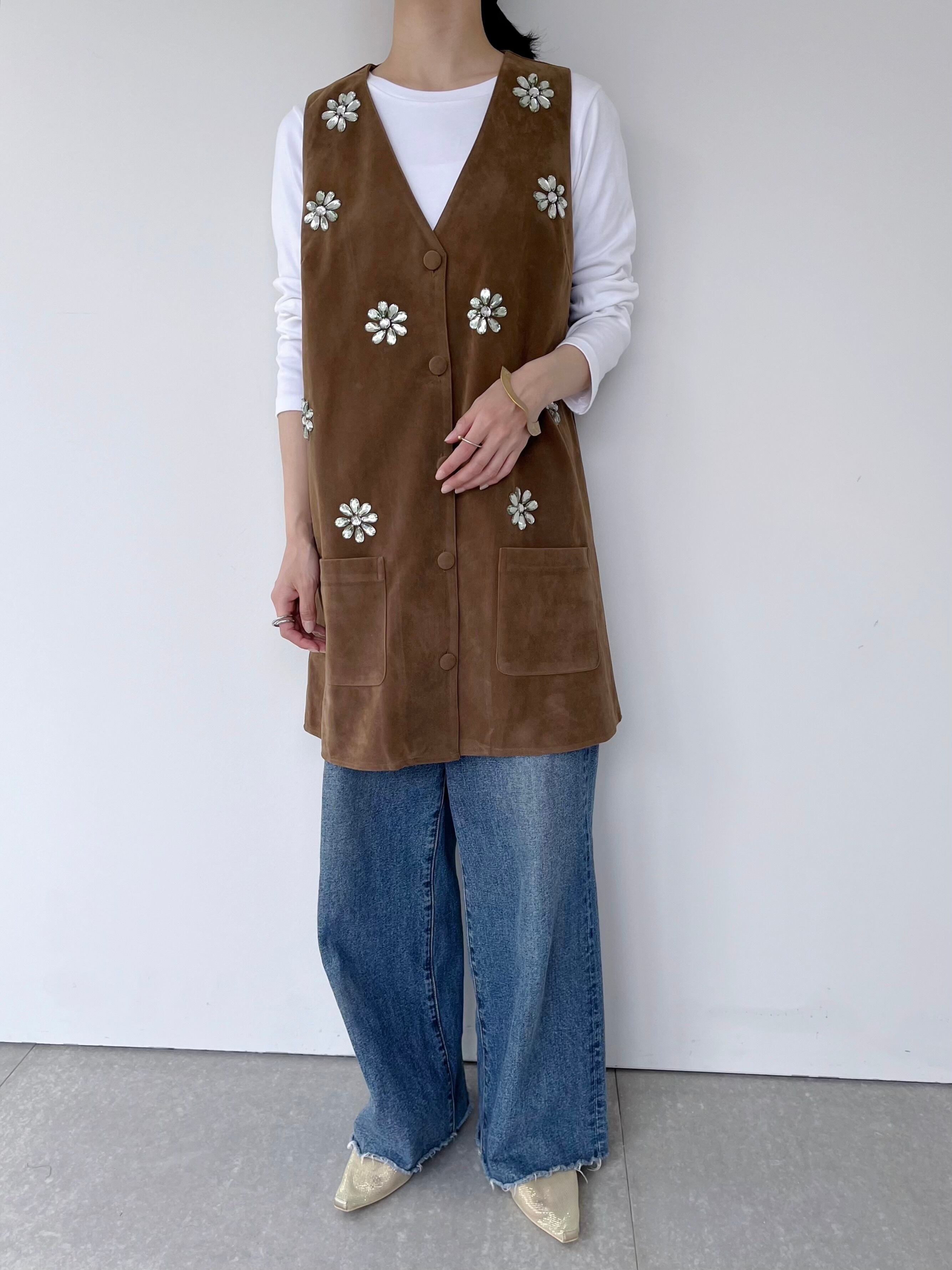 【MUVEIL/ミュベール】 デザイナーの中山路子が2007年秋冬シーズンより「ミュベール(MUVEIL)」をスタート。 ブランド名は、フランス語ですずらんを意味するmuguetと、英語で“かげから幸せを願う”を意味するveilを合わせたもの。 大人になった女性が子供のころを思い出すような、身に着けたときにときめくお洋服を届けている。 いつの時代も自分らしいおしゃれを楽しみ、年を重ねてきた女性たちを、私たちは、敬愛を込めて「グランマ」と呼んでいます。毎シーズンのテーマごとにドレスアップして登場する彼女たちは、MUVEILの永遠のミューズです。 ワンウォッシュのデニムパンツ。 適度にハリがあり、シルエットをきれいに見せながらも、動きやすさと快適さを両立した10オンスのデニム素材を使用。 ワイドレッグで、しっかりとしたオンスのため足のラインを拾わずにシルエットが際立つ一着。 後ろポケットのリボンとオリジナルジーンズタックボタンとレザーパッチがポイント。 【サイズ】 36 ウエスト:70.4 ヒップ:96 股上:30.8 股下:68.2 わたり幅:32.7 38 ウエスト:73.4 ヒップ:99 股上:31.3 股下:70.2 わたり幅:33.7 (cm) 【カラー】 Whihte、Black 【素材】 コットン100% 【原産国】 日本 ※モデル身長163cm、36サイズ着用 ※モニター発色の具合により色合いが異なる場合がございます。 (MA254FP008)