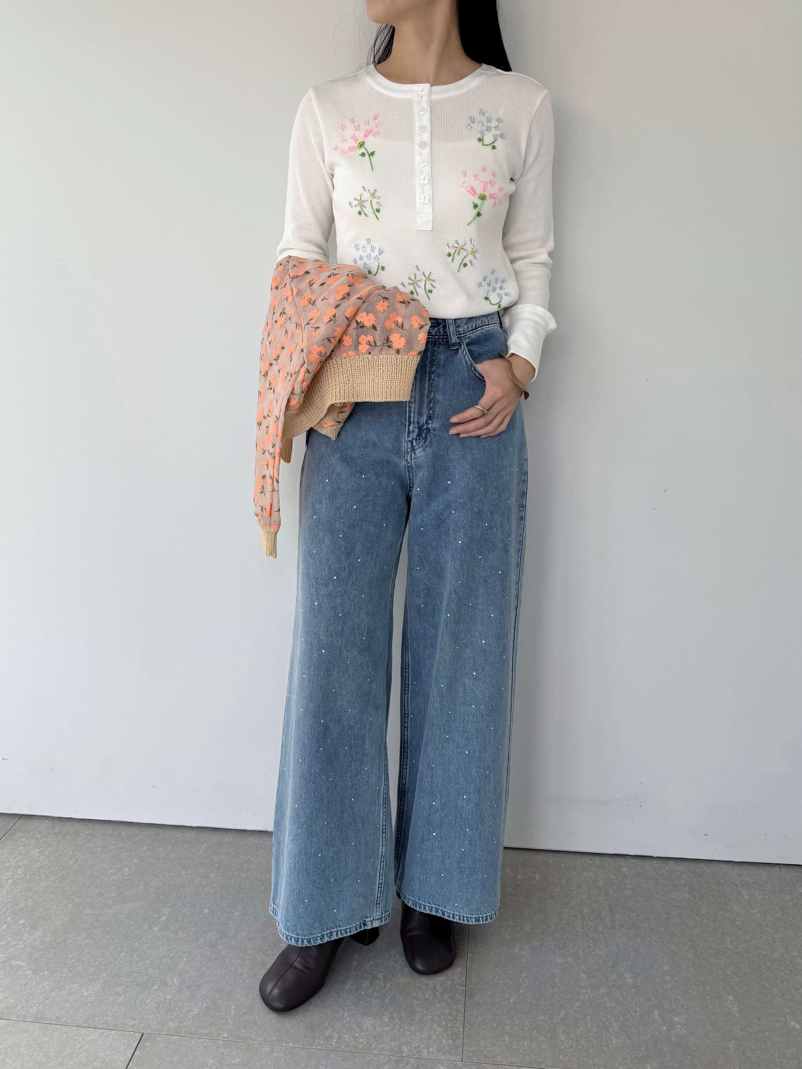 MUVEIL ビーズフラワー刺繍パンツ