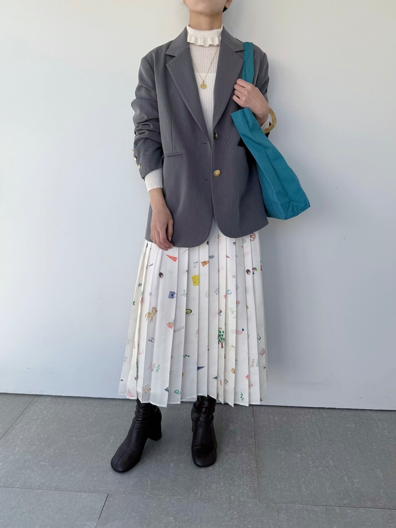 【MUVEIL/ミュベール】 デザイナーの中山路子が2007年秋冬シーズンより「ミュベール(MUVEIL)」をスタート。 ブランド名は、フランス語ですずらんを意味するmuguetと、英語で“かげから幸せを願う”を意味するveilを合わせたもの。 大人になった女性が子供のころを思い出すような、身に着けたときにときめくお洋服を届けている。 いつの時代も自分らしいおしゃれを楽しみ、年を重ねてきた女性たちを、私たちは、敬愛を込めて「グランマ」と呼んでいます。毎シーズンのテーマごとにドレスアップして登場する彼女たちは、MUVEILの永遠のミューズです。 制服をイメージしたプリーツのスカート。 ベーシックなアイテムに、コレクションテーマに合わせて学生時代にマジックペンで描いたようなオリジナルの落書きプリントで遊び心を添えた一着。 動くたびに揺れるシルエットが、エレガンスと可愛らしさを演出します。 【サイズ】 36 ウエスト:65 ヒップ:96 着丈:76 38 ウエスト:68 ヒップ:99 着丈:80 (cm) 【カラー】 Ecru 【素材】 ポリエステル100% 【原産国】 日本 ※サイドファスナー仕様 ※裏地付き、ポケットなし ※モデル身長163cm、38サイズ着用 ※モニター発色の具合により色合いが異なる場合がございます。 (MA254FS005)