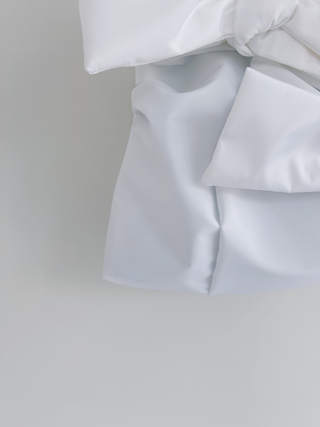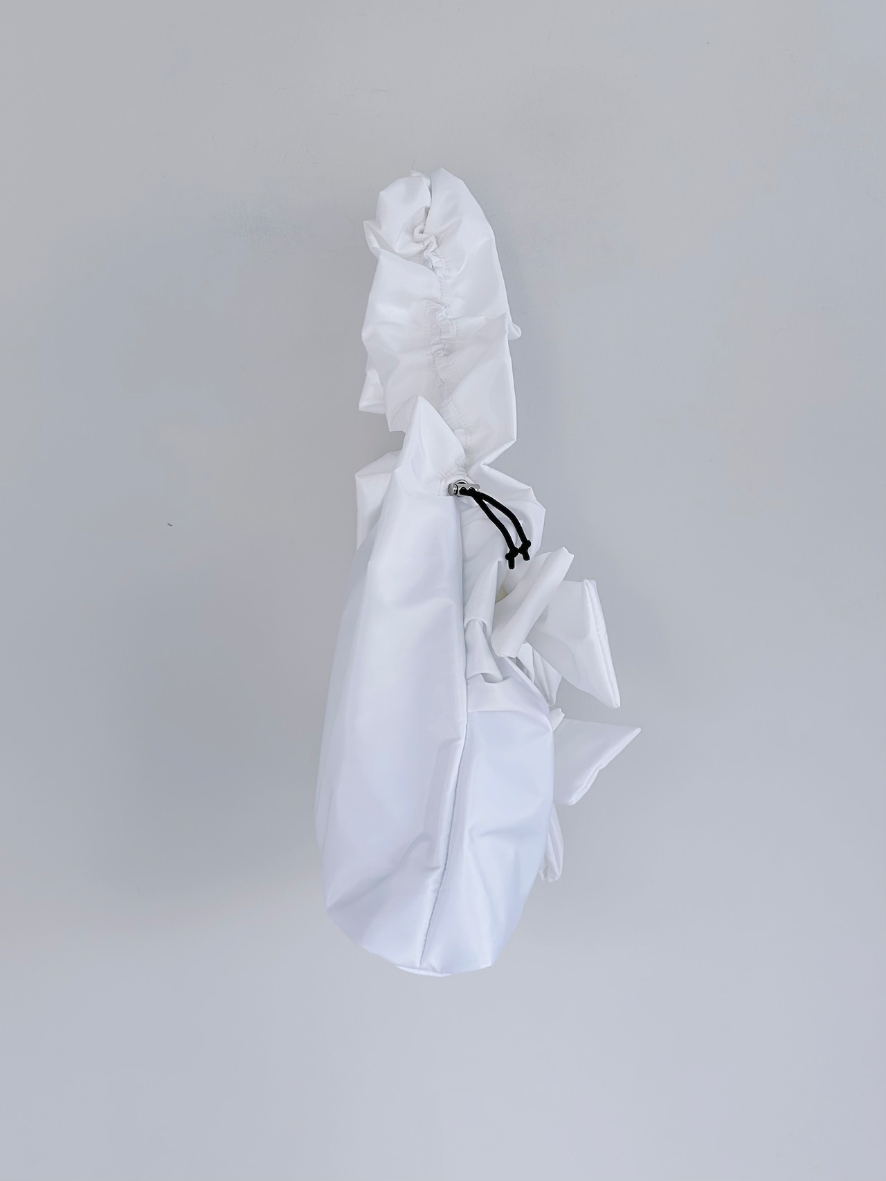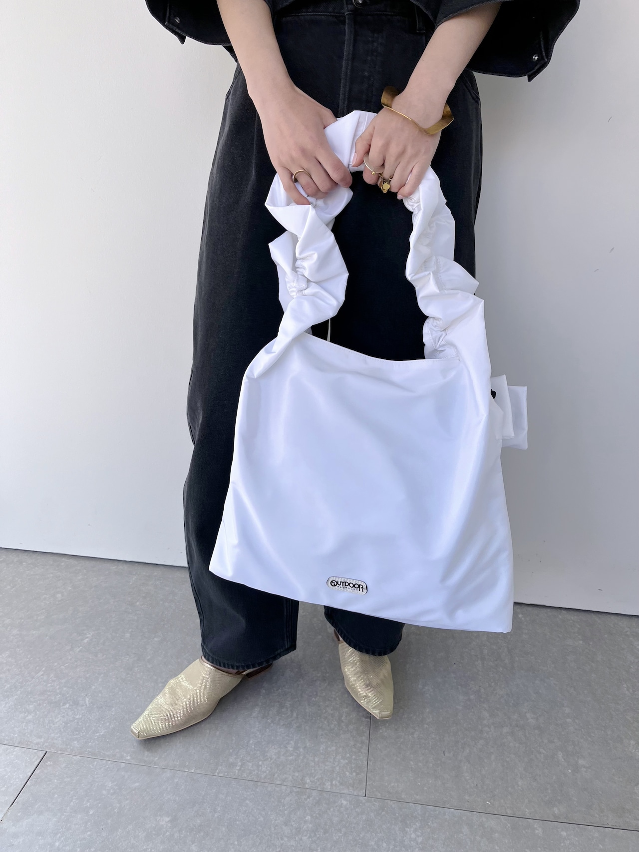 ドローストリングでバッグストラップにギャザーを寄せたり、リボンを結び直してボリュームが調整できたりと表情を変えられるのもポイントです。