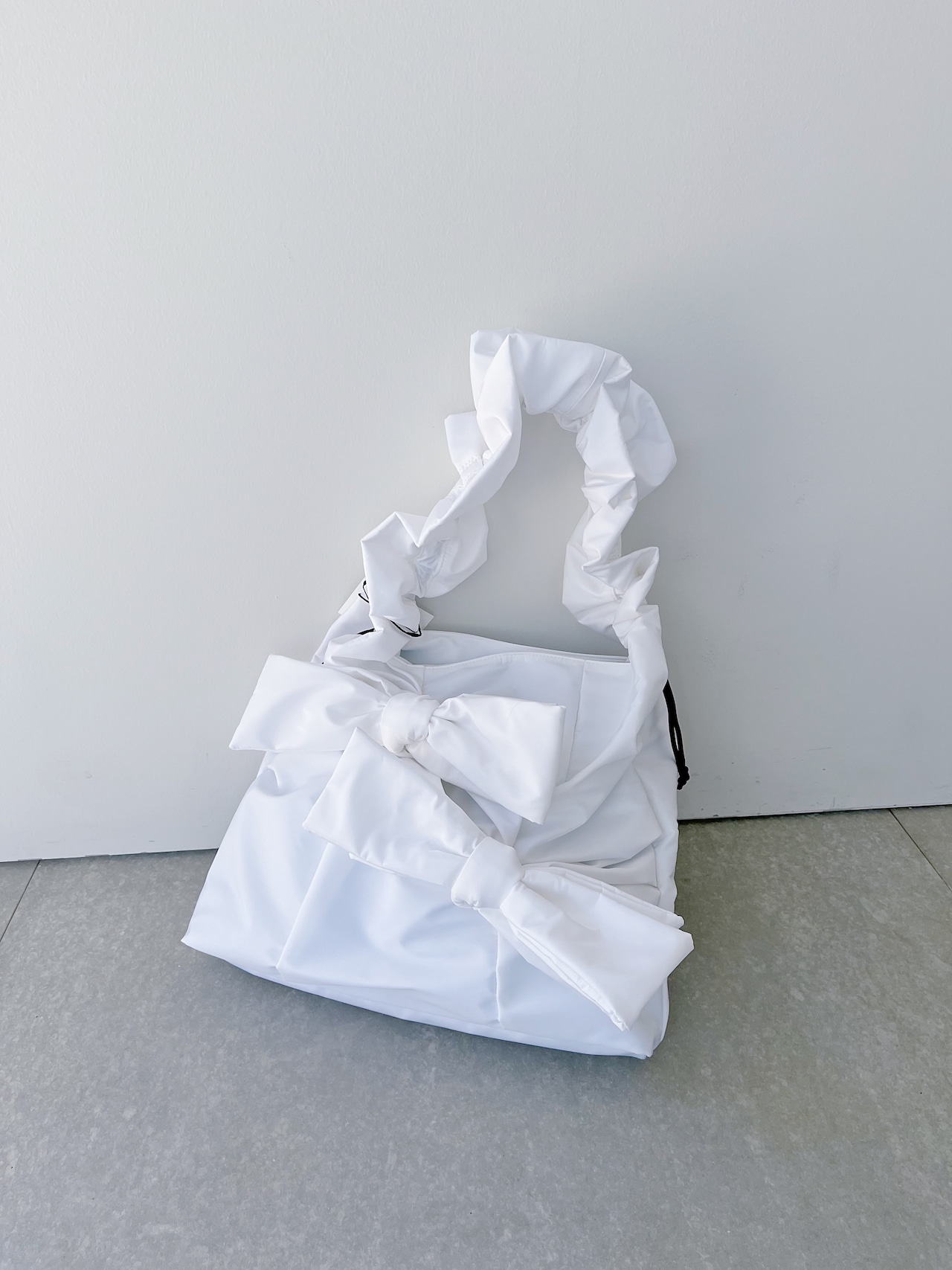 パターンメイキングで立体的なリボンがアイキャッチ―なトートバッグは、たっぷり荷物が入るビッグサイズになっています。
