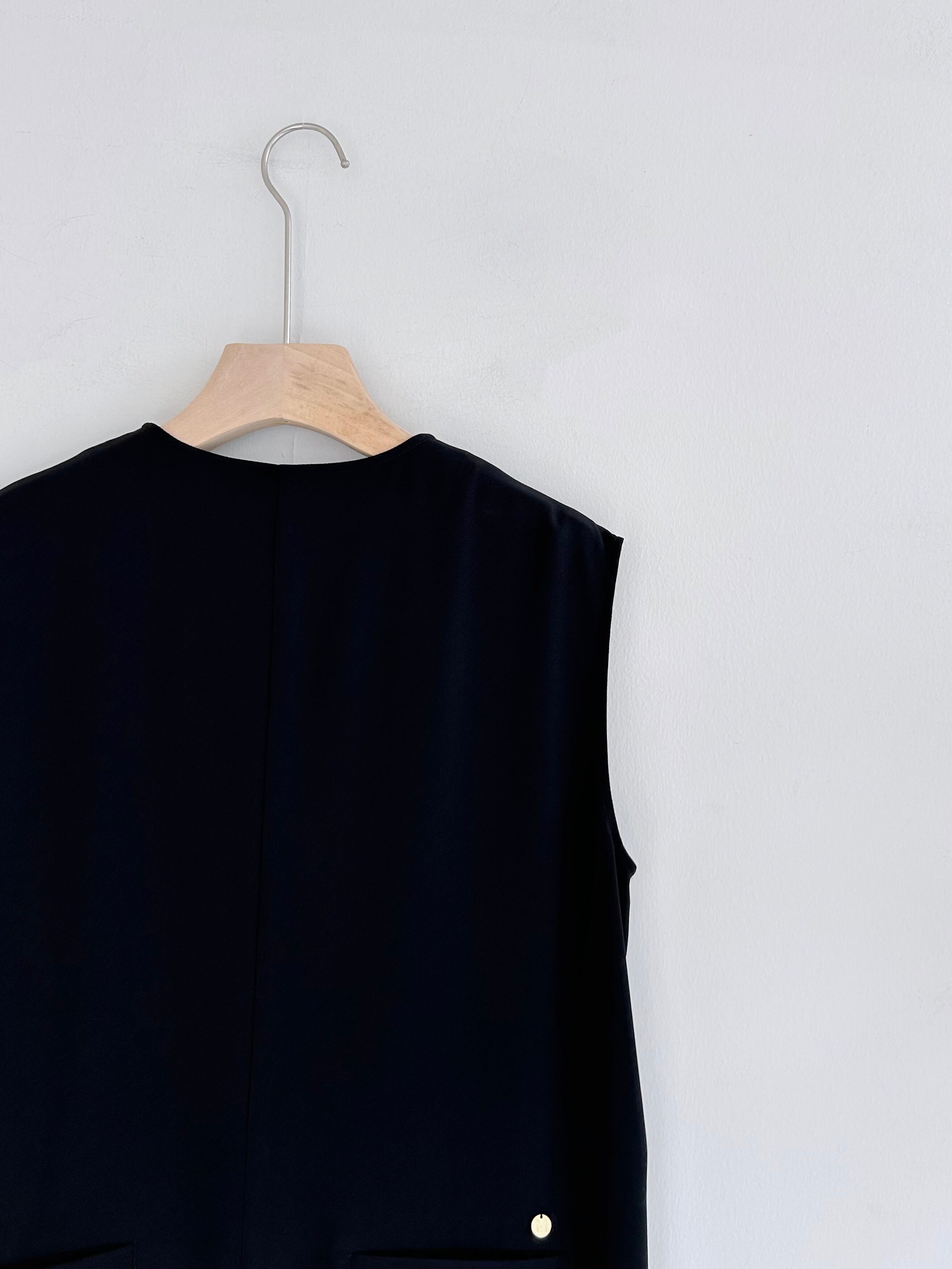 前開きなのでロング丈のジレとしてもお楽しみいただけます。