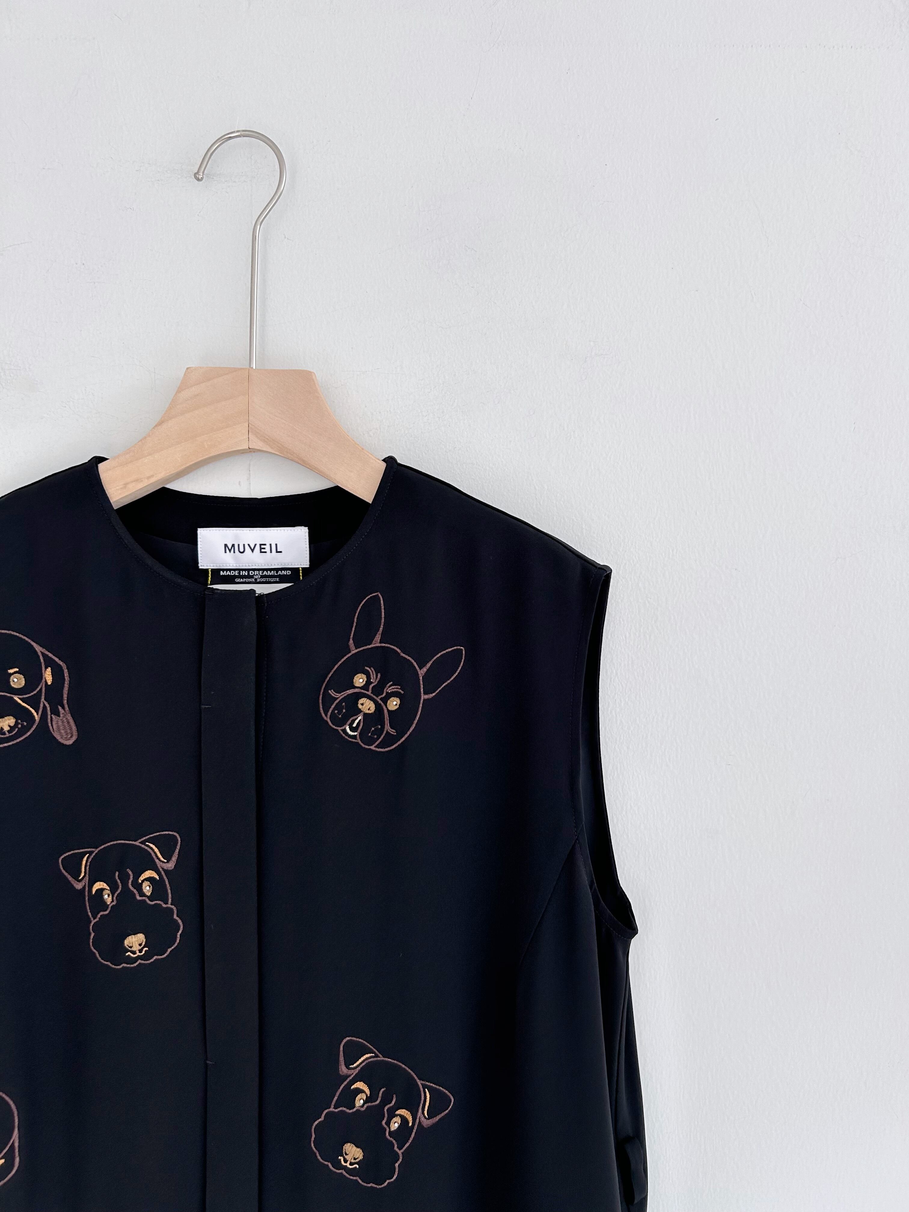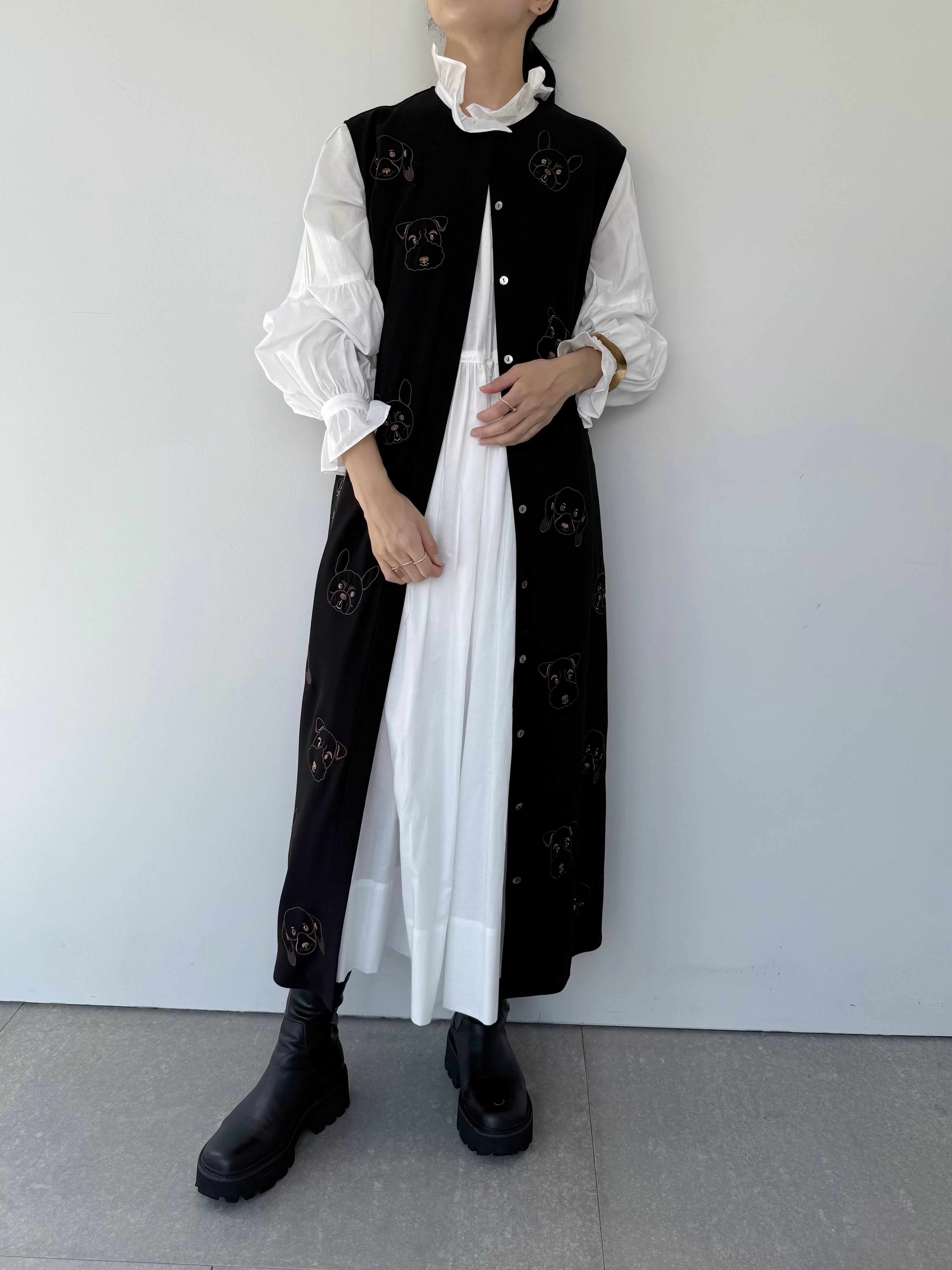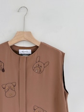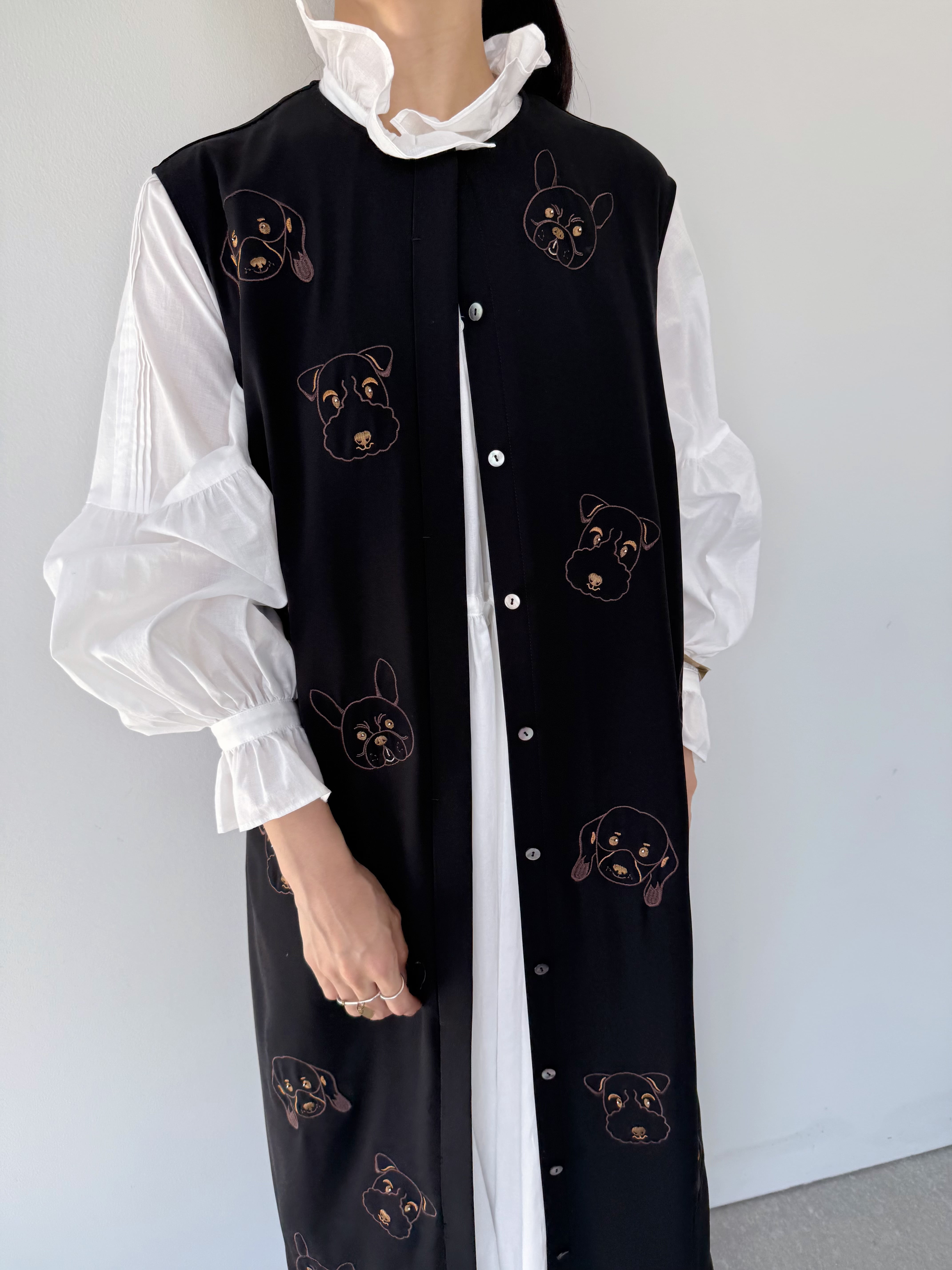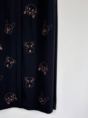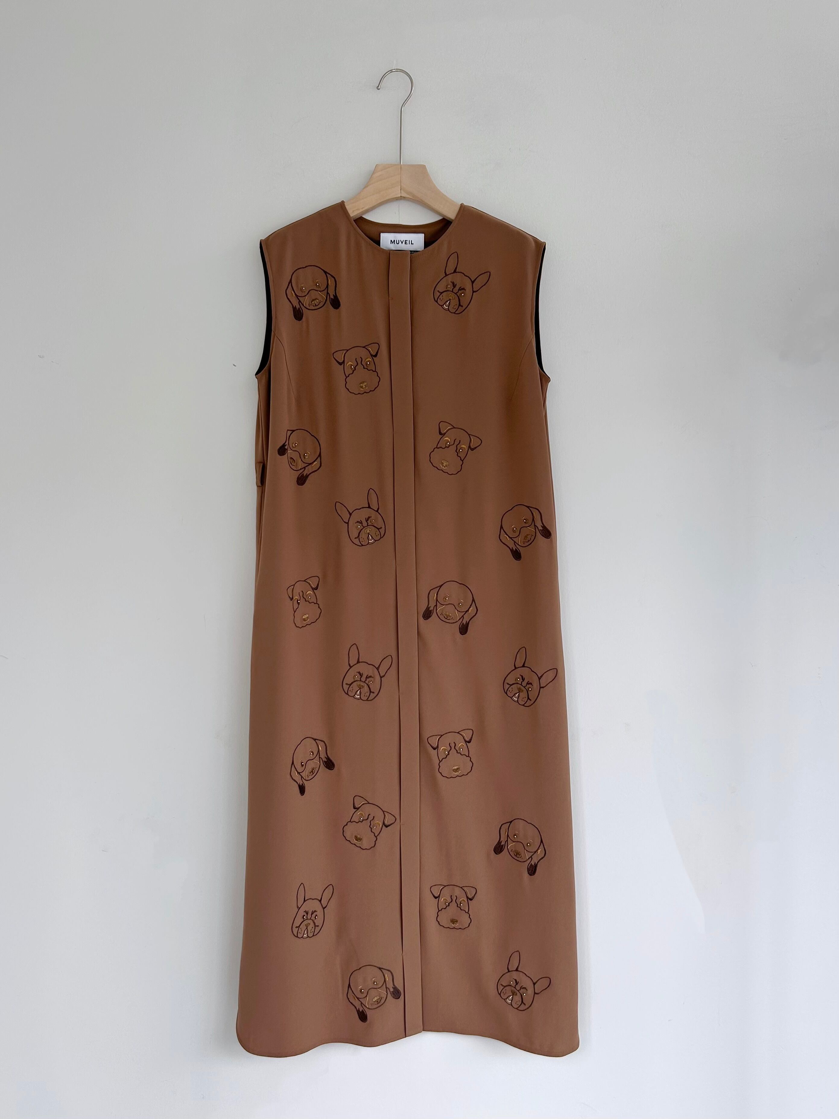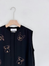 ダックスフント、シュナウザー、フレンチブルドックの刺繍をプリントのように施したワンピース。
