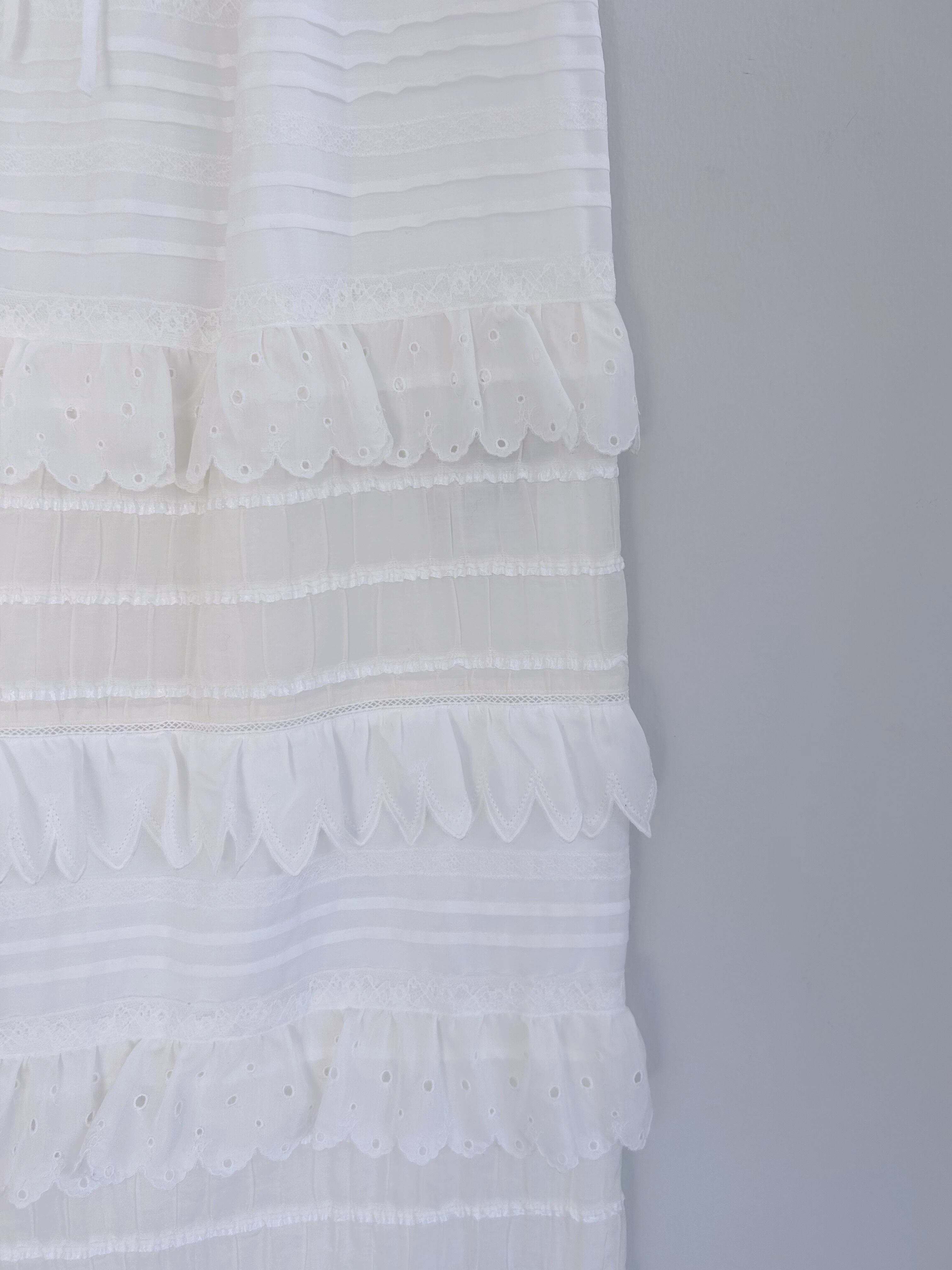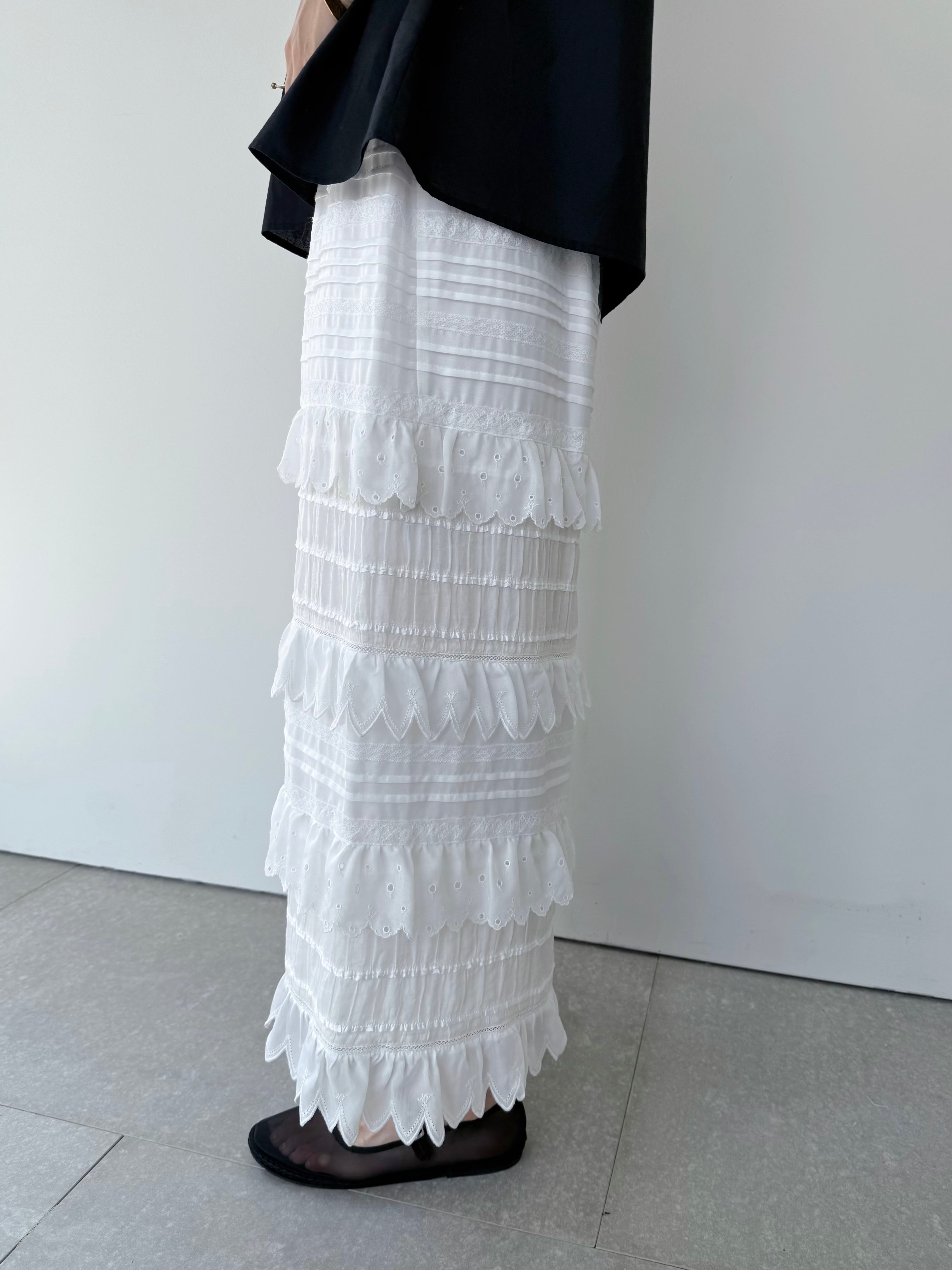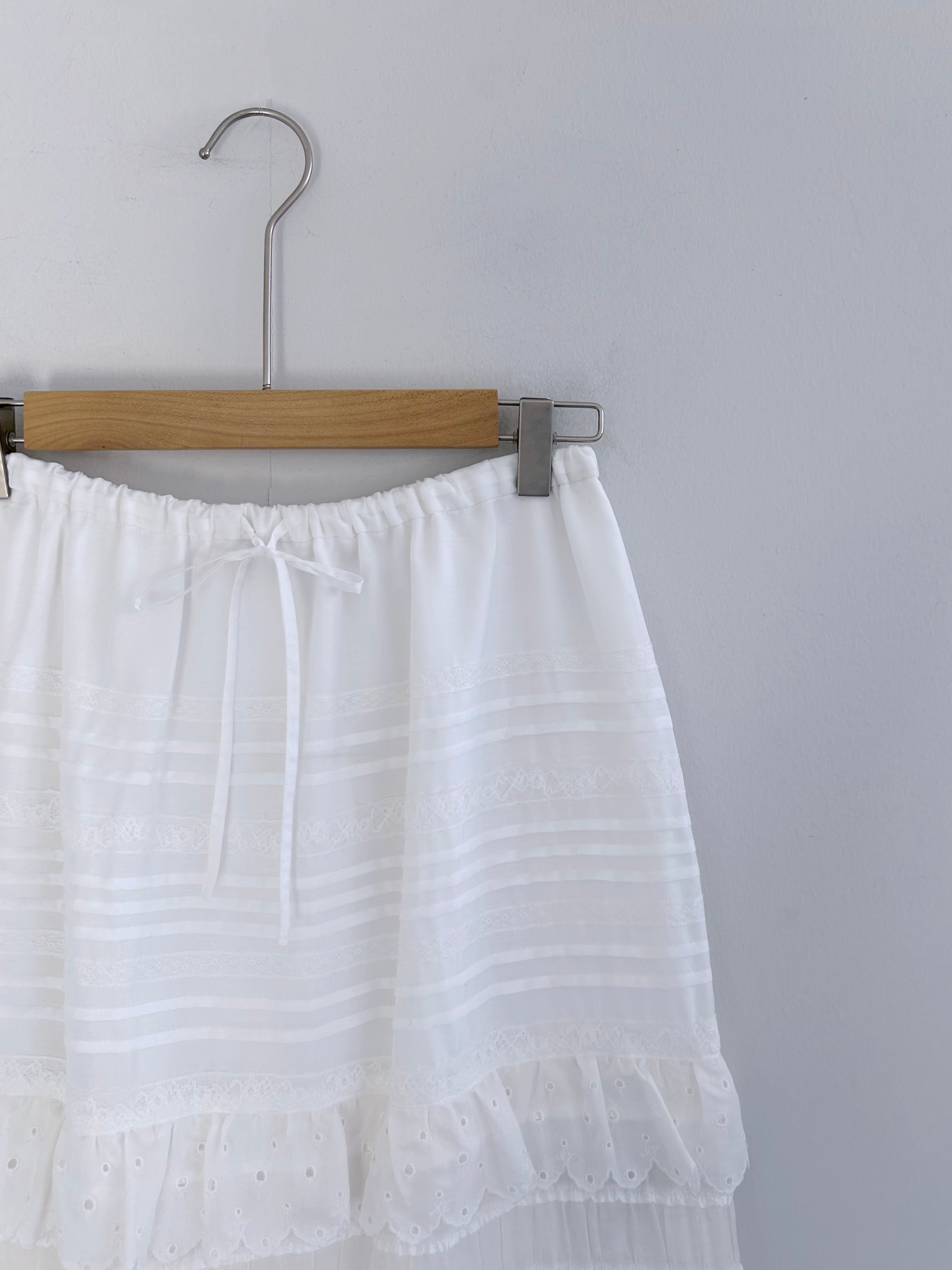 ラッセルレースとオリジナルレースを贅沢にドッキングしたIラインスカート。