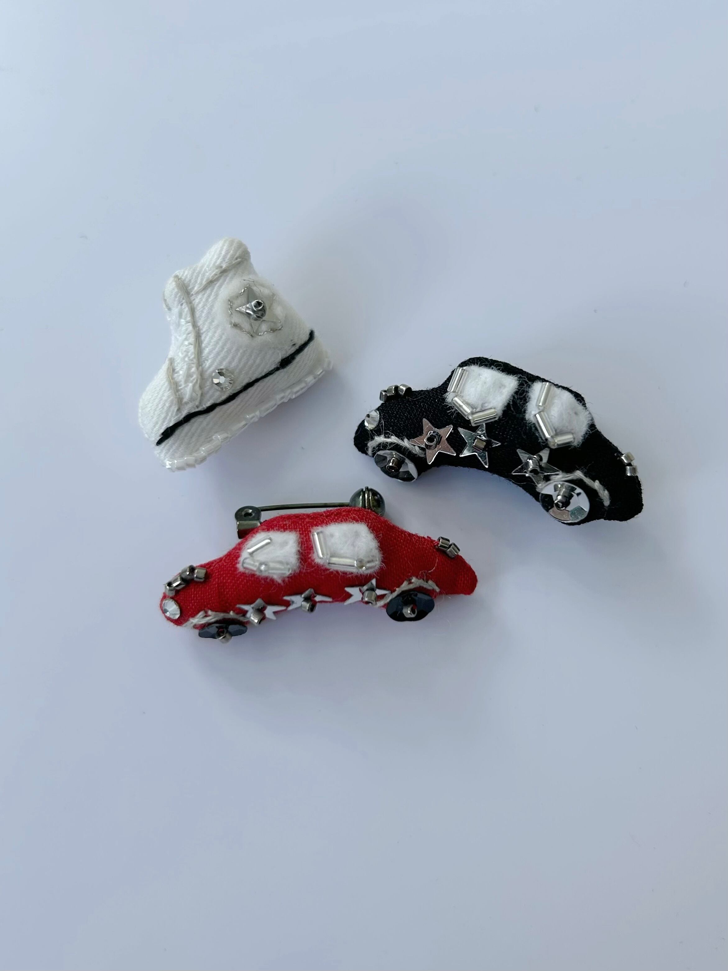 身の回りのモチーフを題材とした、遊びこころ満載のハンドメイドアクセサリー。生地から選んでビーズや刺繍が施されたデザインは、普段のコーディネートに合わせると特別なものに。