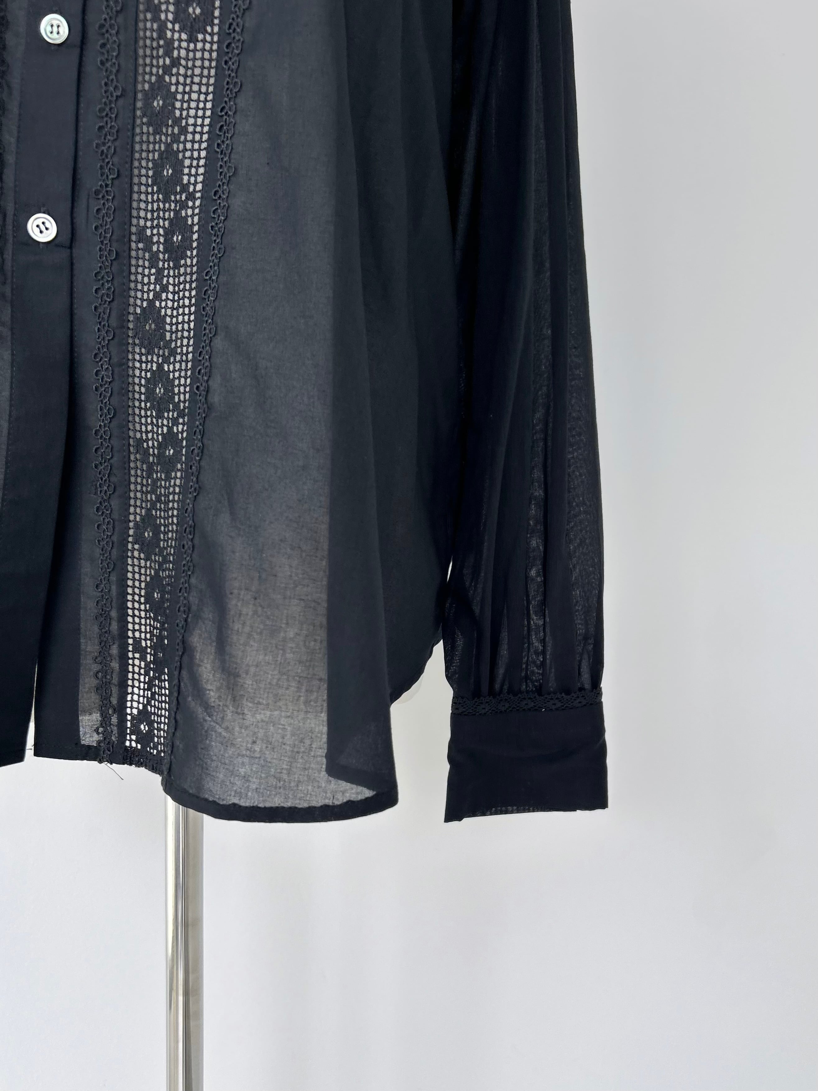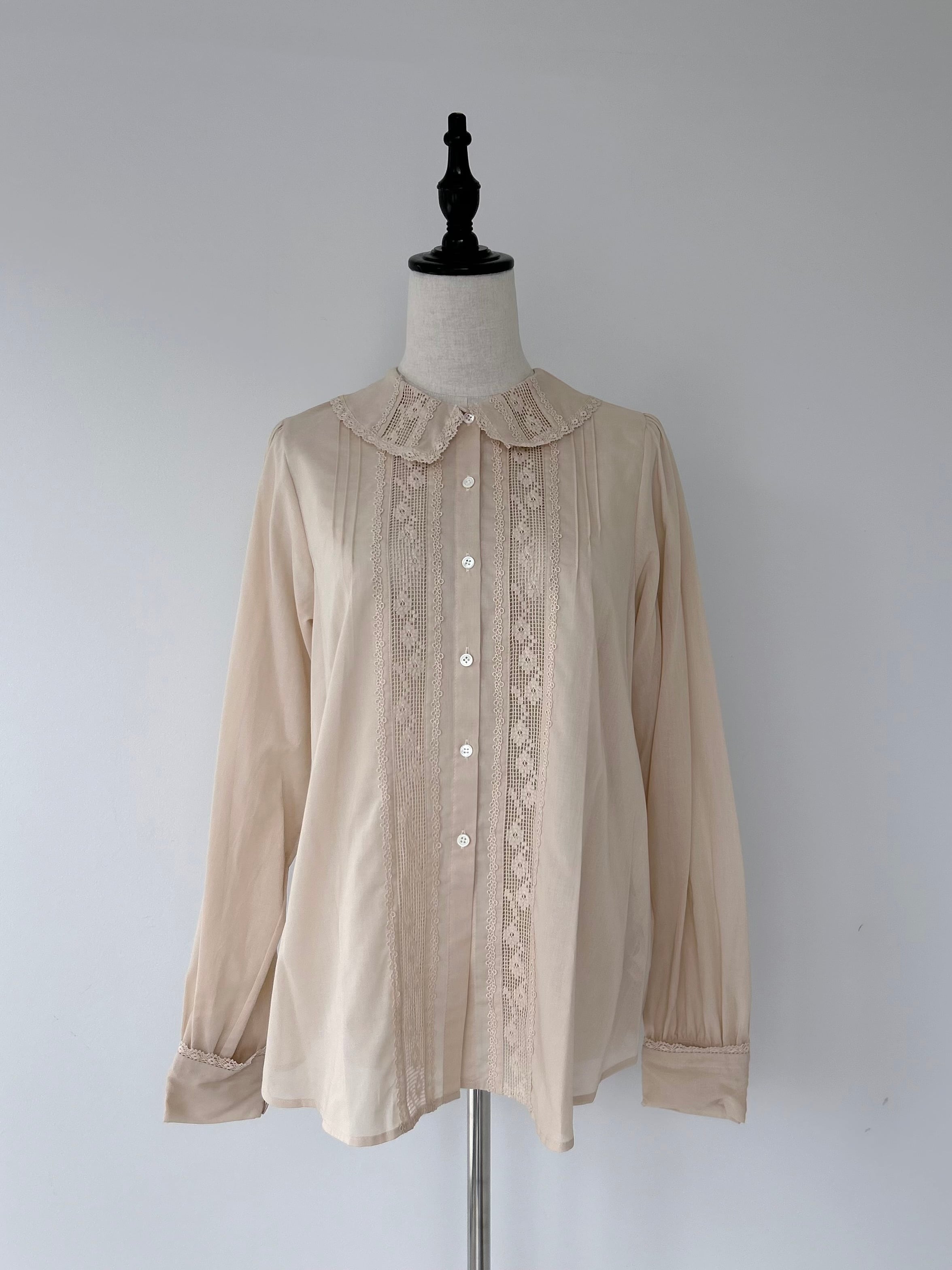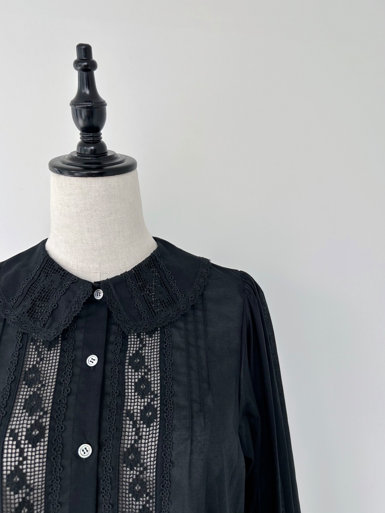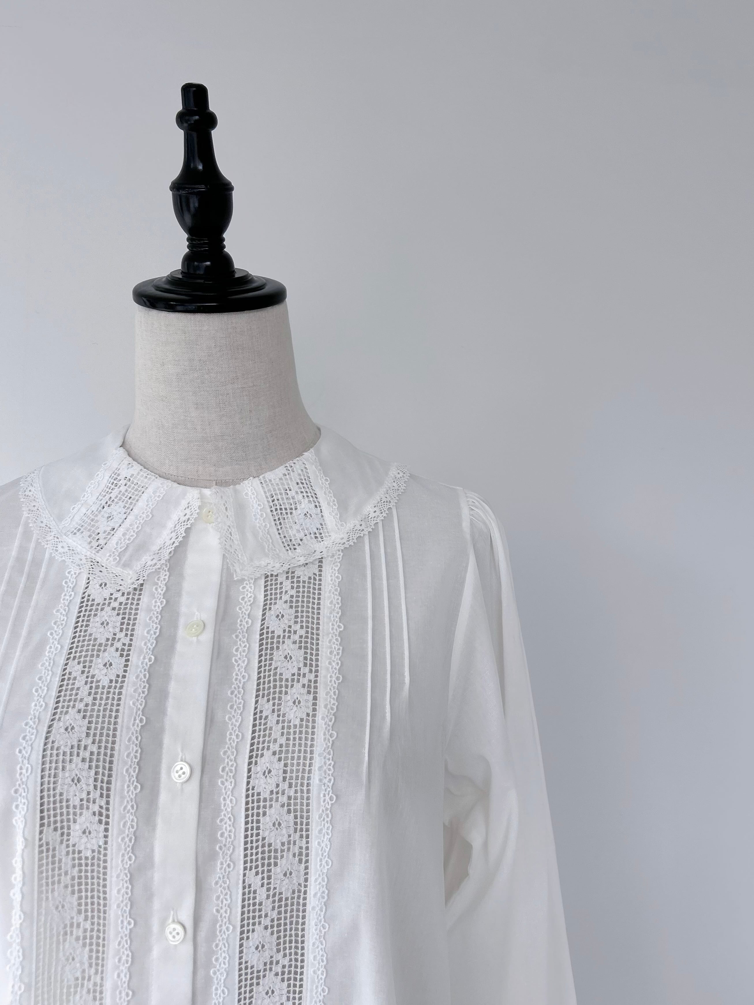繊細で美しいレースが大人の女性のふさわしい気品を引き寄せるシャツブラウス。