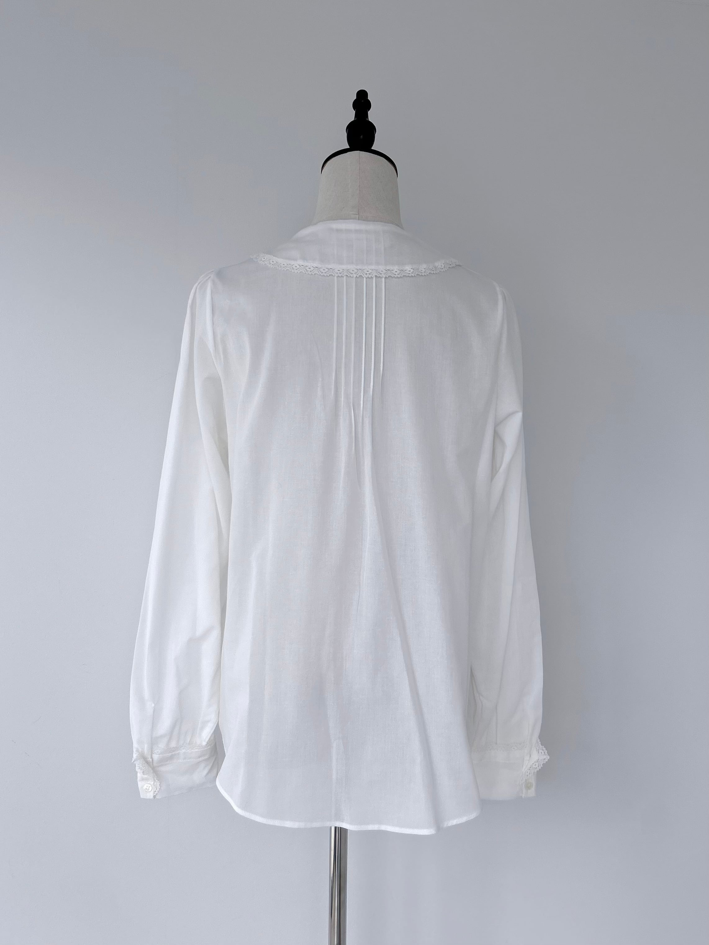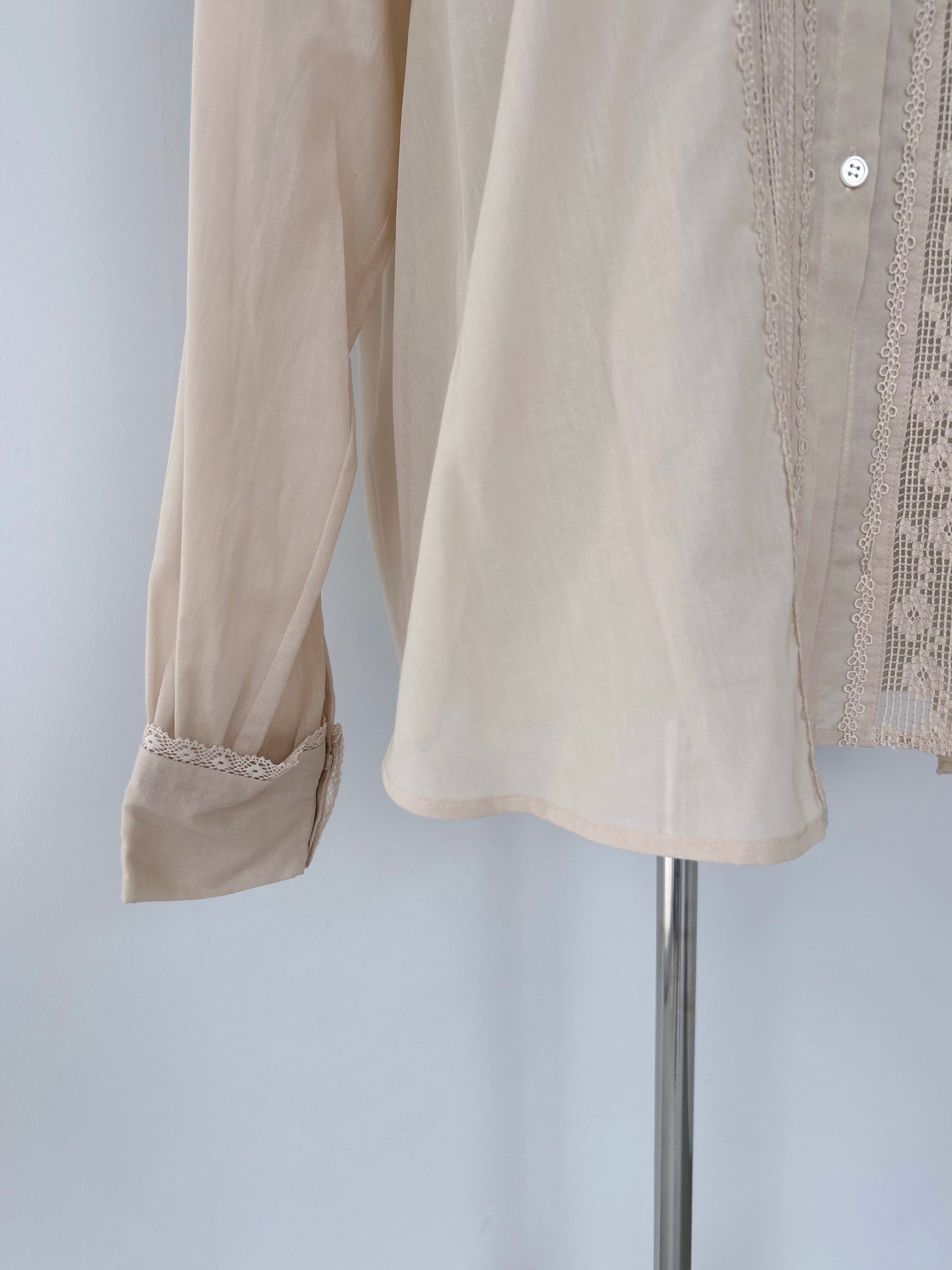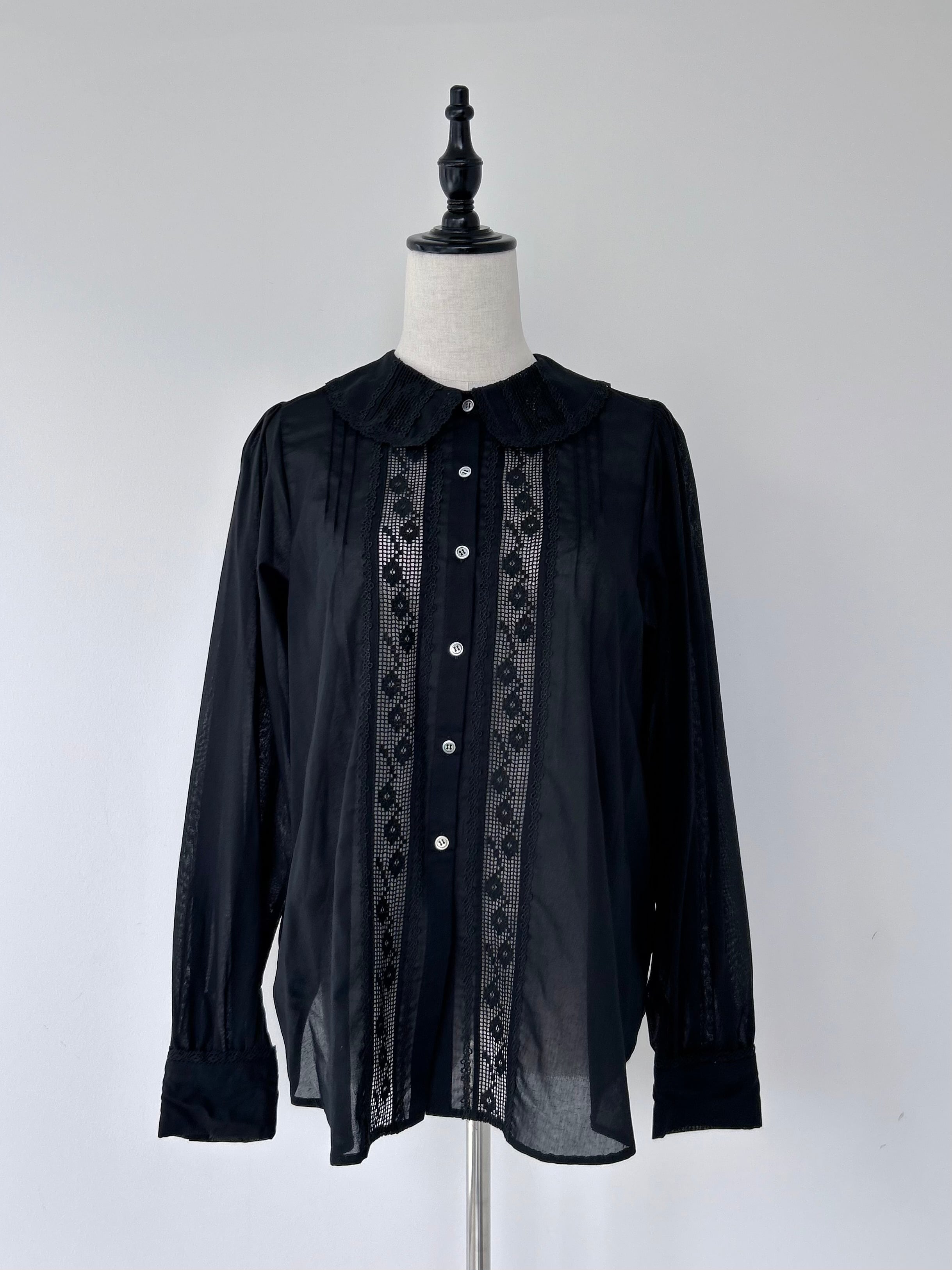 繊細で美しいレースが大人の女性のふさわしい気品を引き寄せるシャツブラウス。