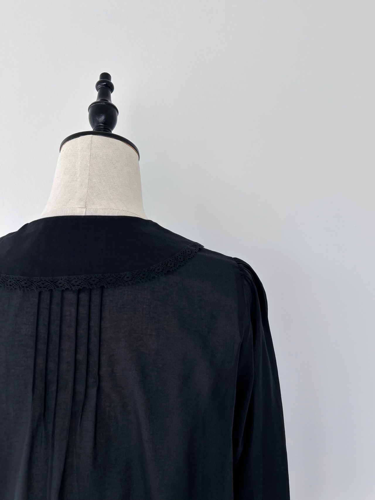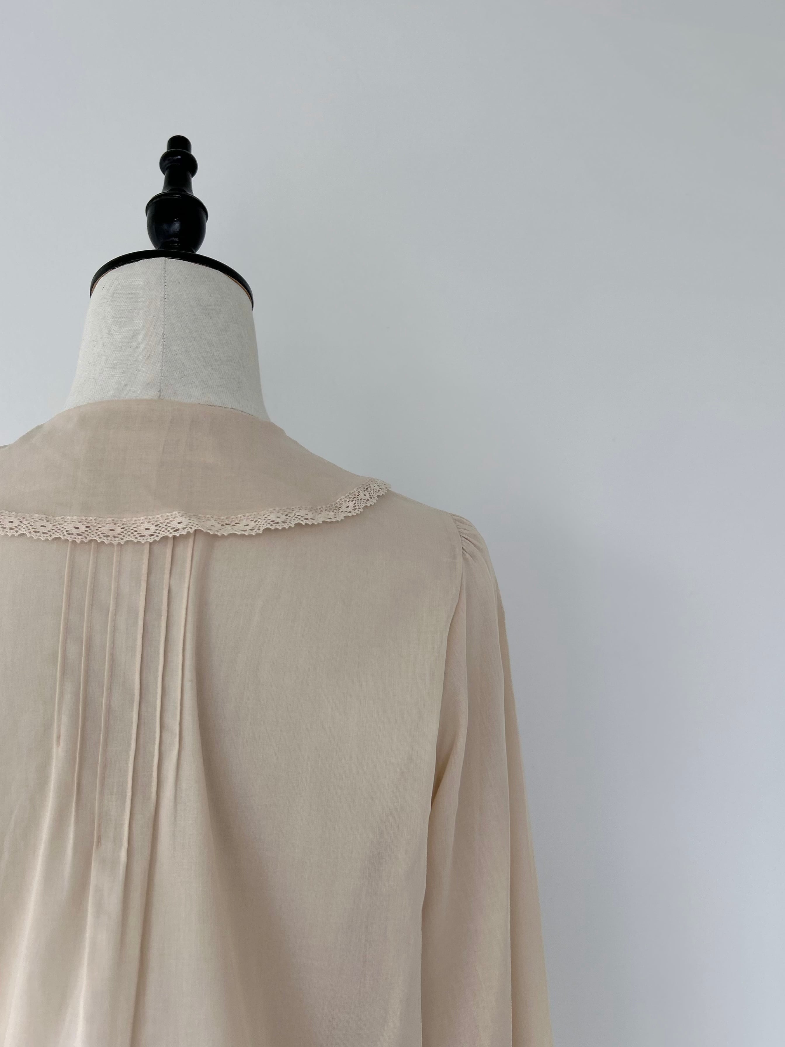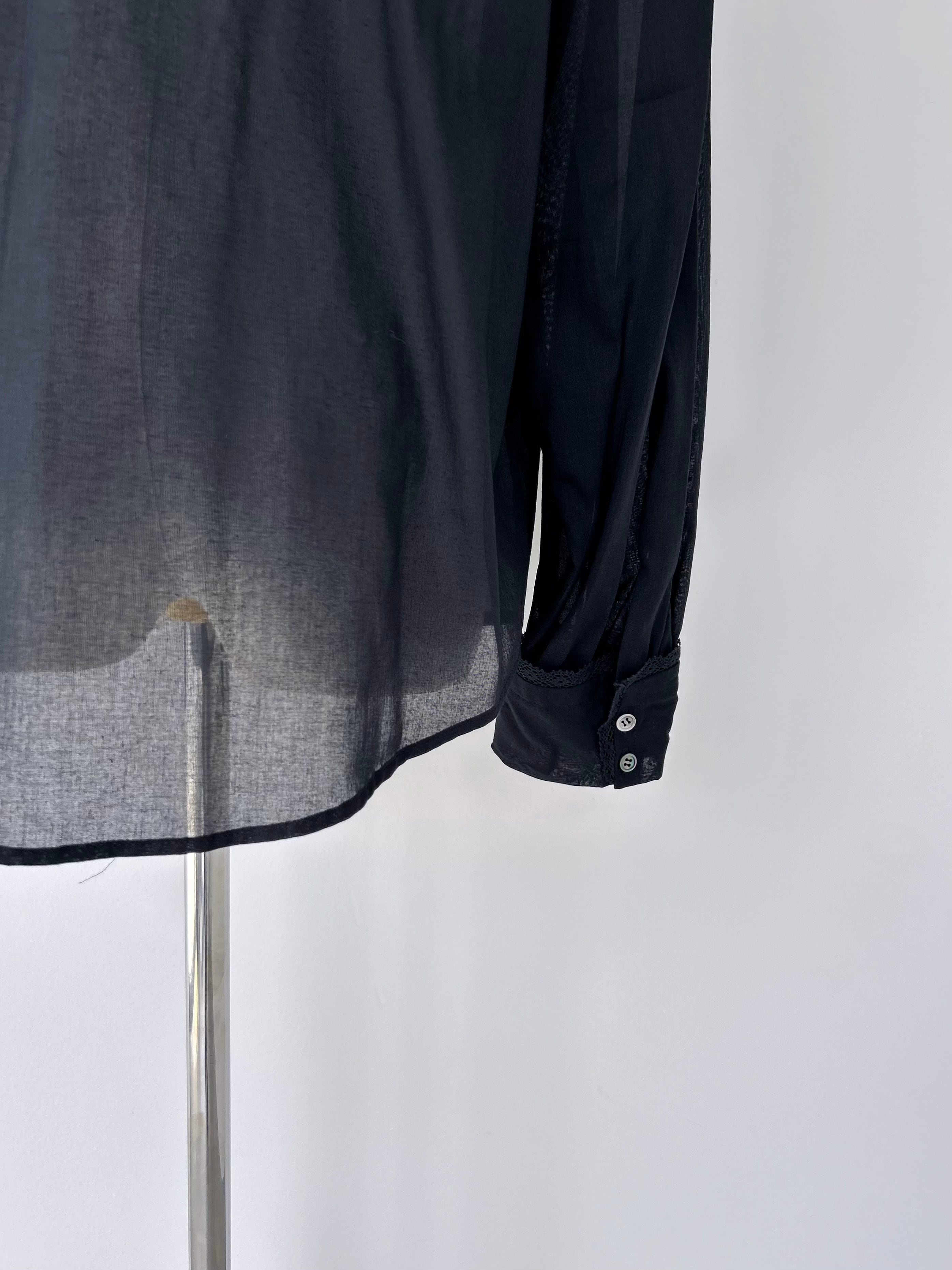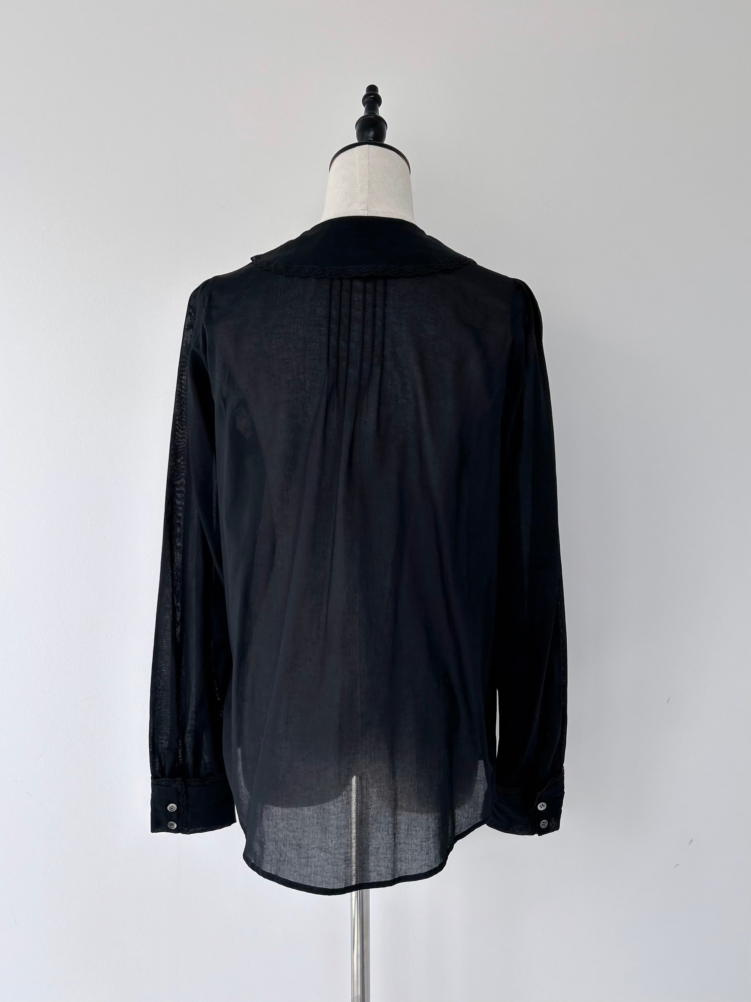 繊細で美しいレースが大人の女性のふさわしい気品を引き寄せるシャツブラウス。