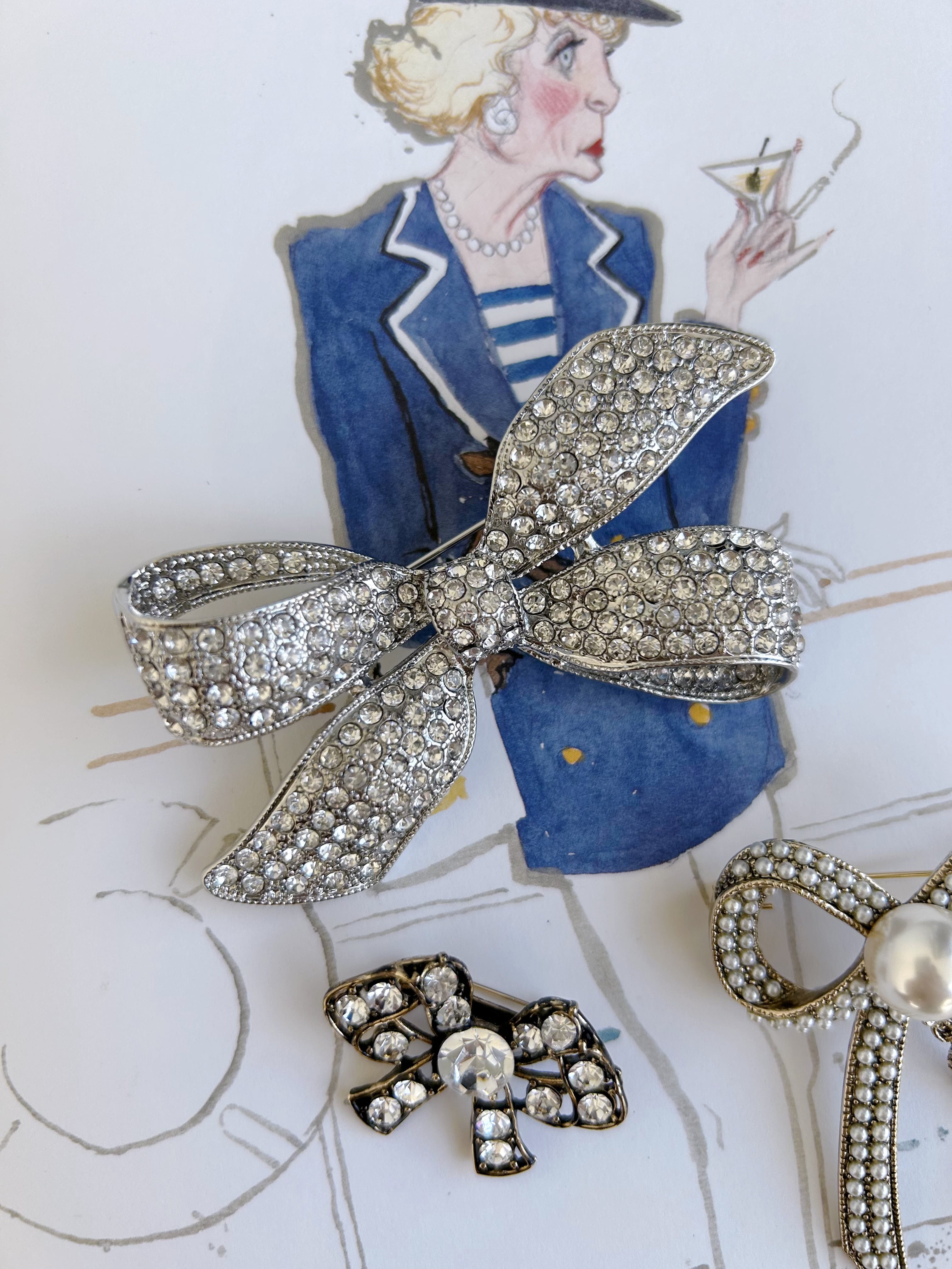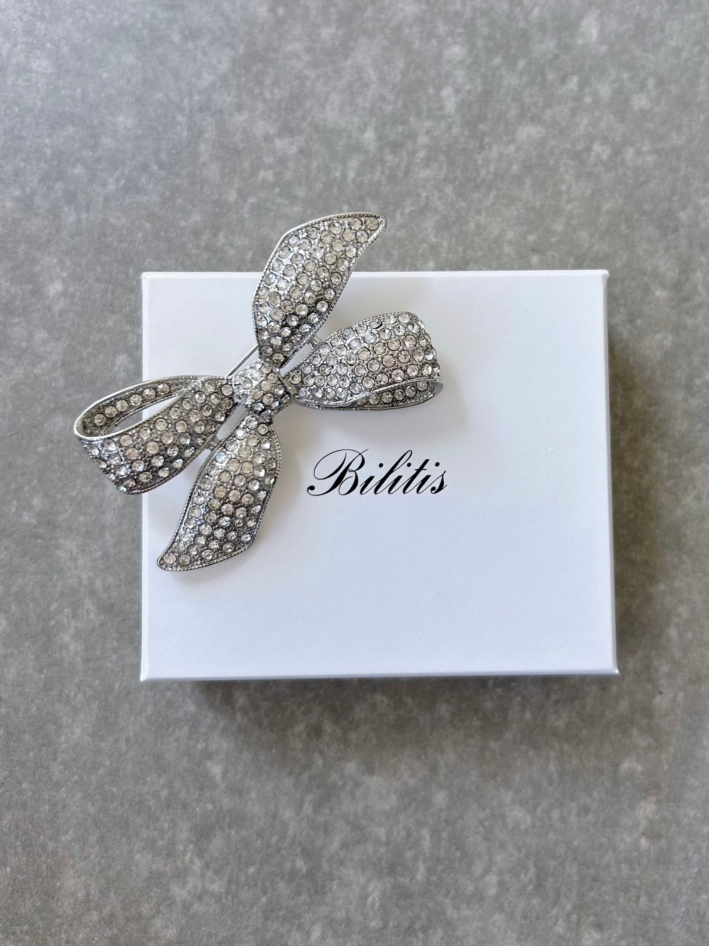 シルバーの美しい輝きと愛らしいリボンモチーフが大人かわいいブローチ。