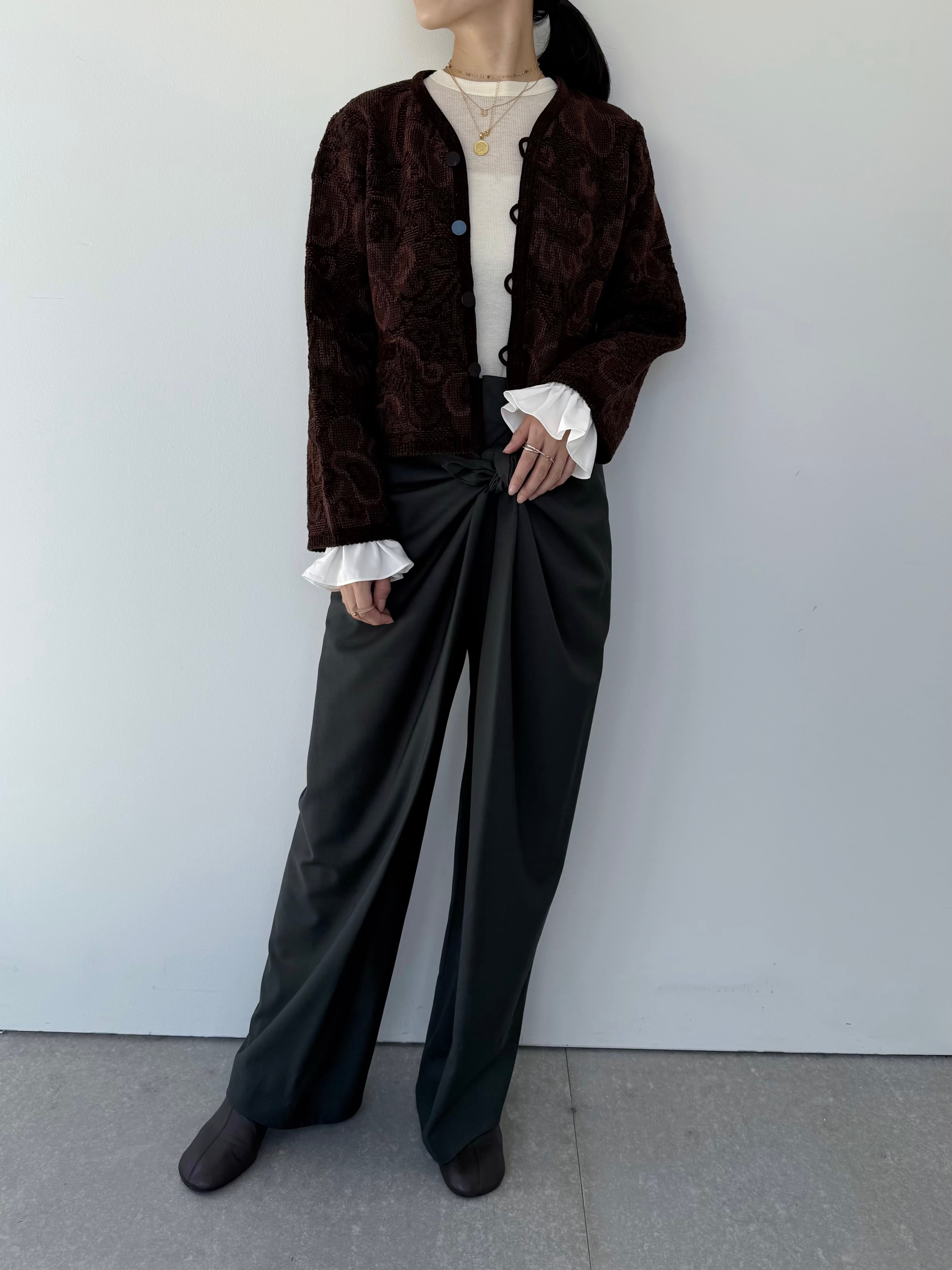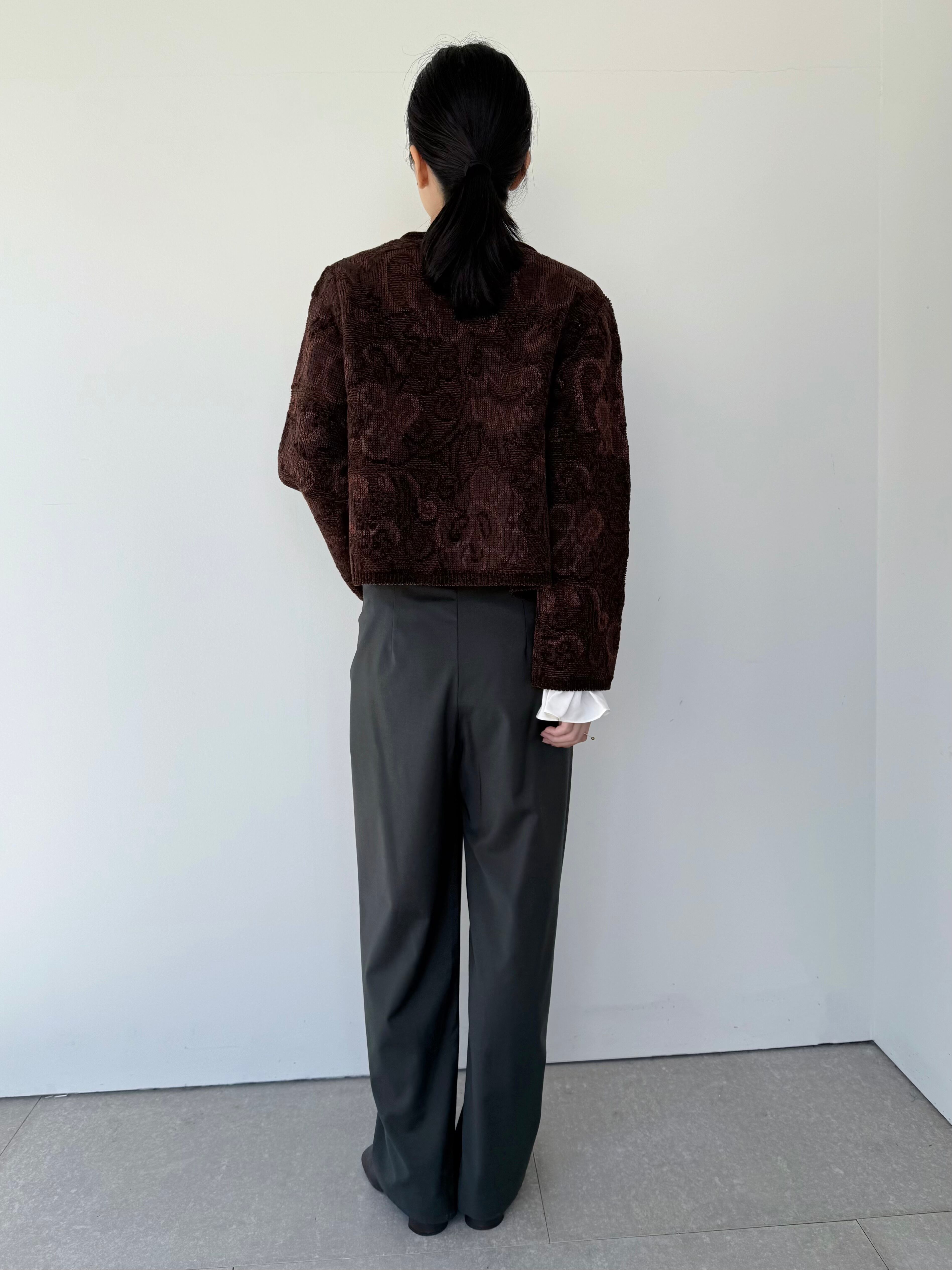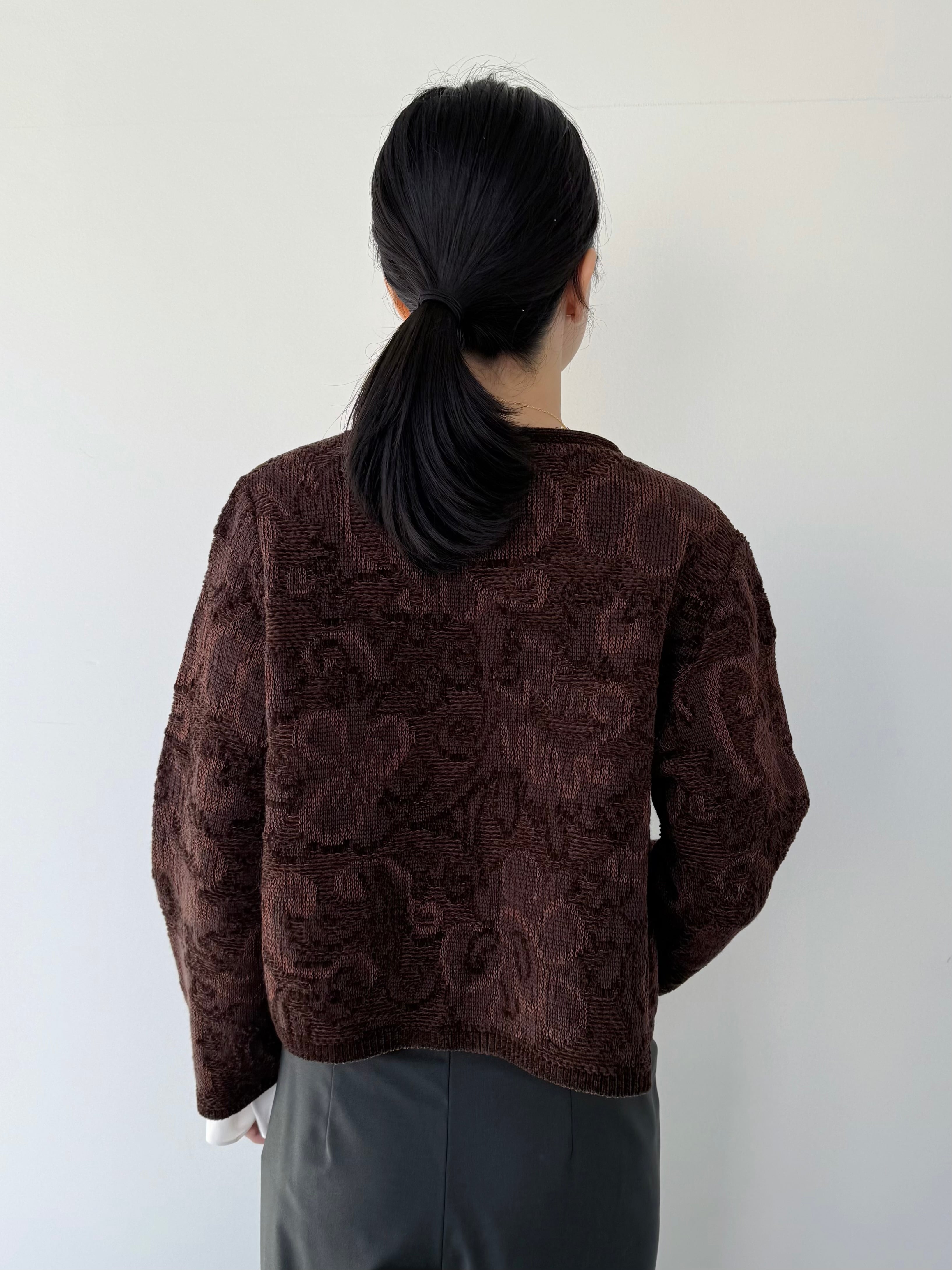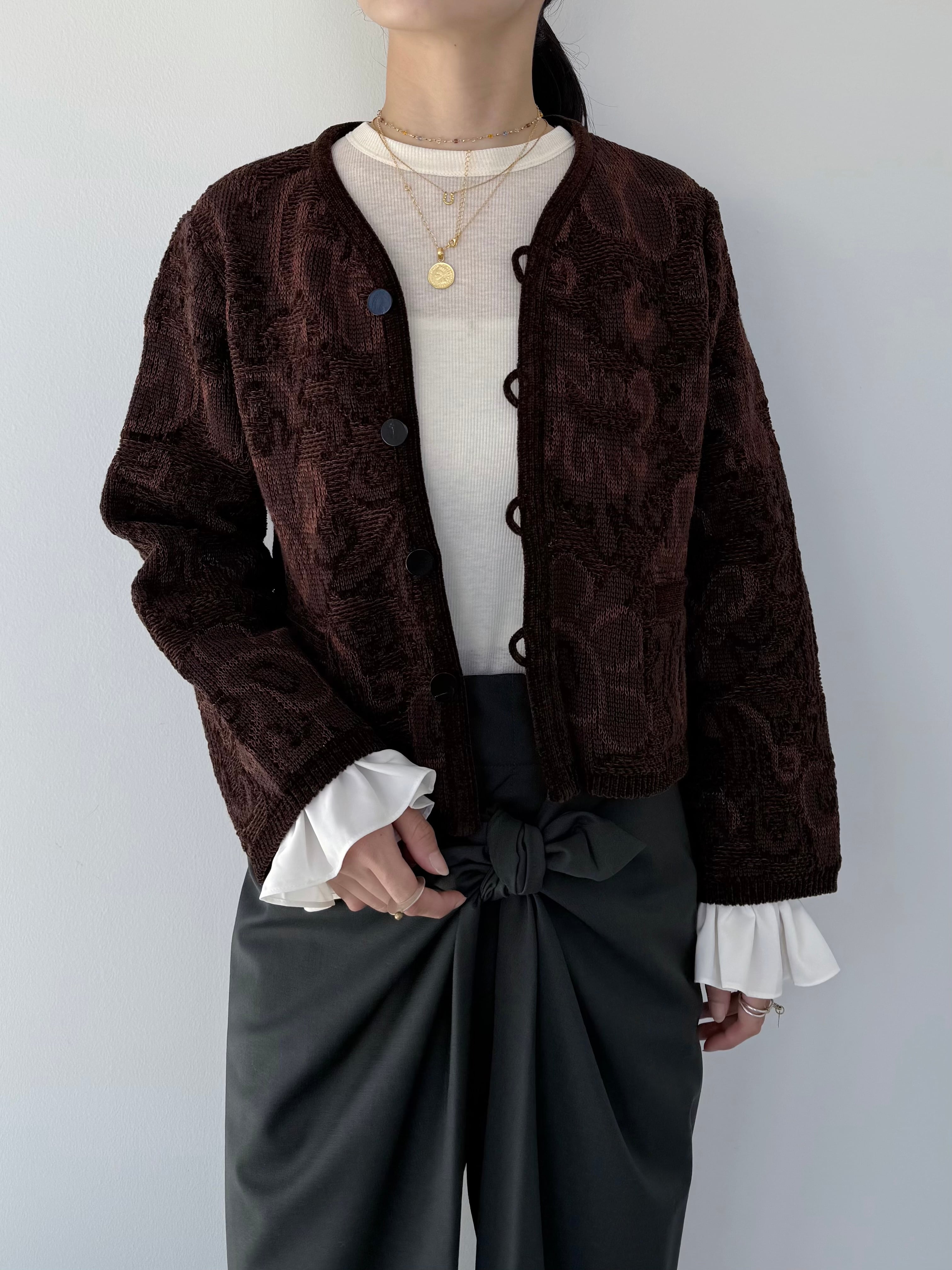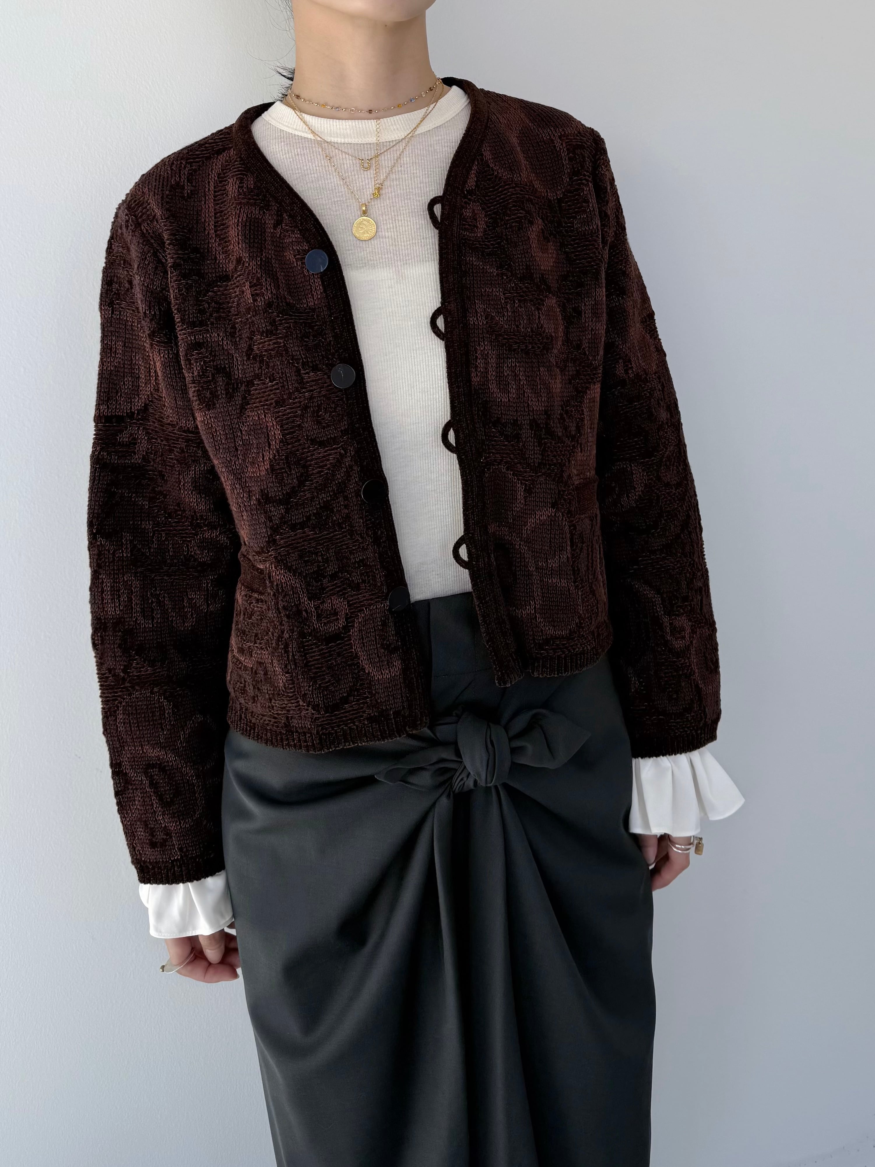 ベルベットタッチの意匠糸を使いジャガードテキスタイルで表現した軽量アウター。