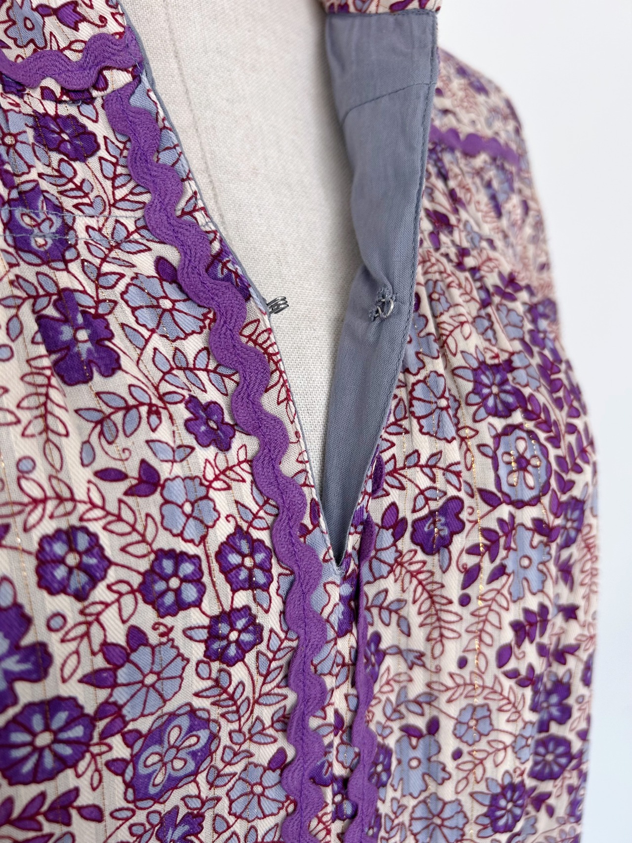 ノスタルジックな雰囲気のオリジナルモチーフと、ふわっと広がるAラインシルエットがヴィンテージらしい雰囲気を感じさせてくれます。