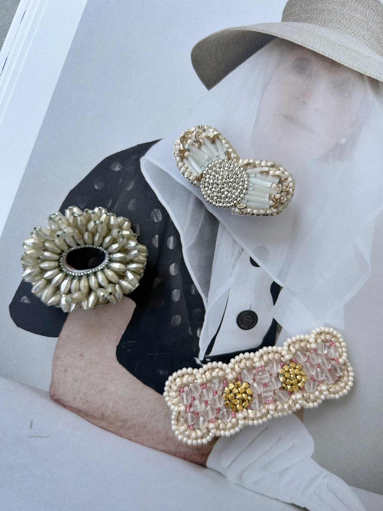 素材は主に、希少なフランスヴィンテージのスパンコールやビーズを使用しており、