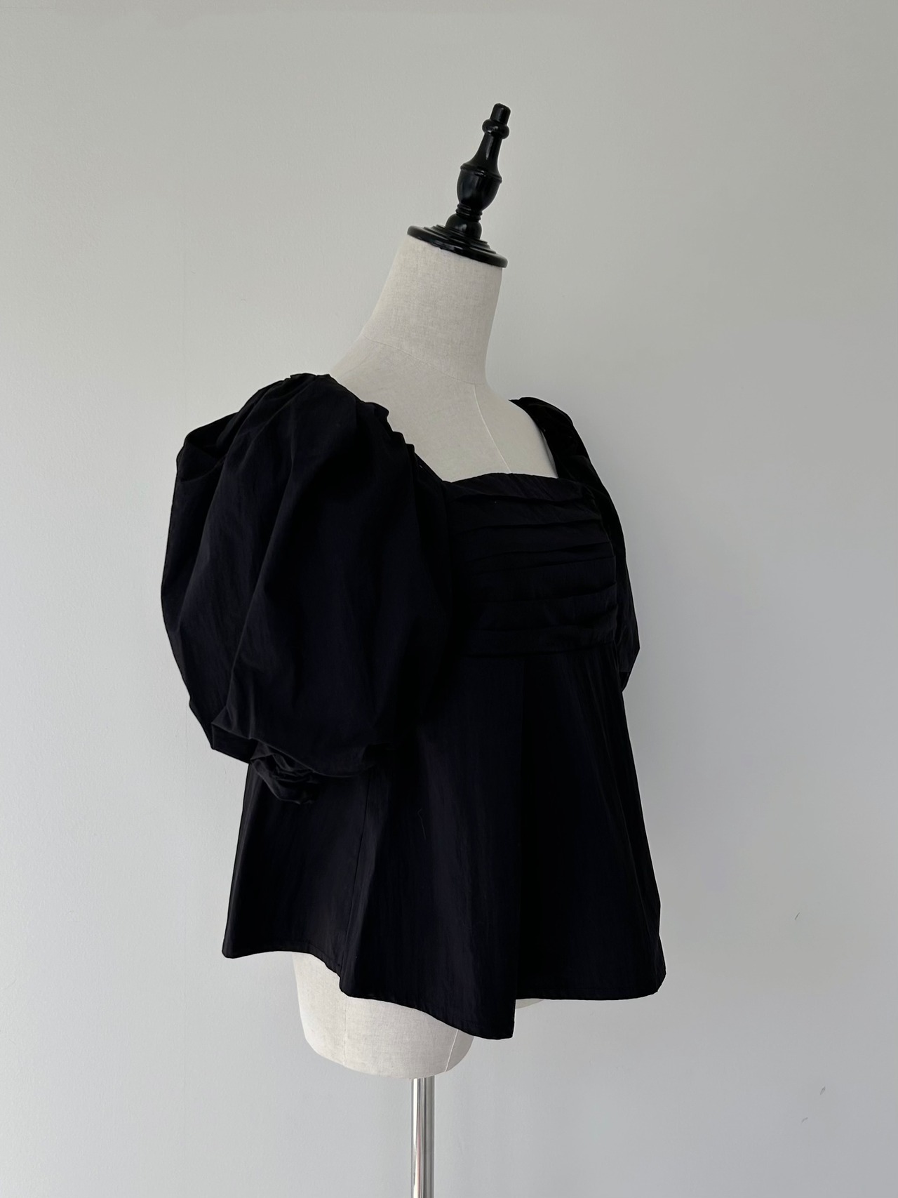 ランダムに細かく入れたタックデザインに、袖のボリュームがすっきり見える着映えブラウス。