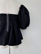 肩のボタンを外すとオフショルとして、付けると肩を出さずスクエアネックのように着用ができるのも嬉しいポイント。
