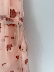 気になる腰回りはカバーしつつ、シャーリングの位置はスタイルアップして見えるデザインに。