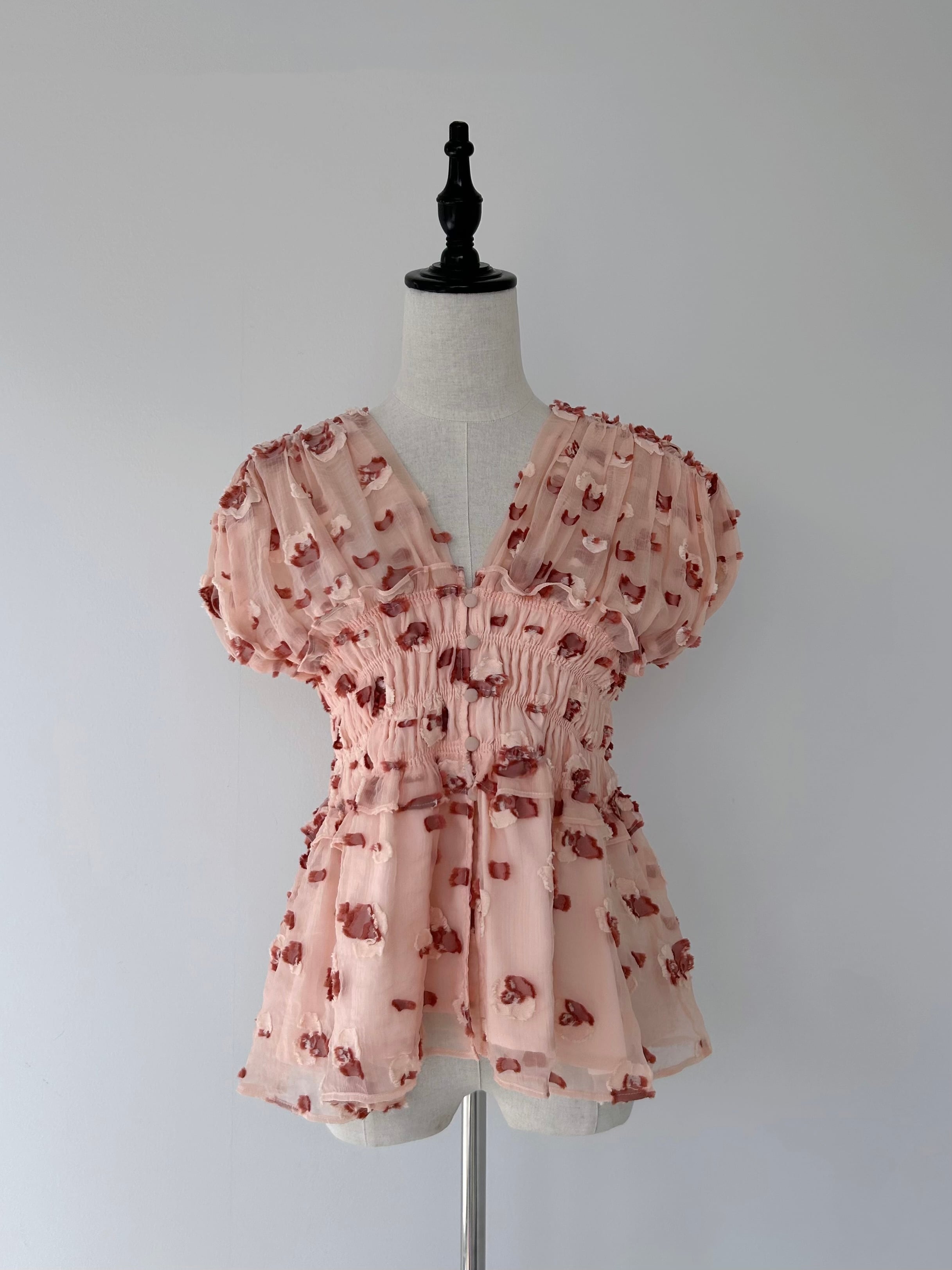 華やかなジャガード生地を活かしたCOELらしいデザインブラウス。