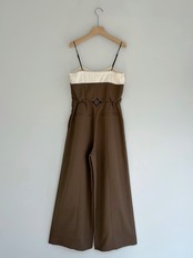 ハートカットの胸元切替でメンズライクなサロペットに甘さをプラスした一着。