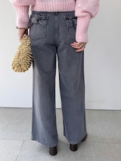 ワイドレッグのデニムパンツ。