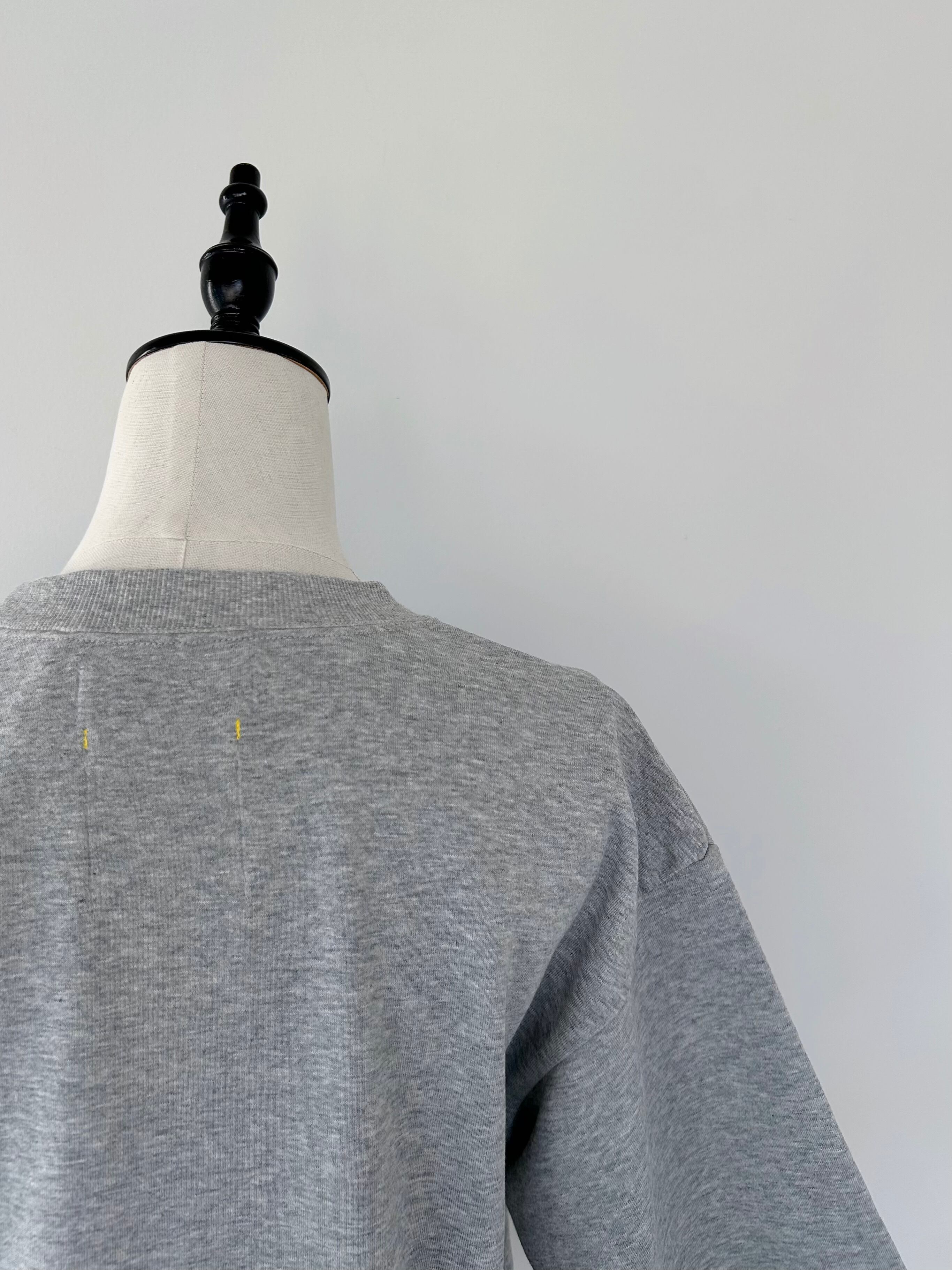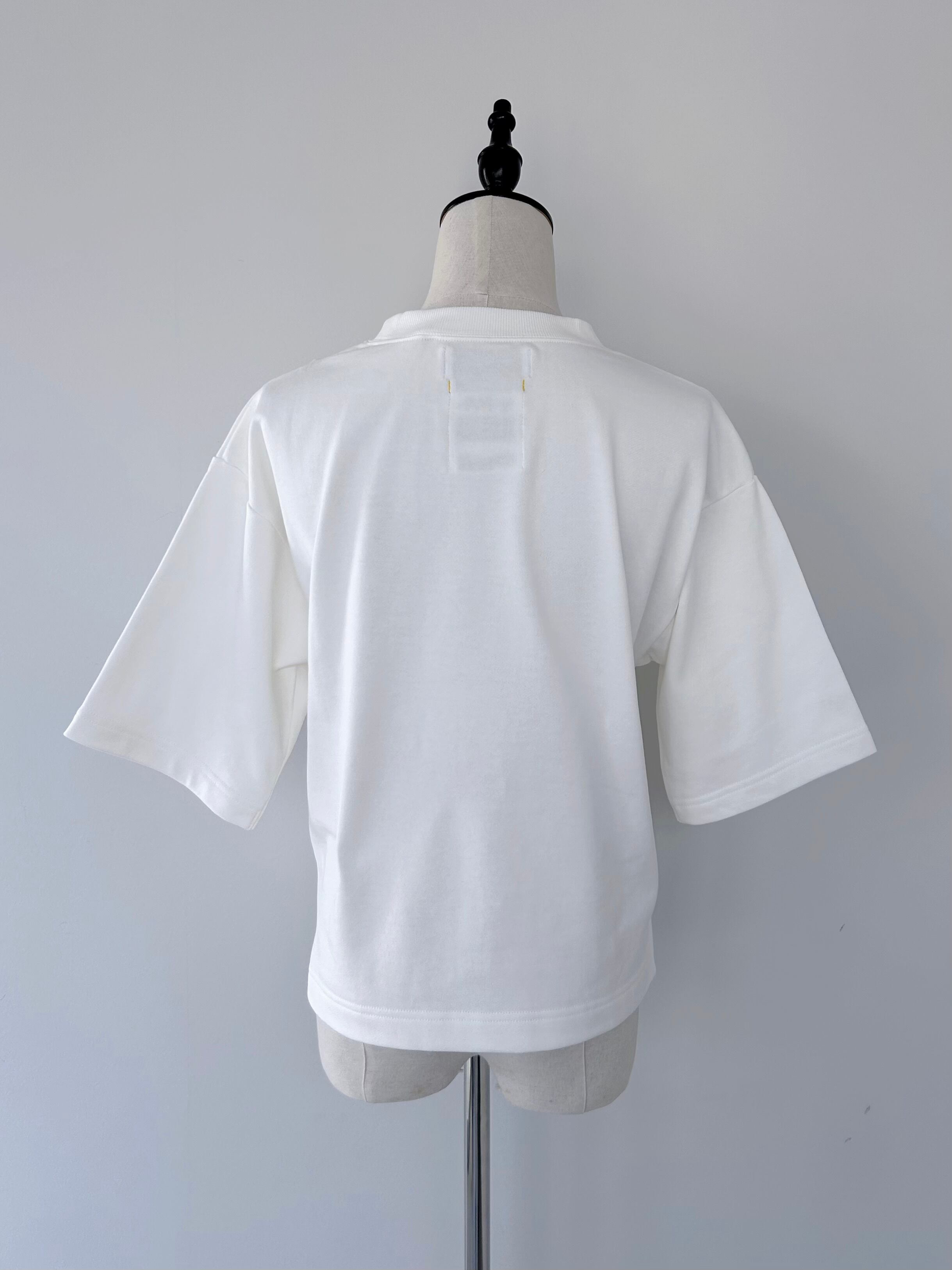 ゆったりとした身頃でありながら丈は短めに設定しているのでどんなボトムスとも相性がいいです。