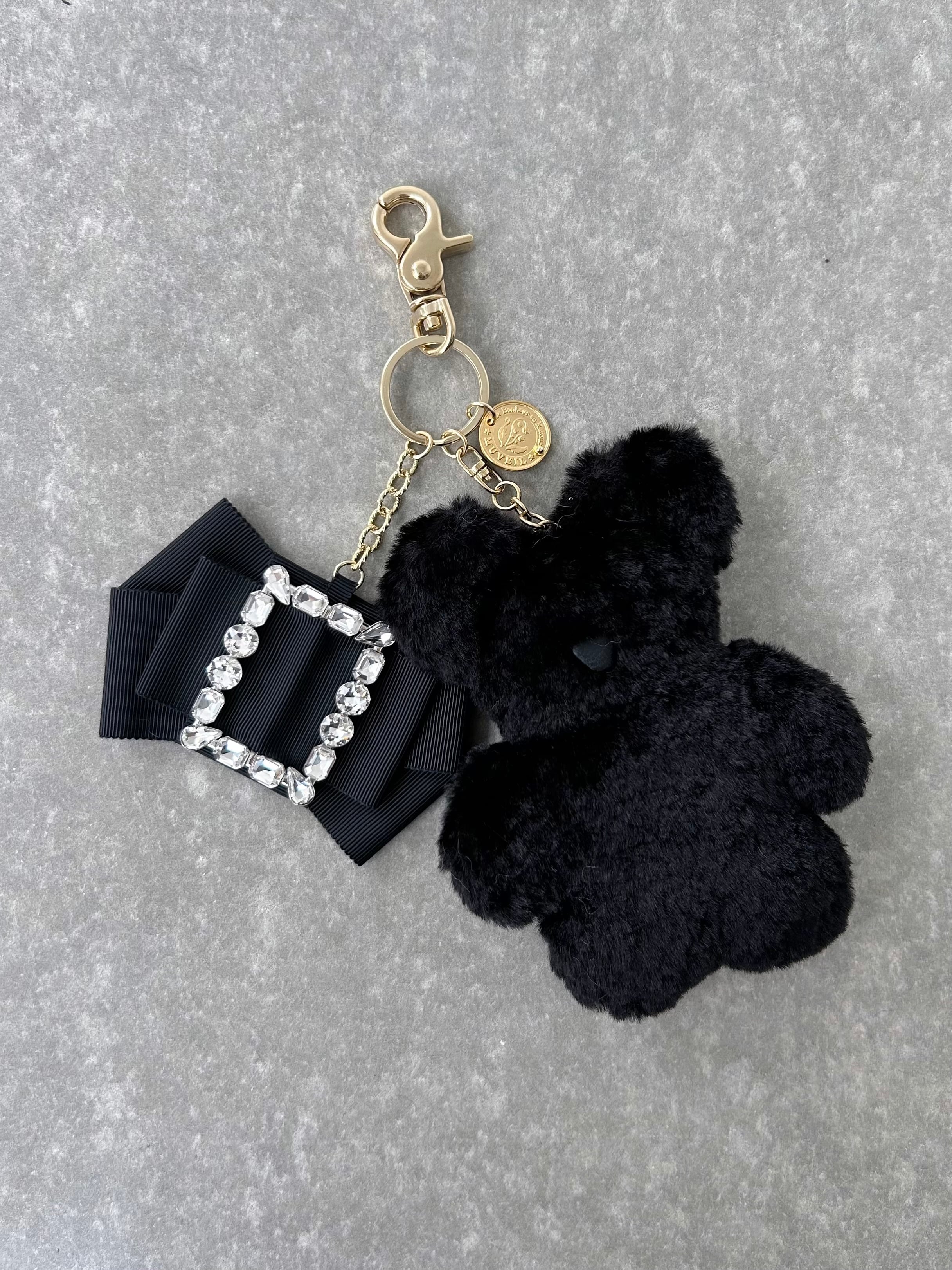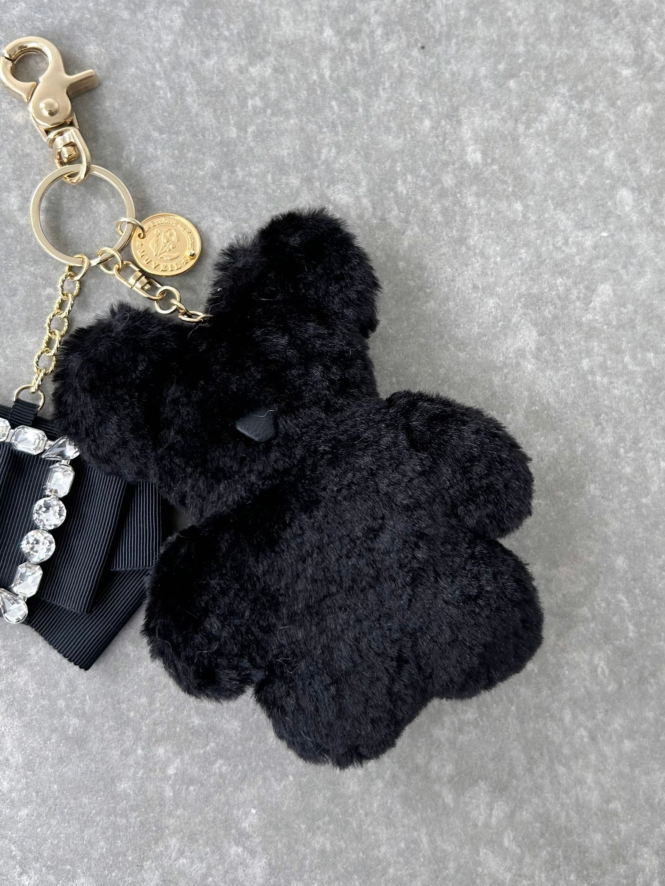 コレクションテーマに合わせてデザインしたフェイクファーのクマのマスコットが愛らしいキーチャーム。