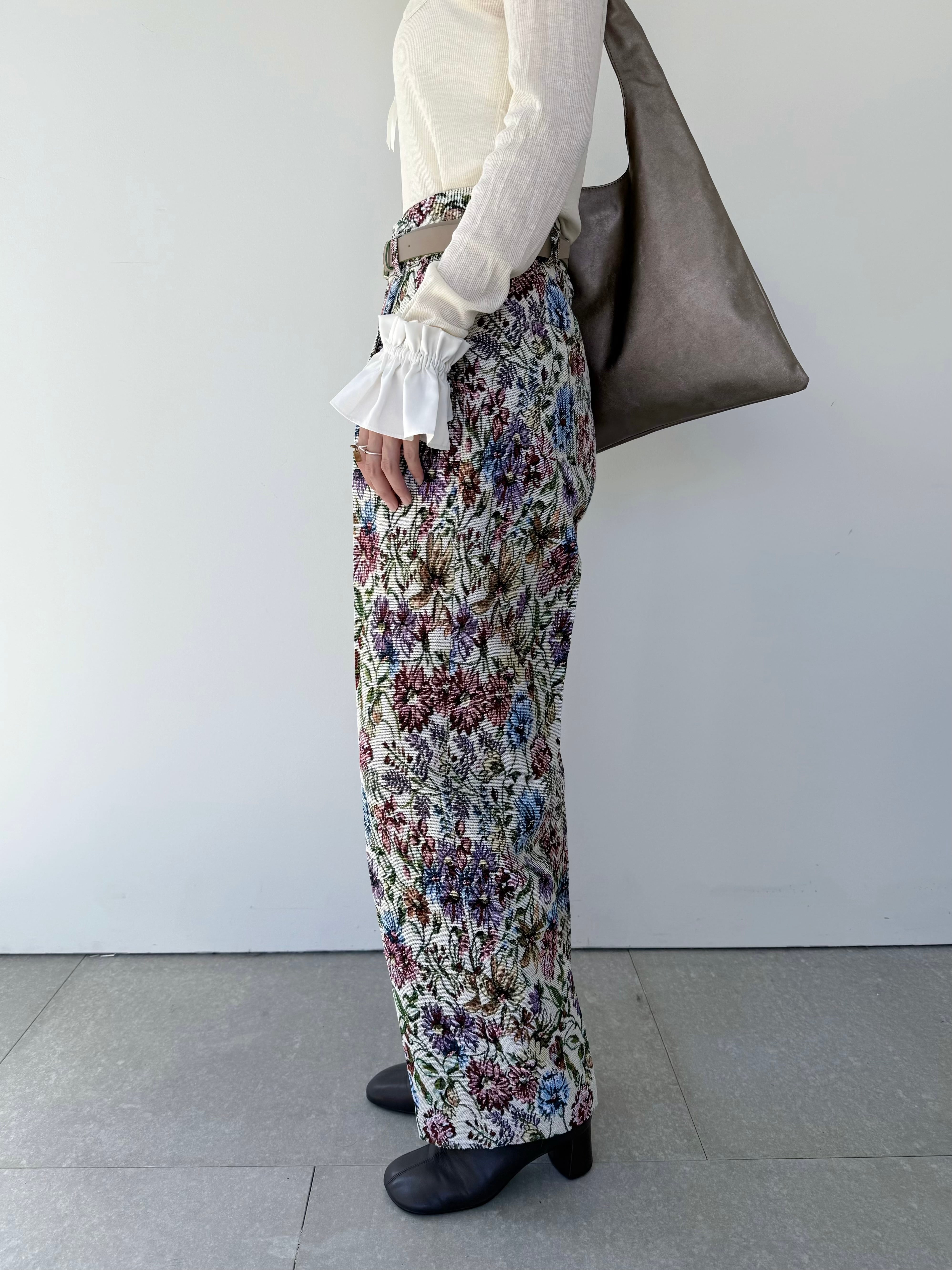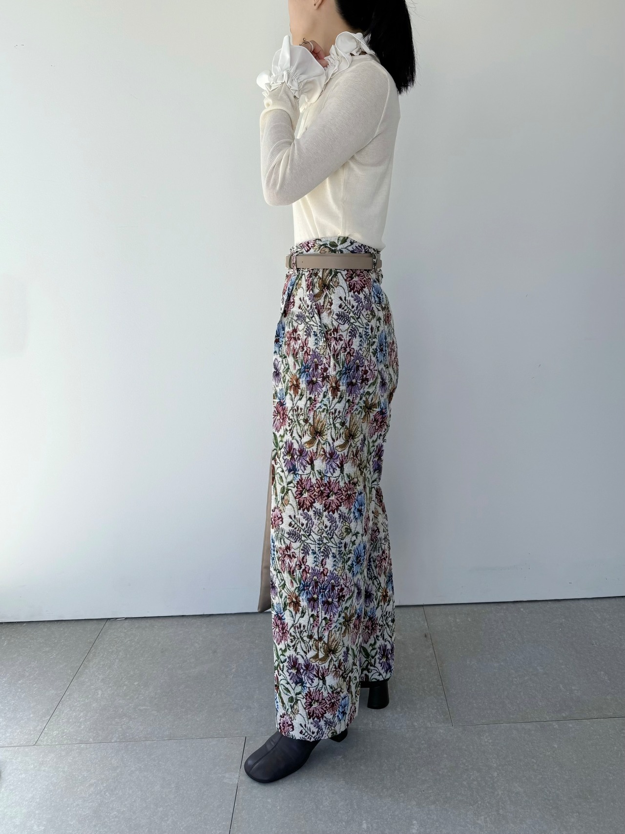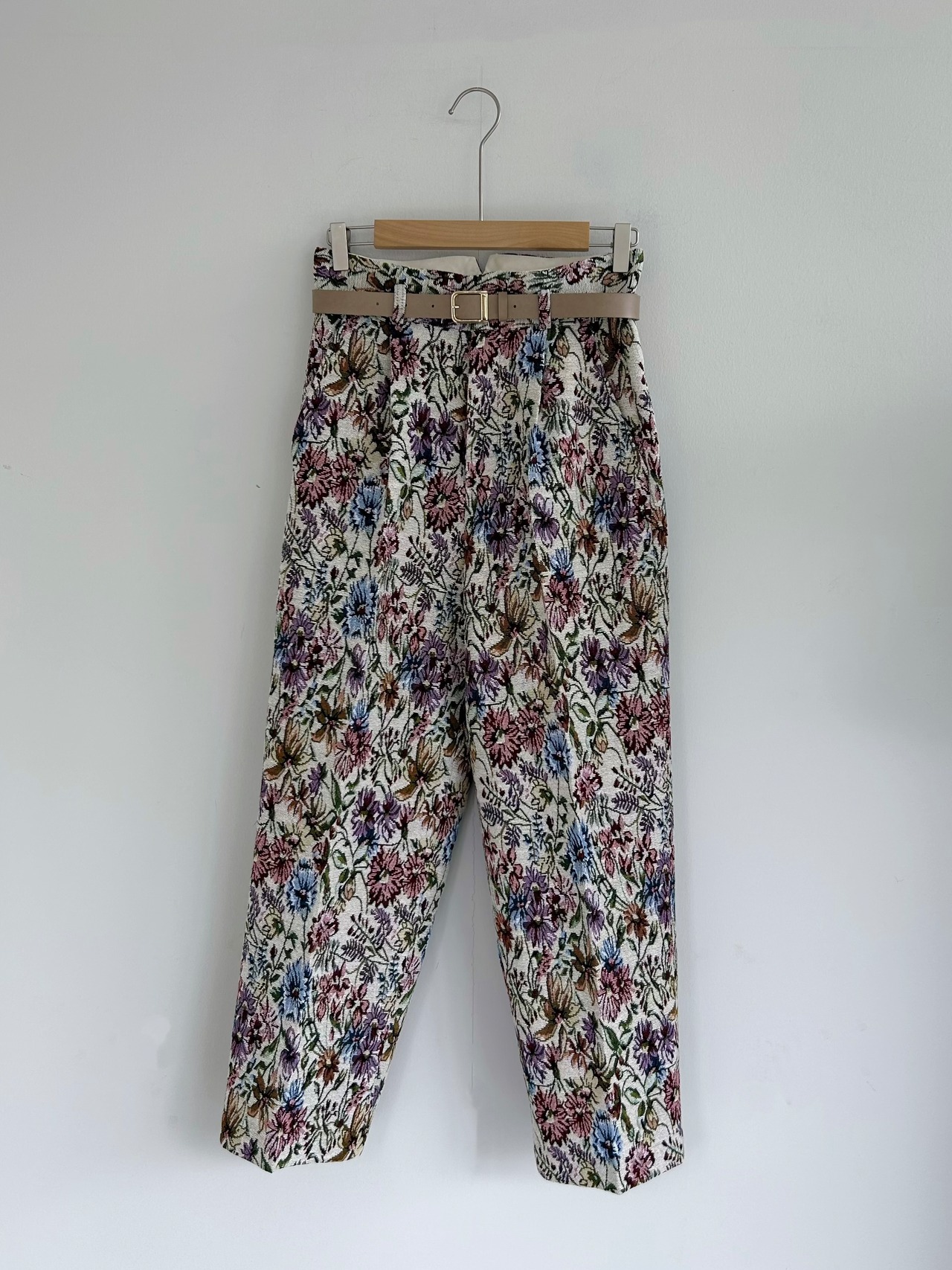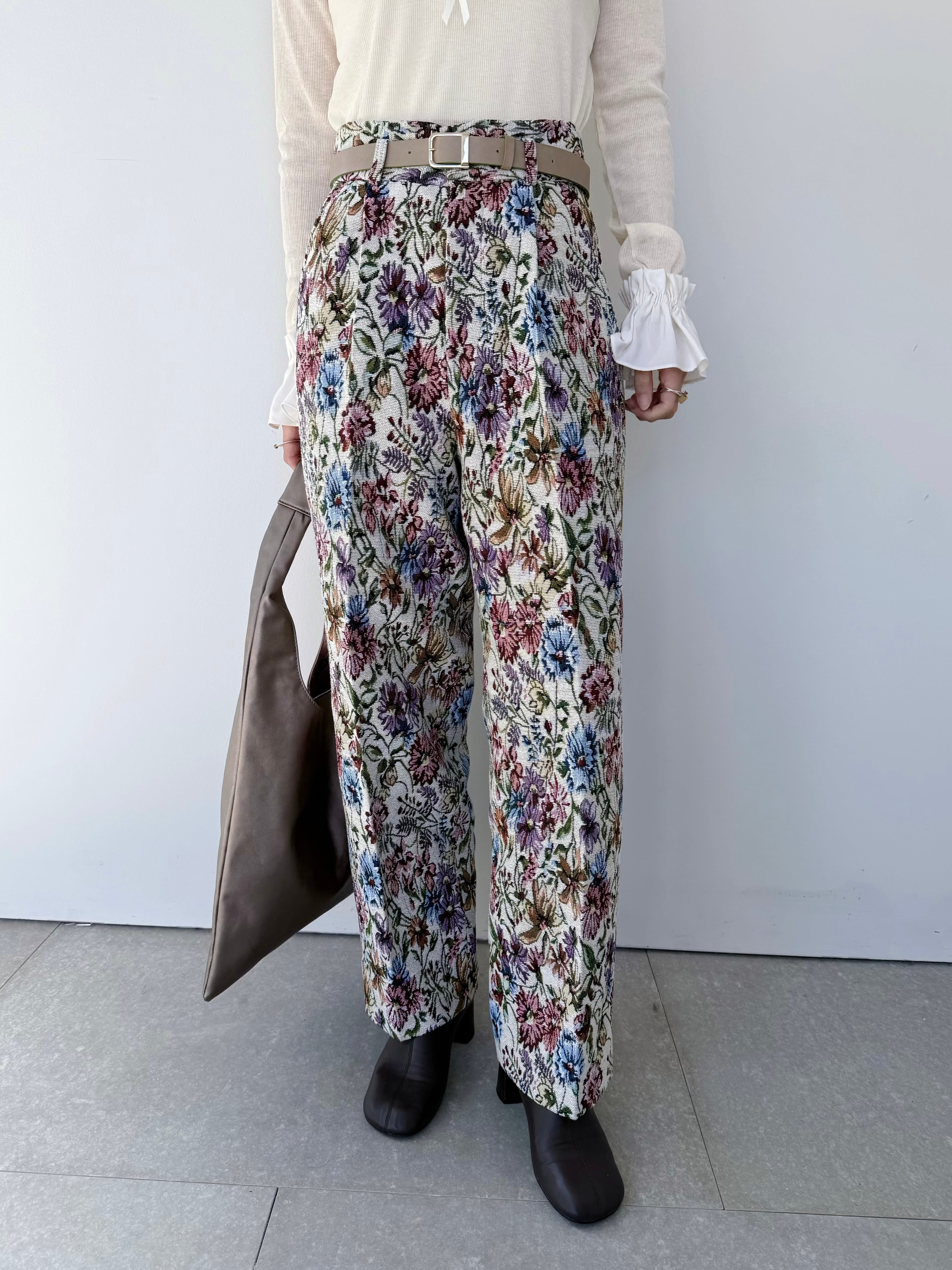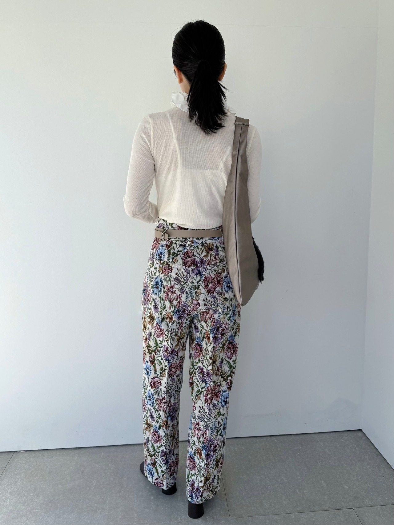 ハイウエストでセンタープレスを施しエレガントに仕上げた一着。