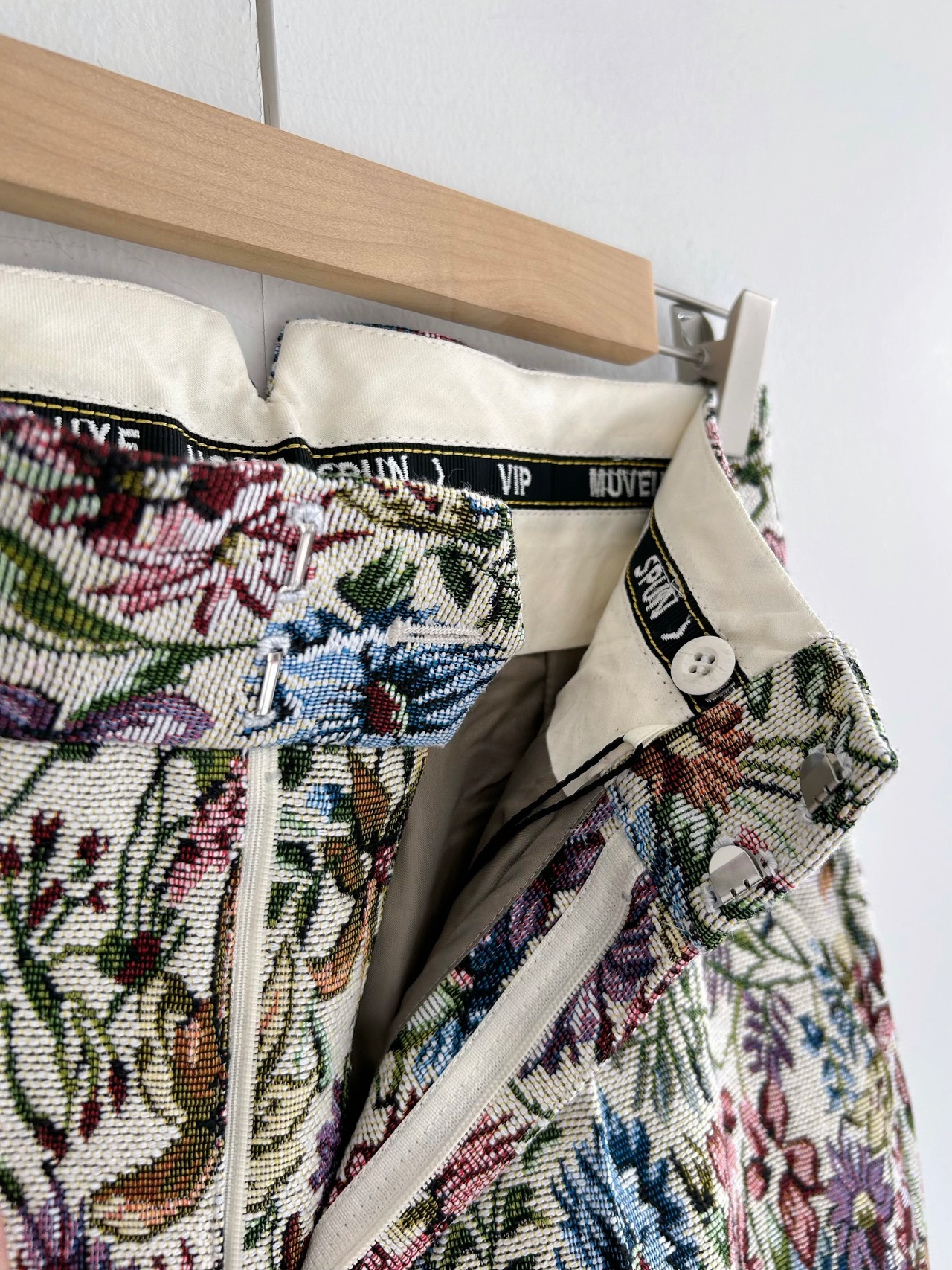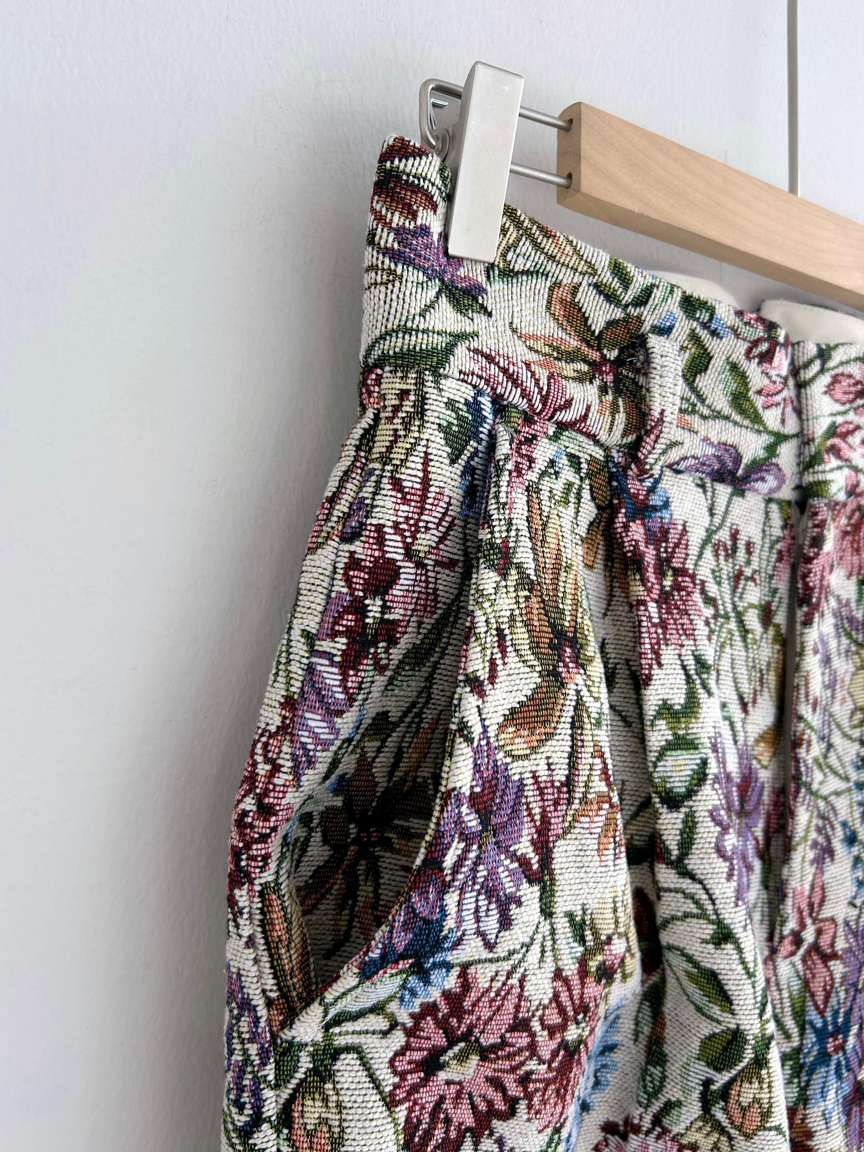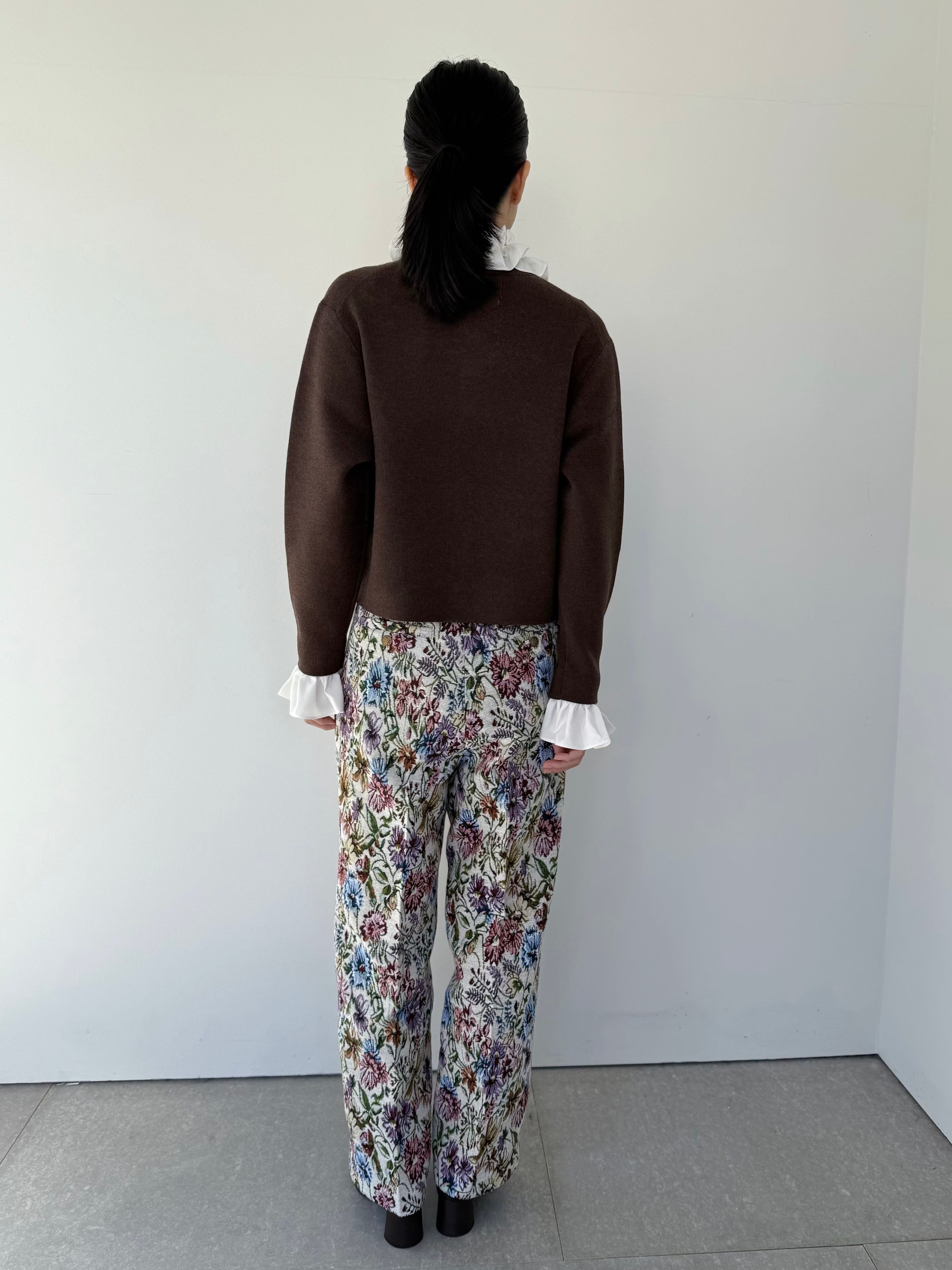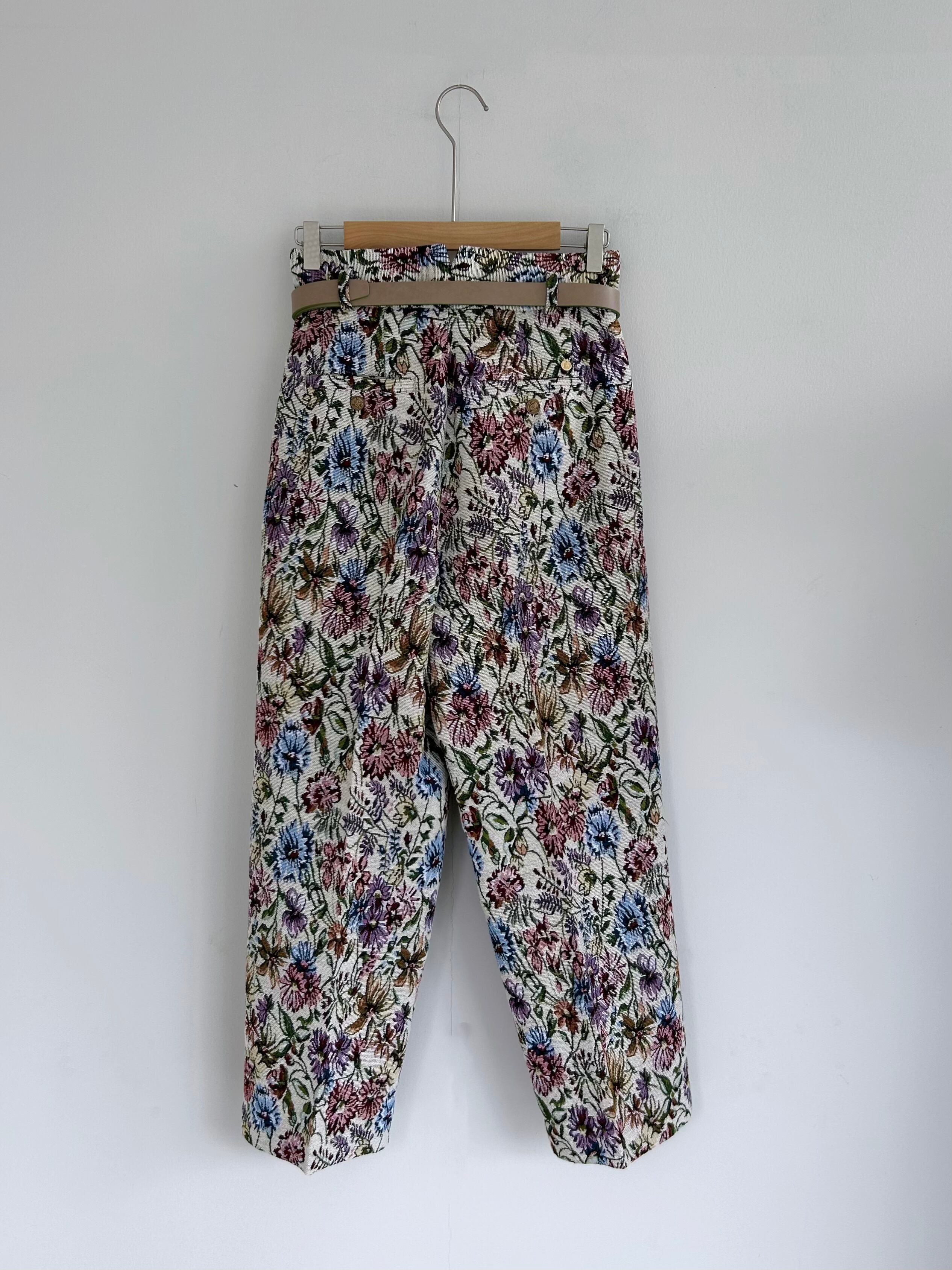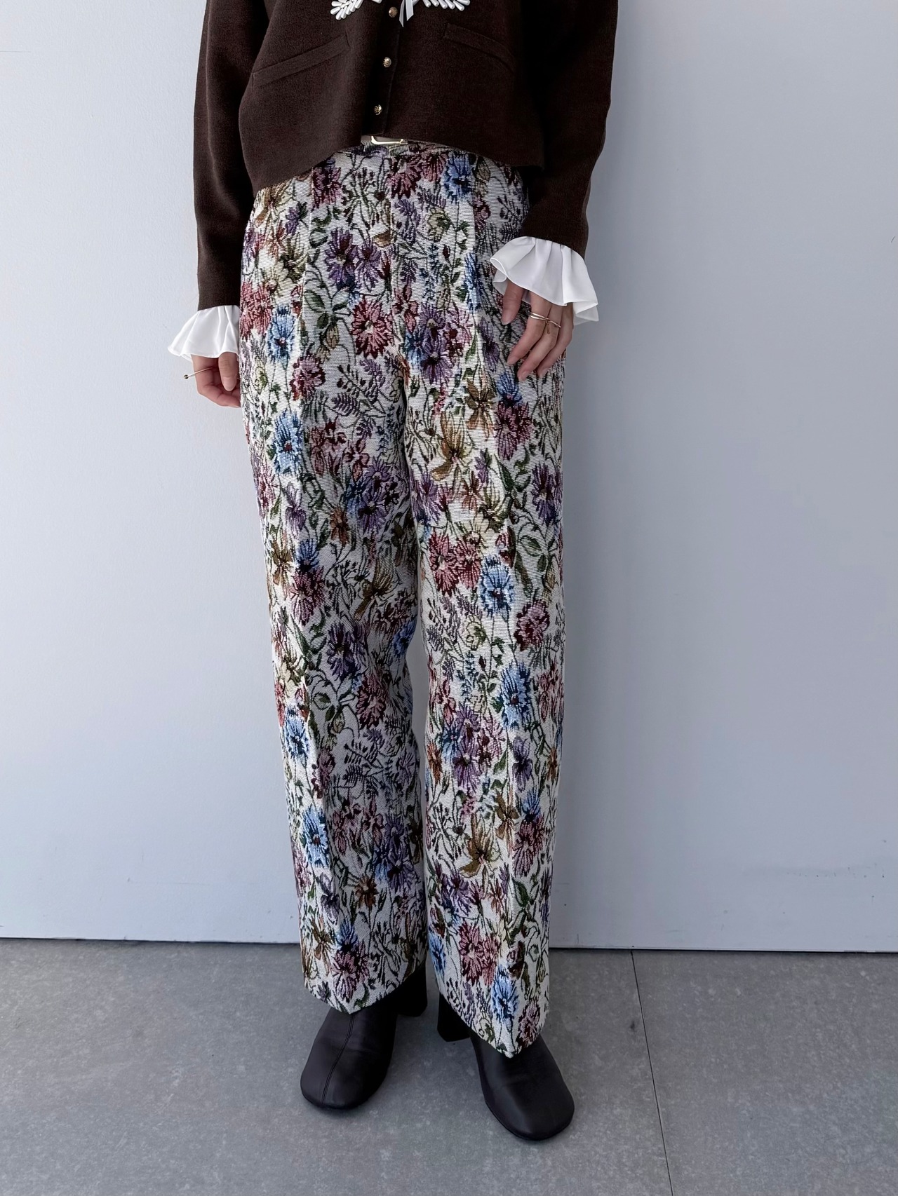 ハイウエストでセンタープレスを施しエレガントに仕上げた一着。