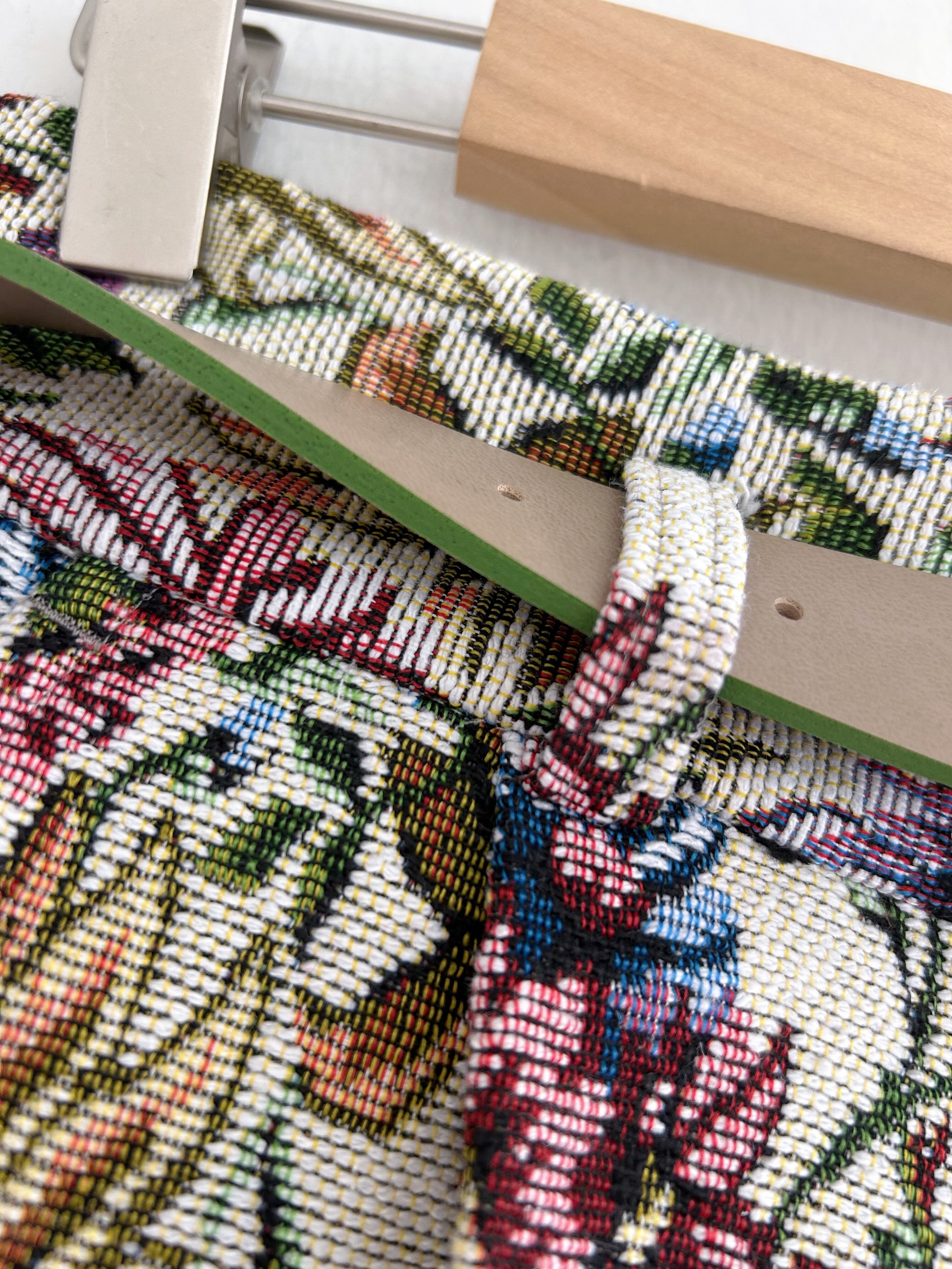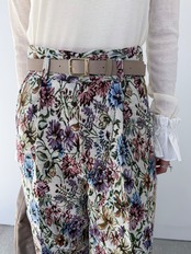 パンツのカラーに合わせたベルトの端には配色を施しアクセントを添えました。