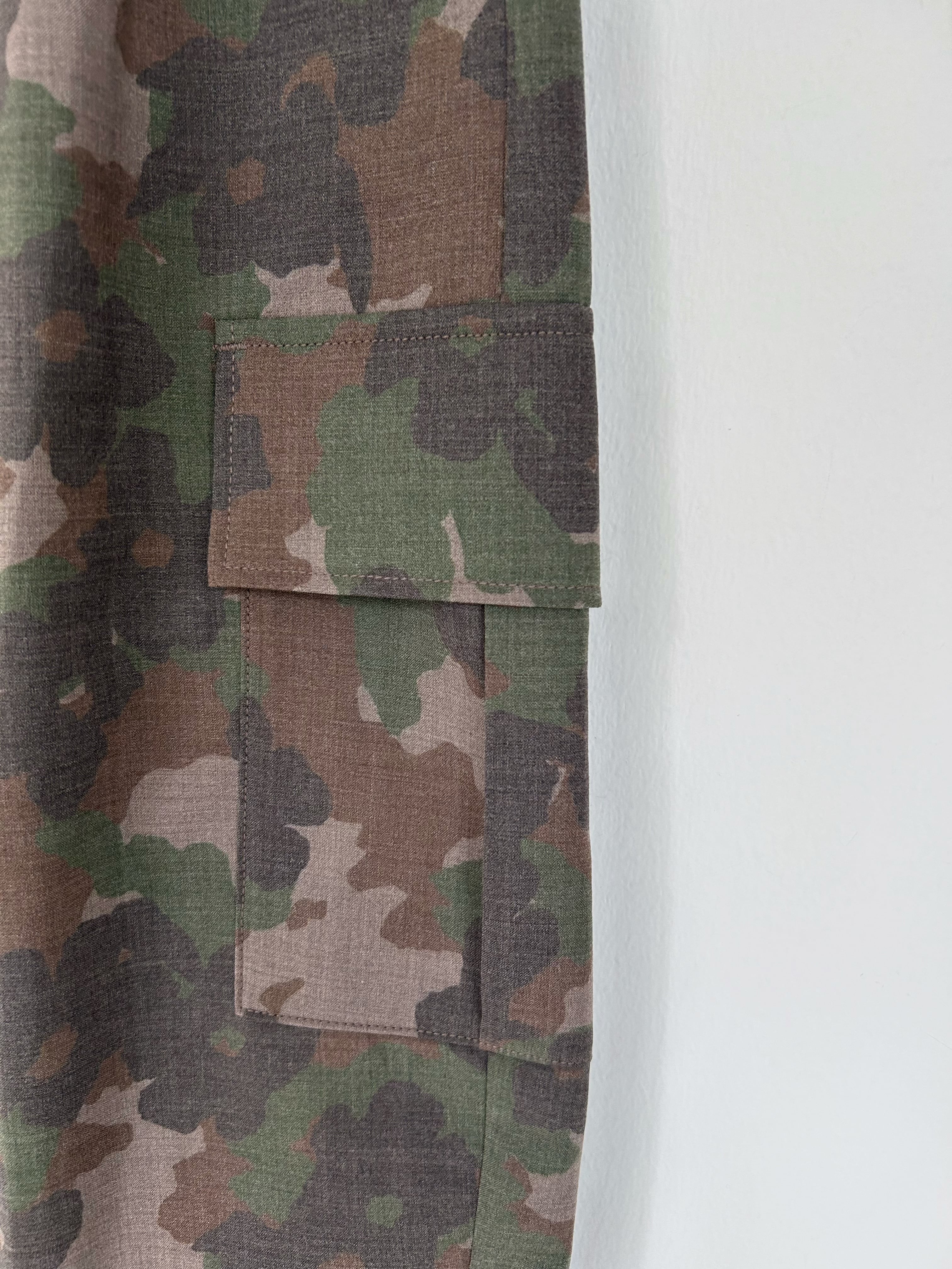 本格的なディテールを組み込みながらオリジナルのハナカモフィラージュプリントでフェミニンな表情を添えた一着。