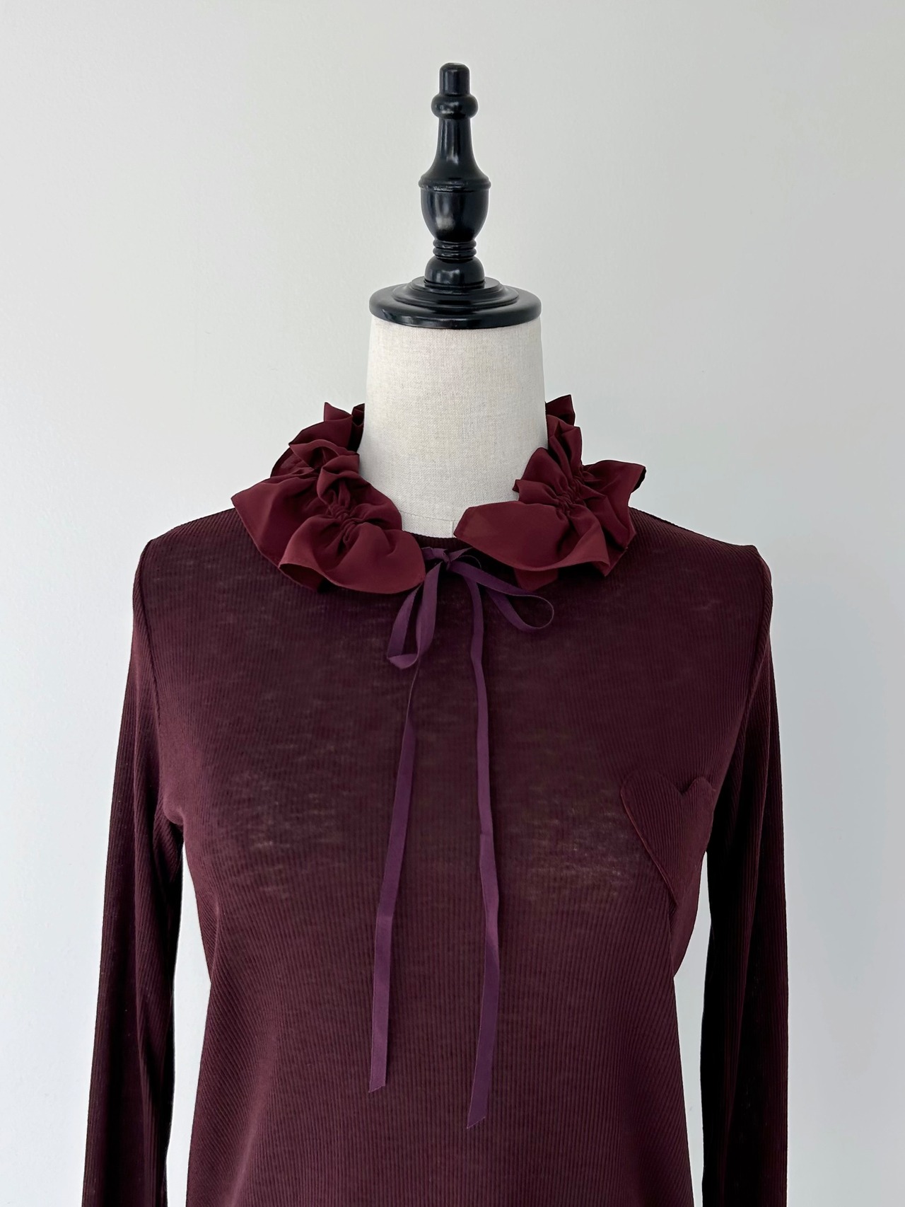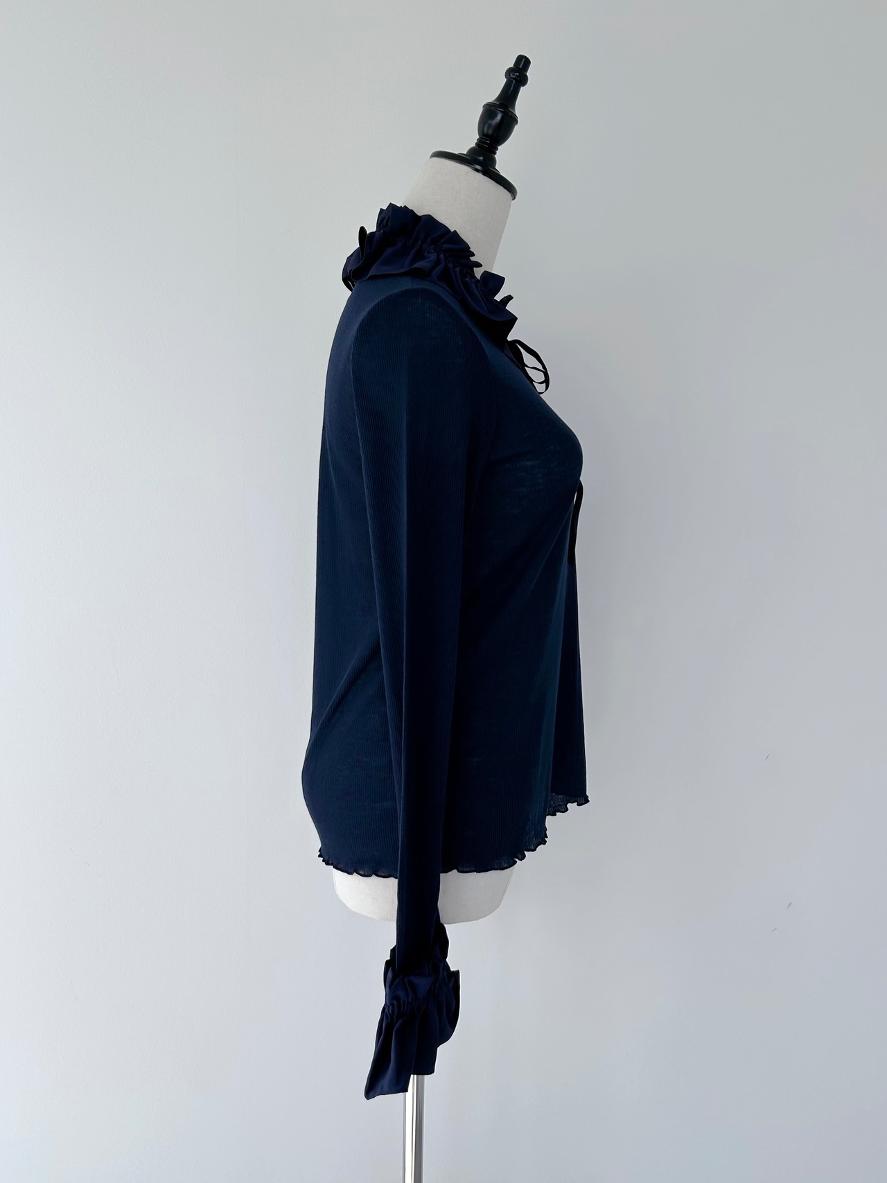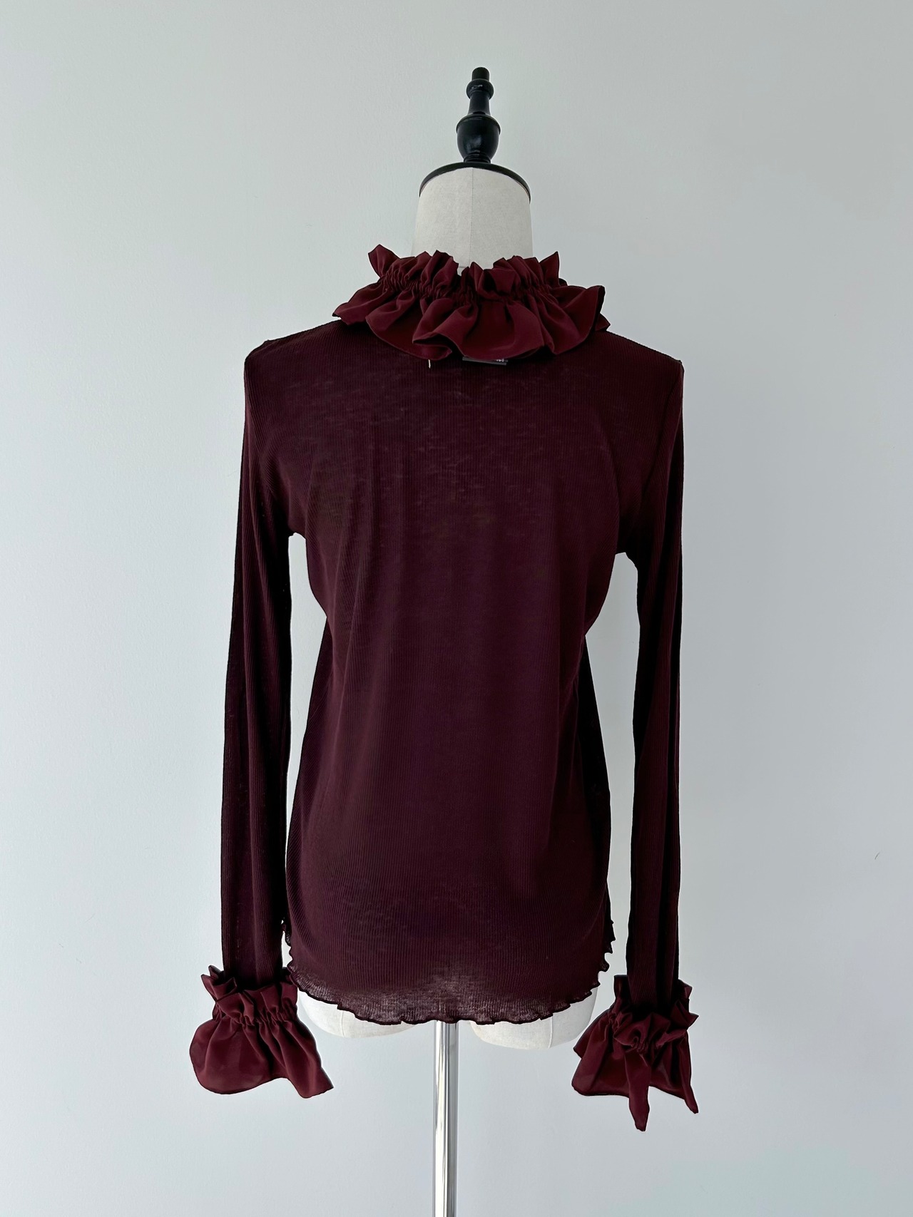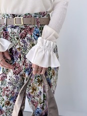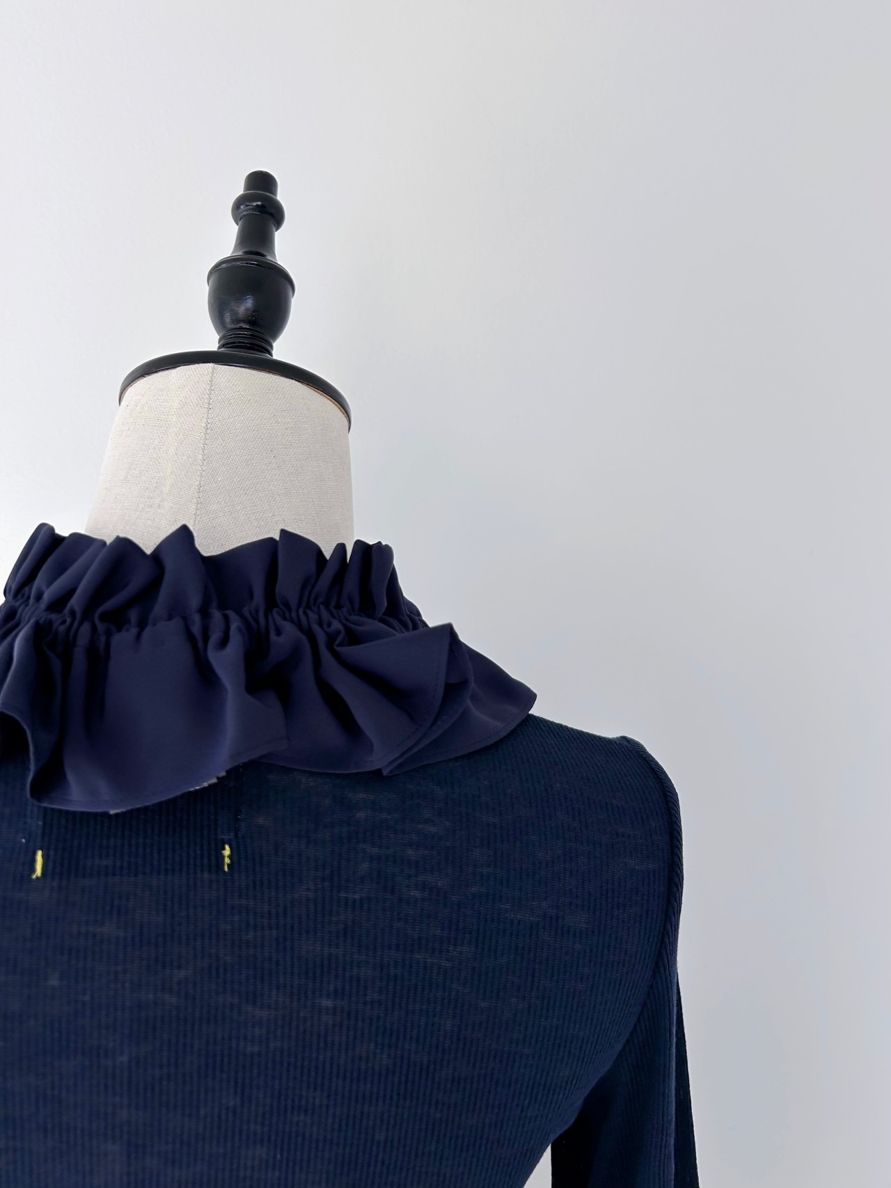 衿と袖口は別布で美しいドレープのギャザーフリルがポイント。