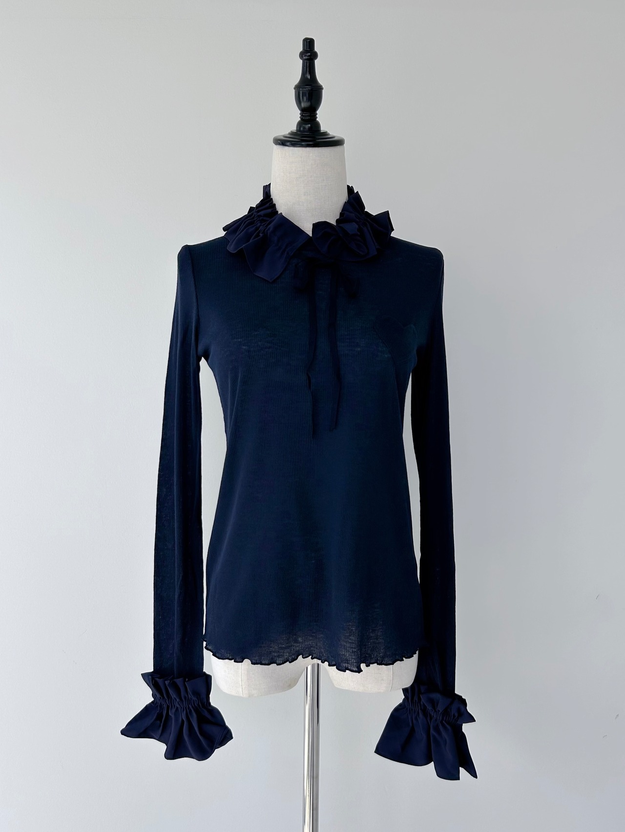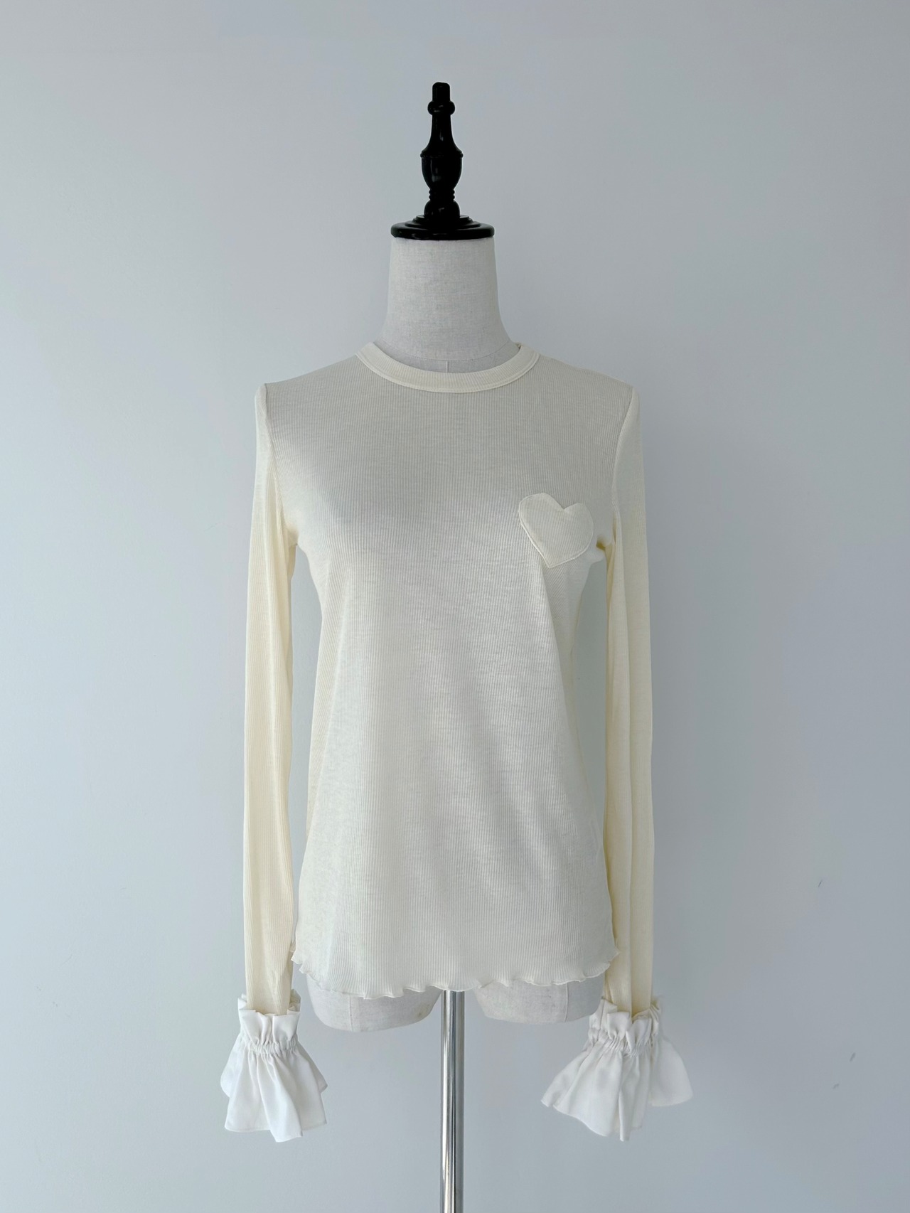 シアー感のある素材を使用した繊細でラウンド衿のカットソー。