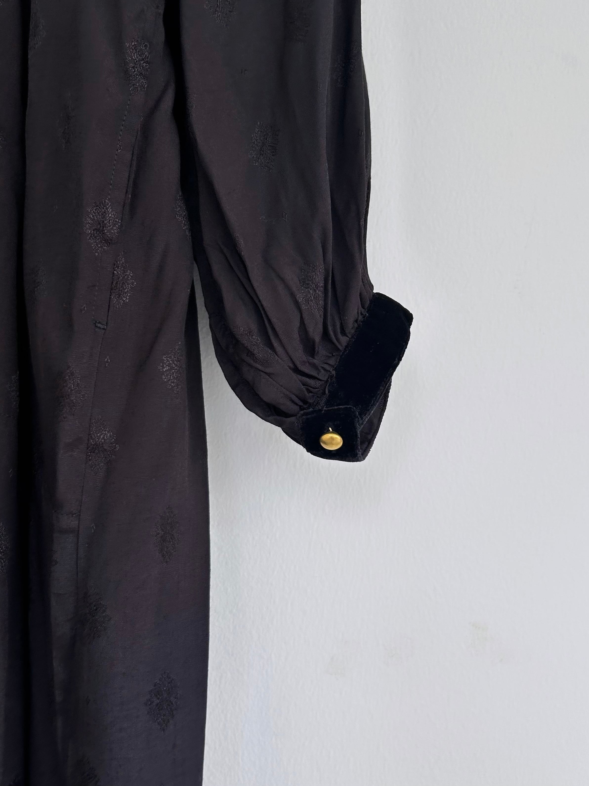 袖口にもベルベットをあしらい、肌触りの良さと共に優雅な雰囲気を演出。