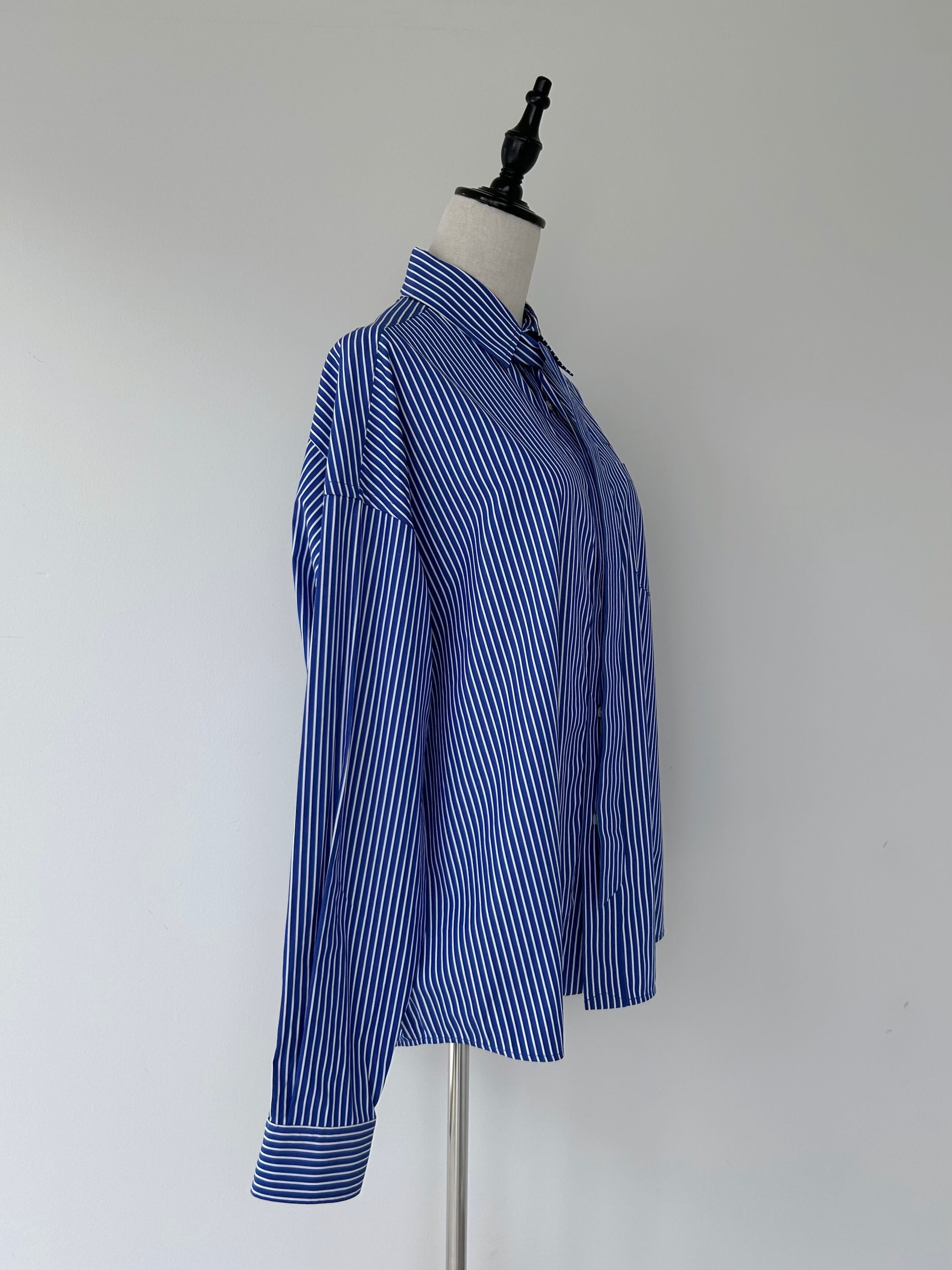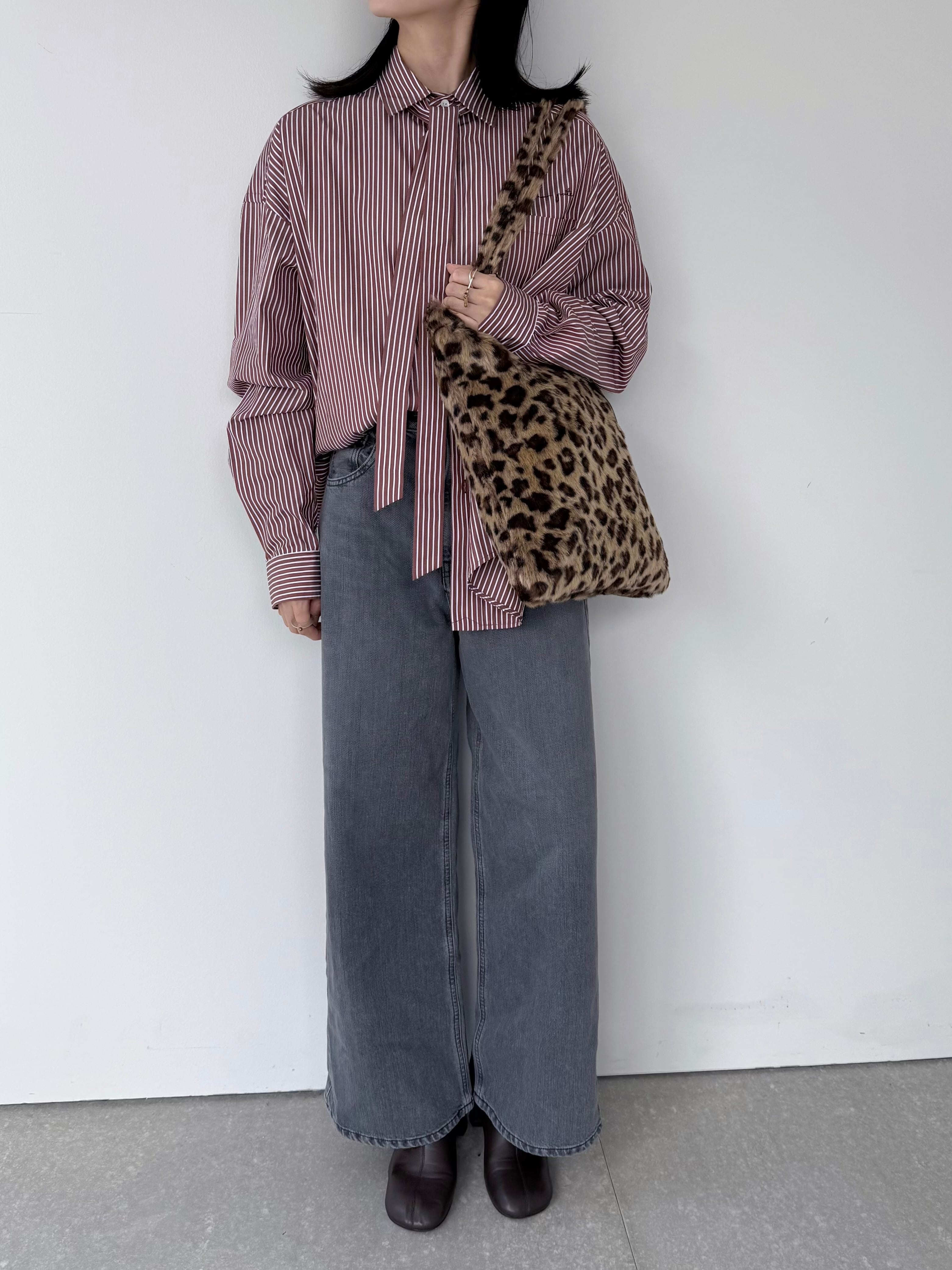 シャツと同素材のスキニータイを合わせ、マニッシュに仕上げたシャツ。