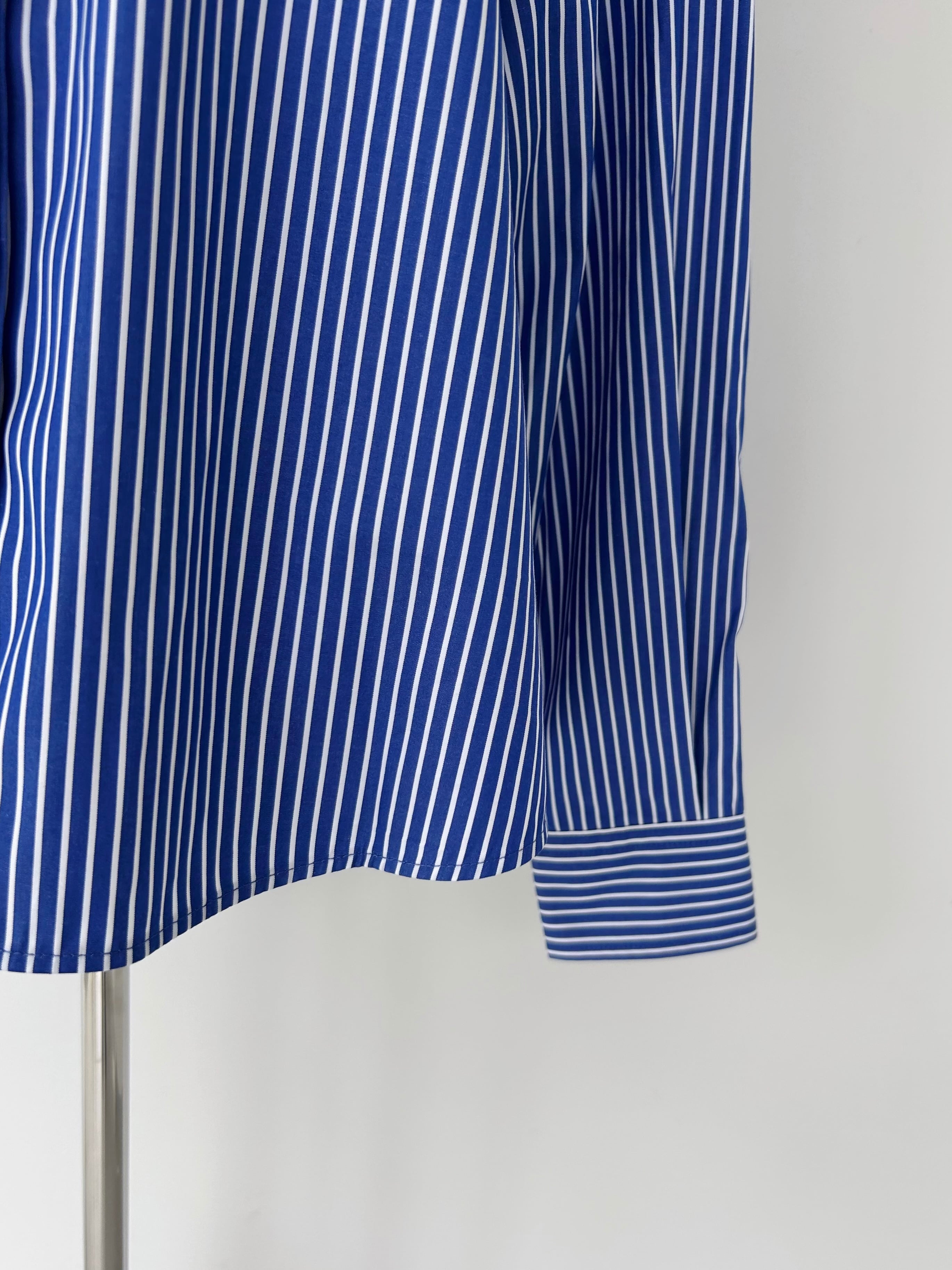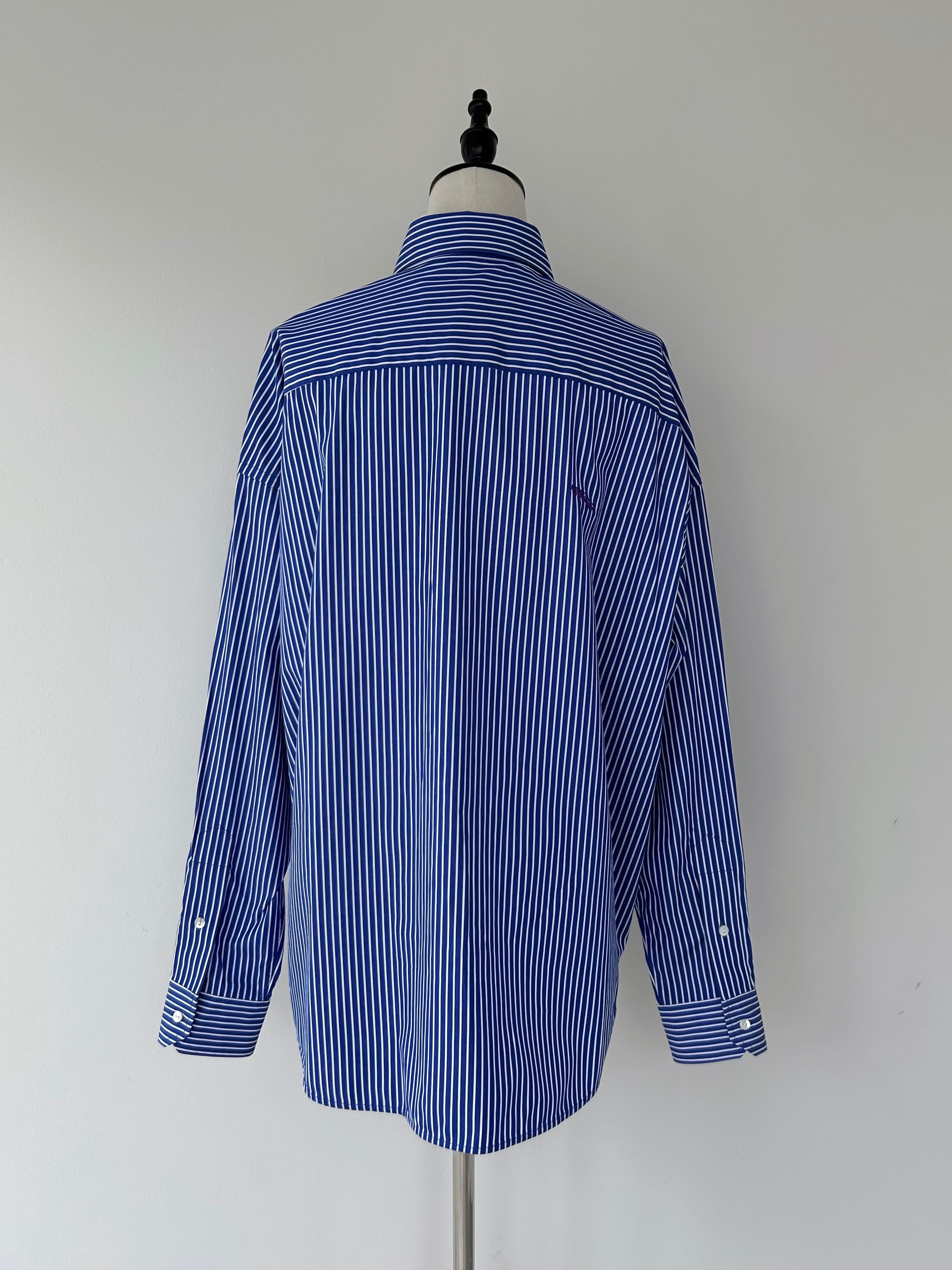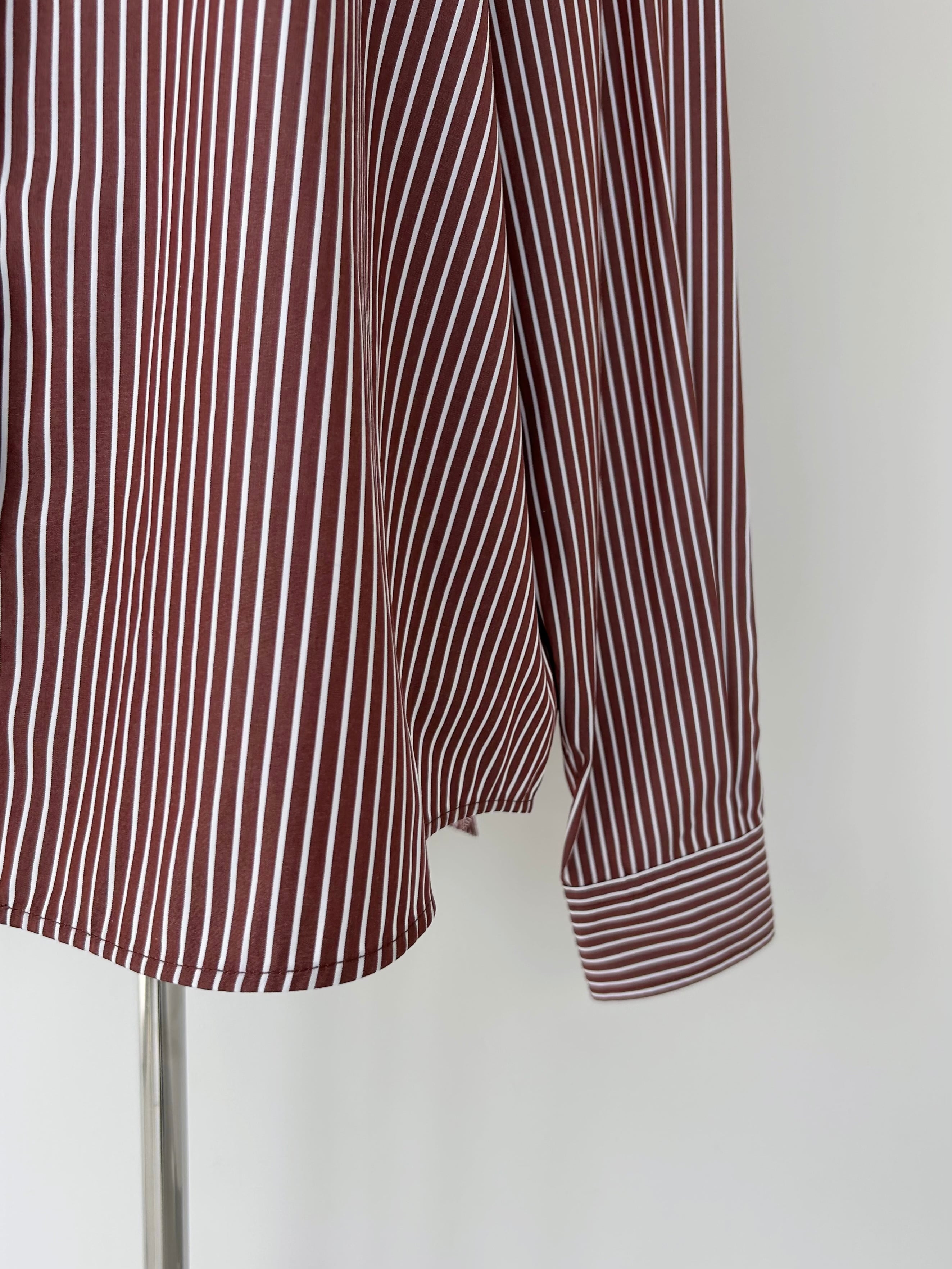 80/2の細い糸で高密度に織り上げた、先染めストライプのタイプラー素材を使用。