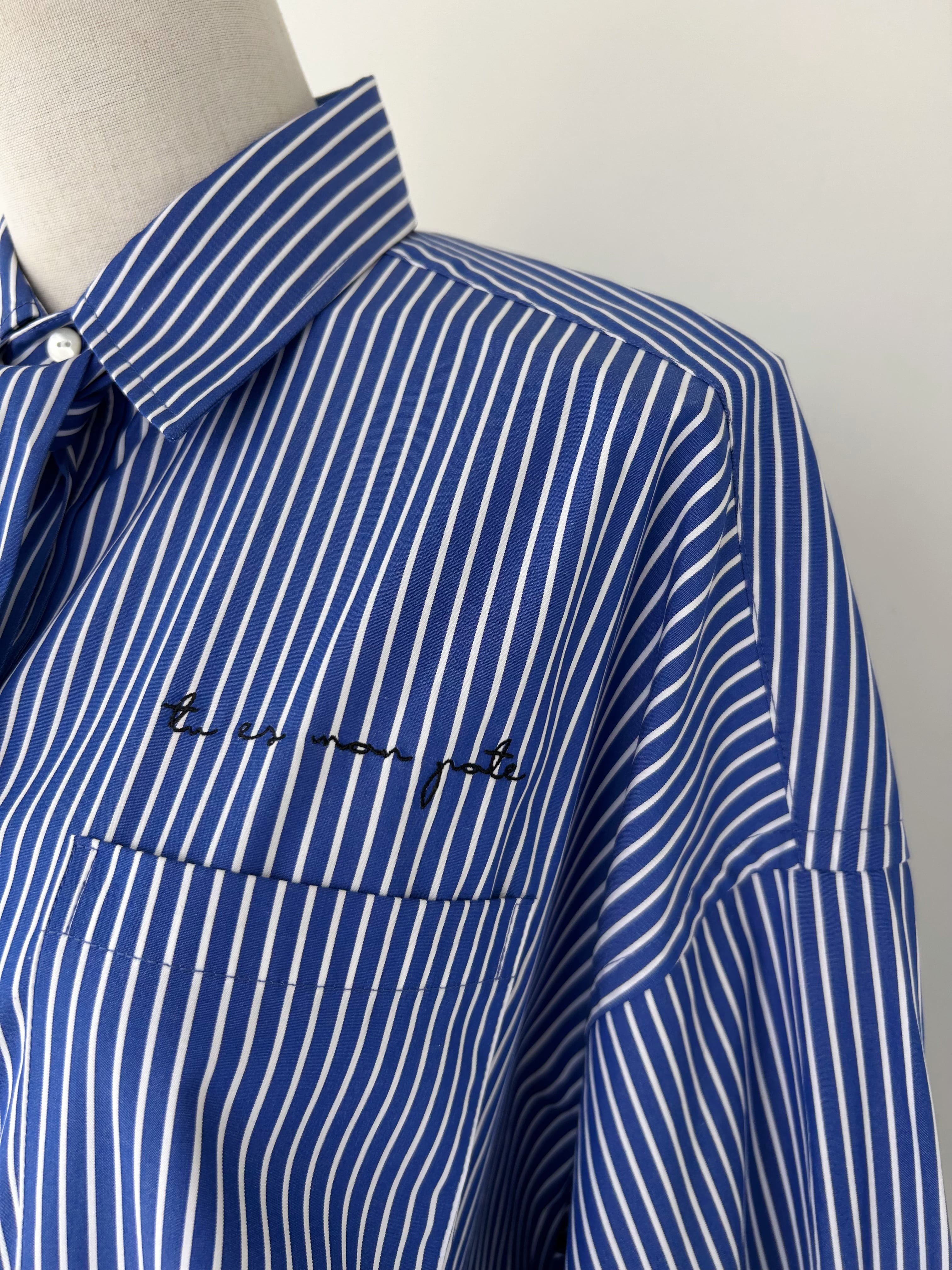 左胸には「tu es mon pote(あなたは私の相棒です)」の刺繡を、