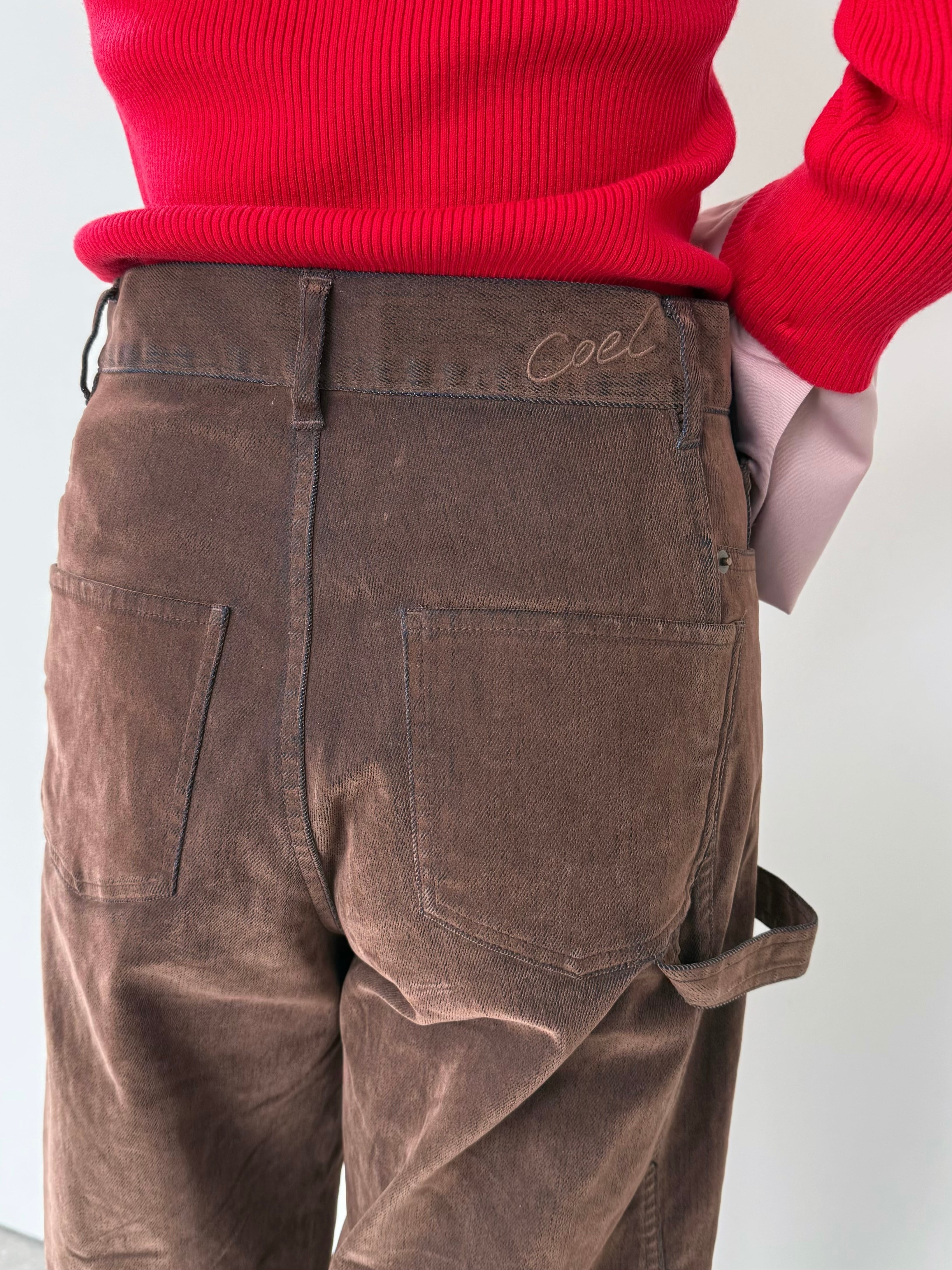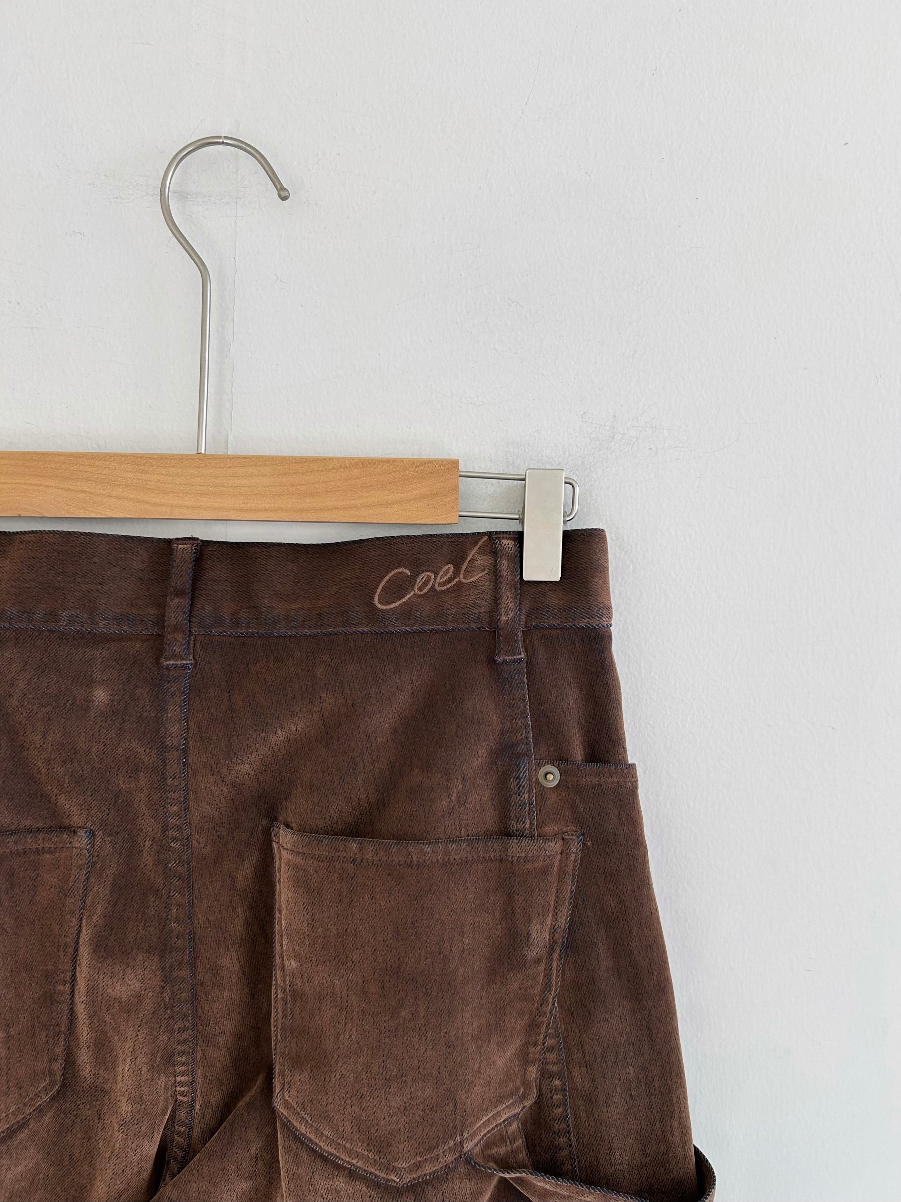 パンツ全体に入れた切り替えでシルエットを作り上げ、ペインターパンツのようなディテールを入れたオリジナリティ溢れるデザインが魅力。