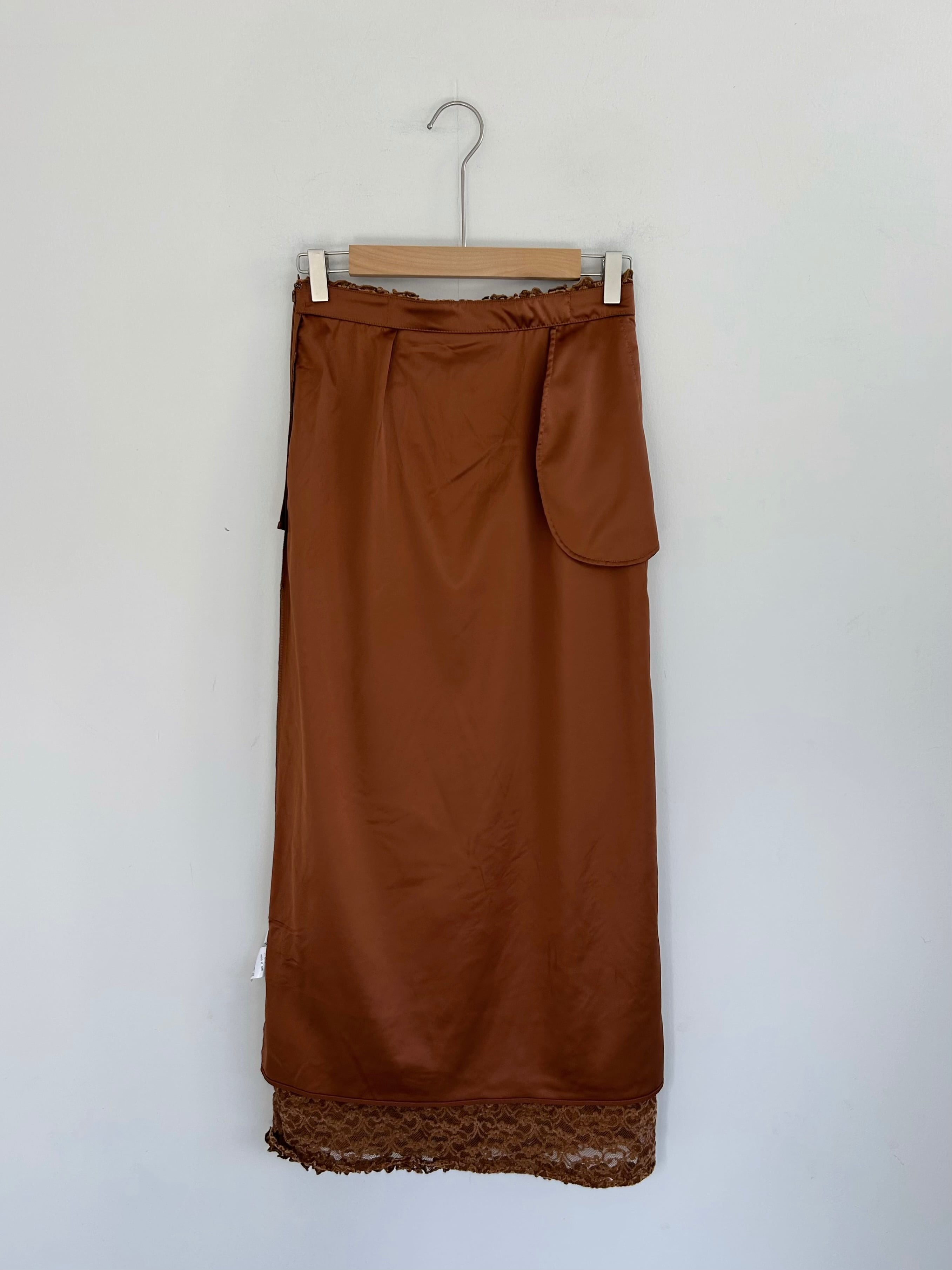 同じ素材で作ったトップスとセットアップで着用するとワンピース見えするので、パーティシーンなどでも華やかに着こなせておすすめです。