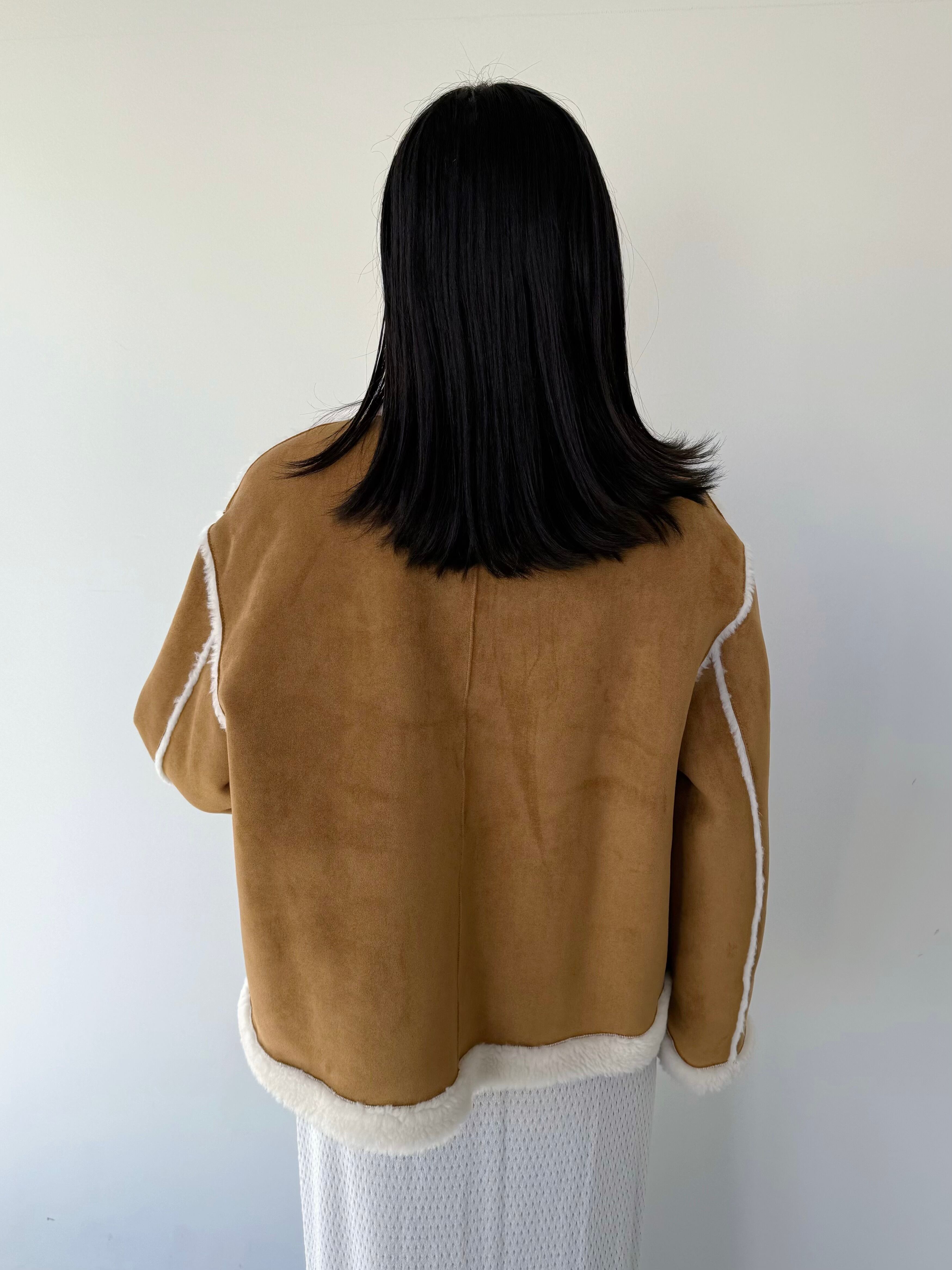ウールとソフトスエードを使用したリバーシブルシアリングジャケット.。