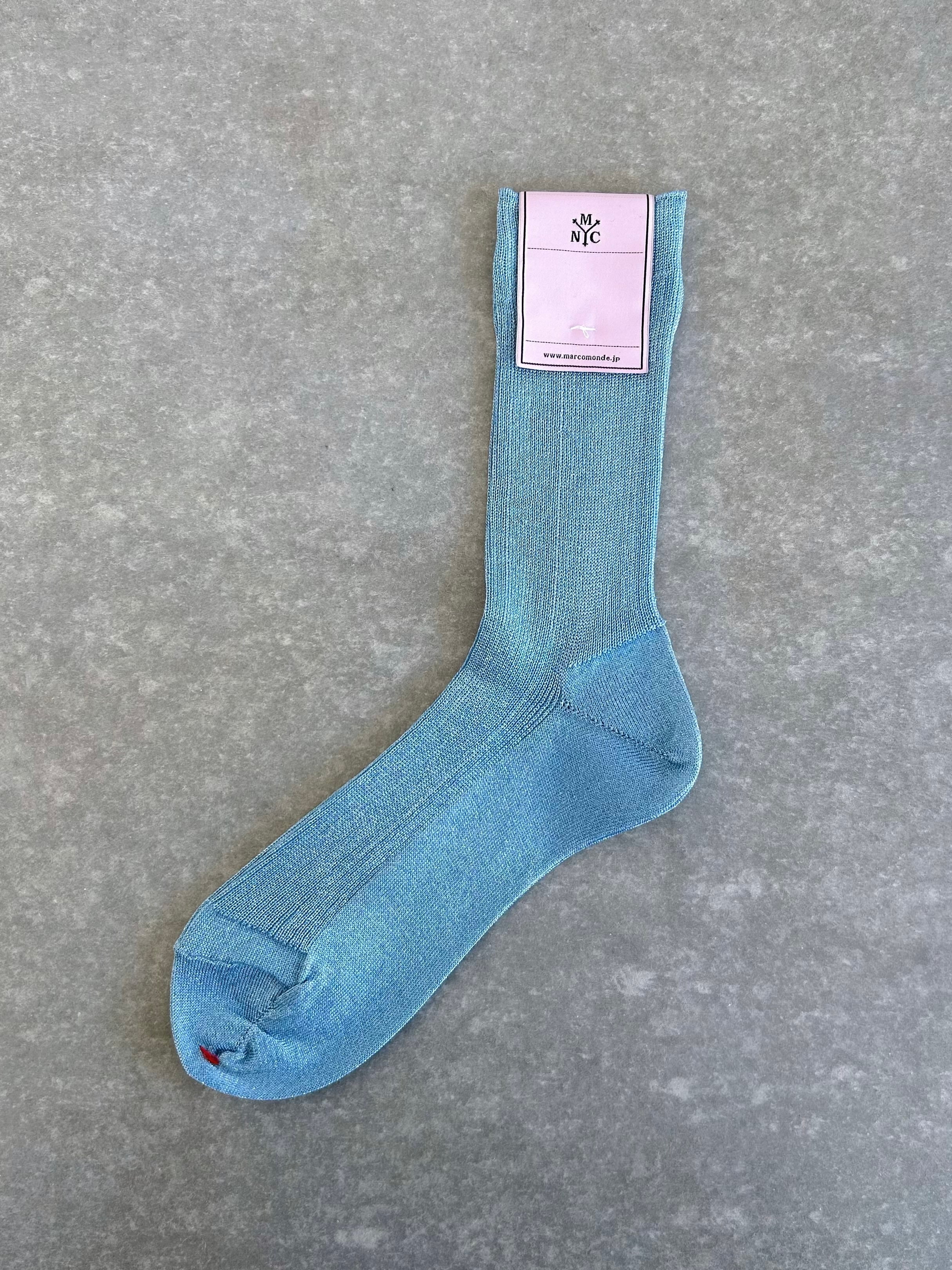 リブのグリッターソックスは肌触りのいいラメ糸を使用し