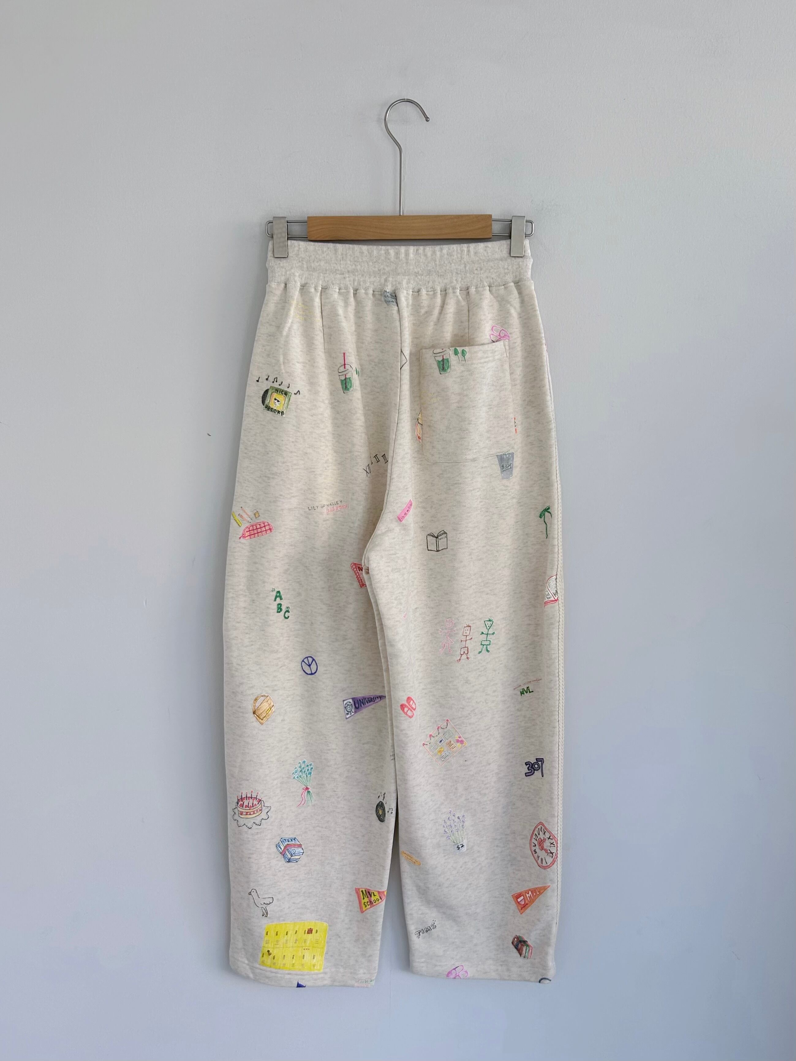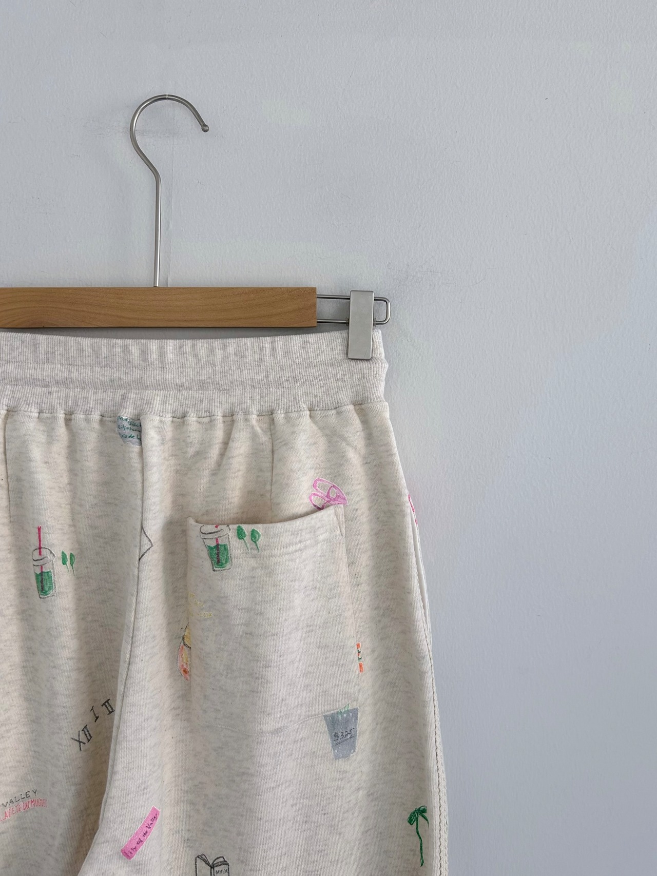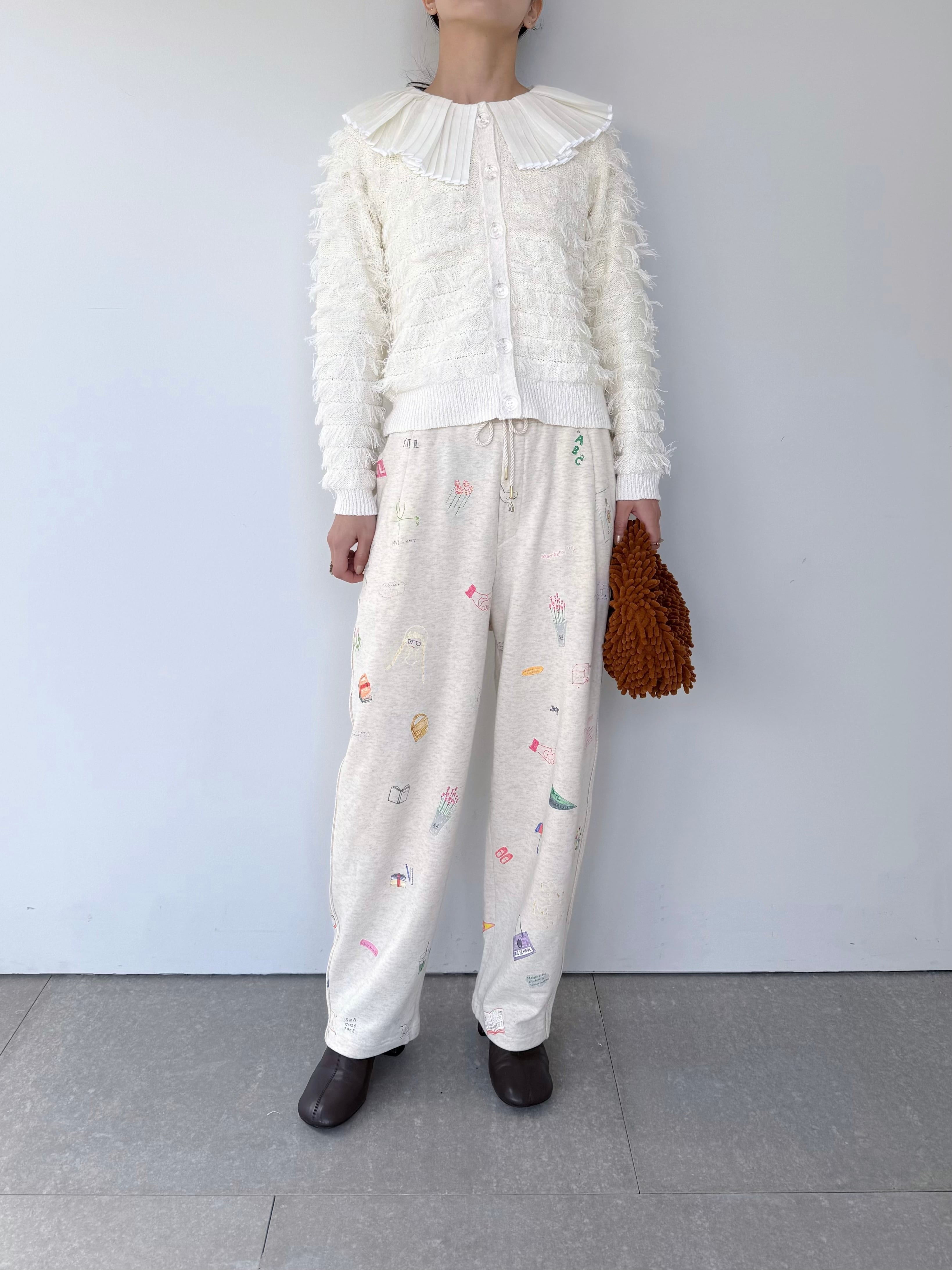 レース襟付き落書きプリントスウェットプルオーバーとセットアップでの着用もおすすめ。