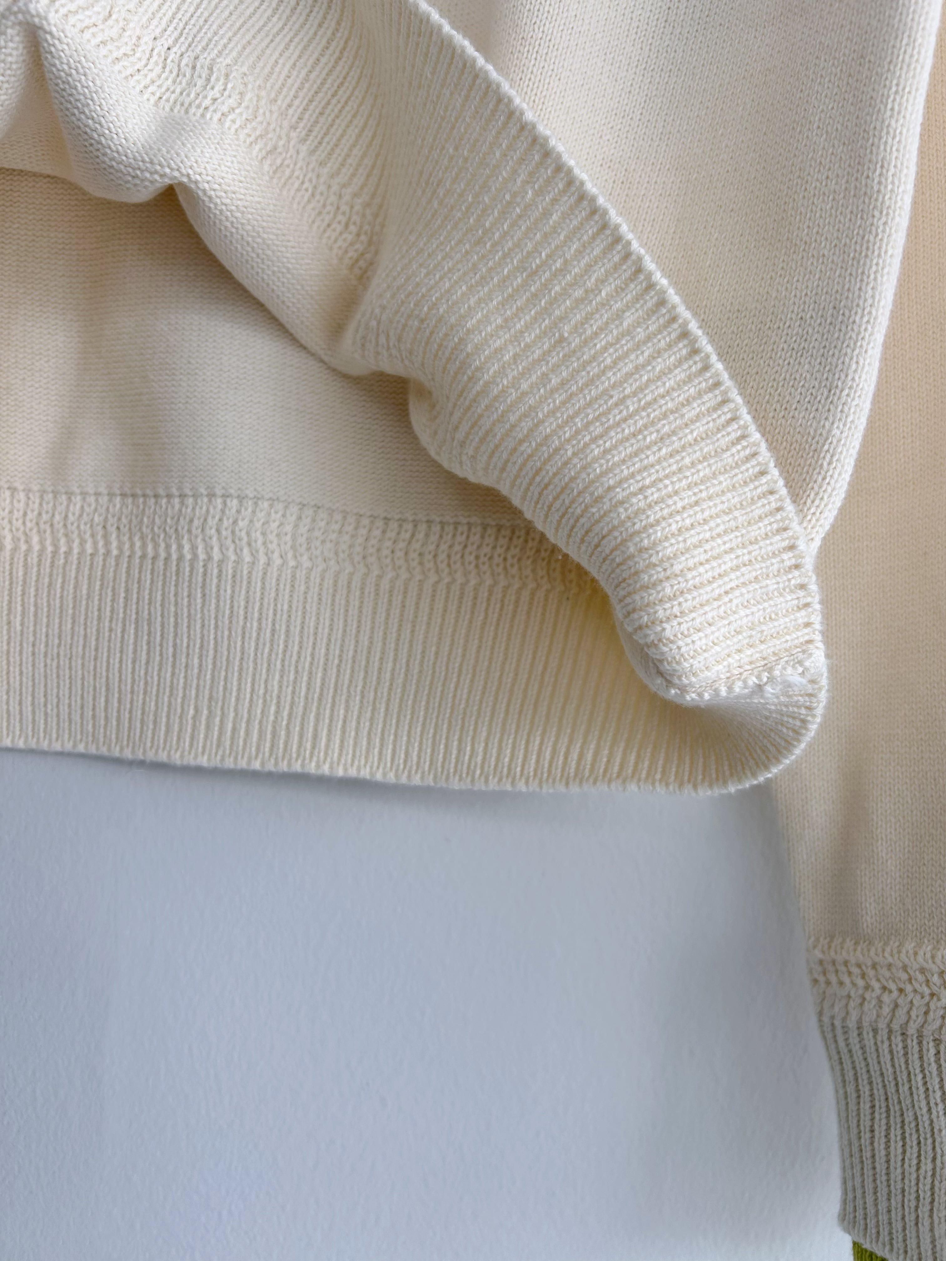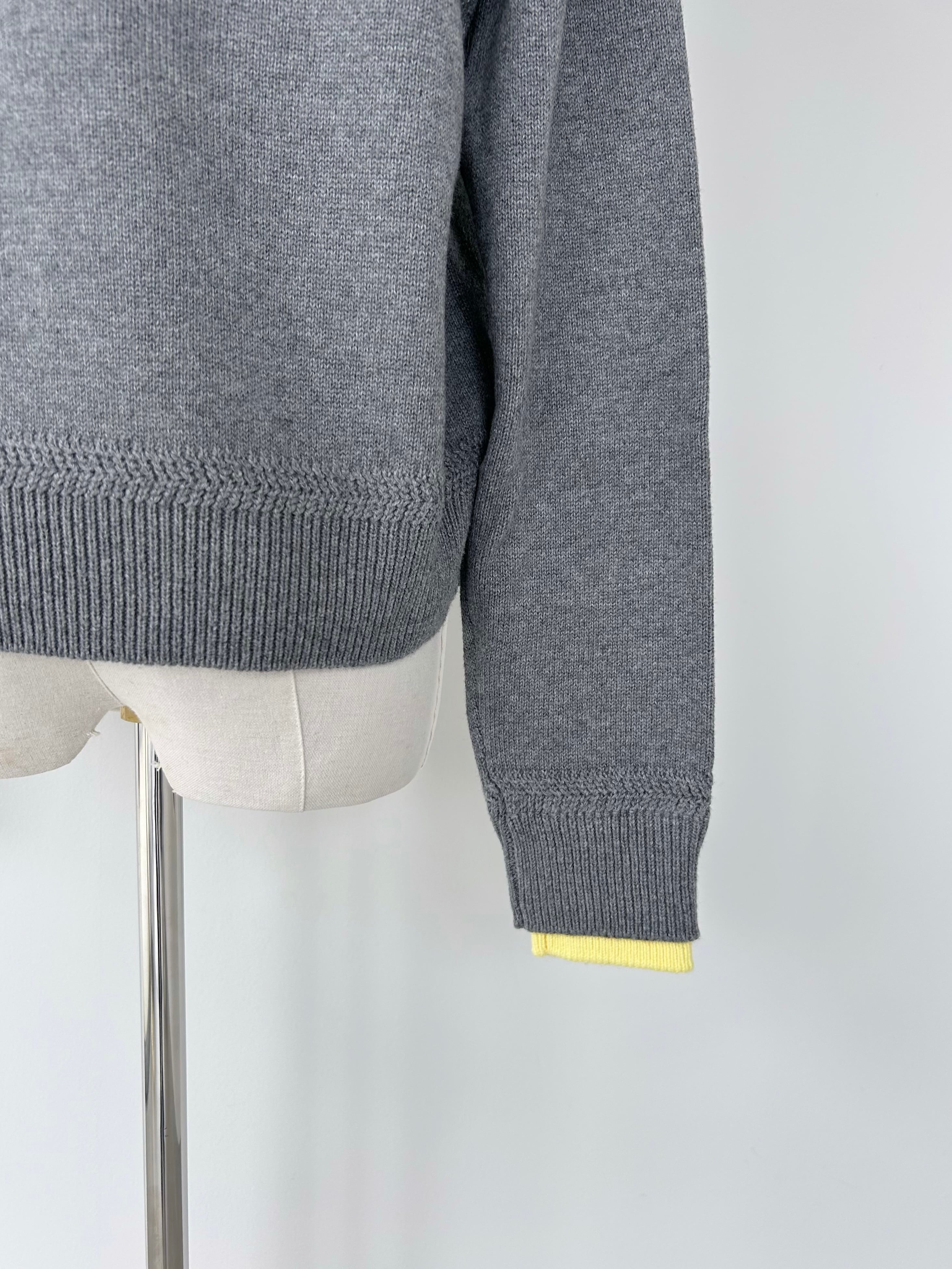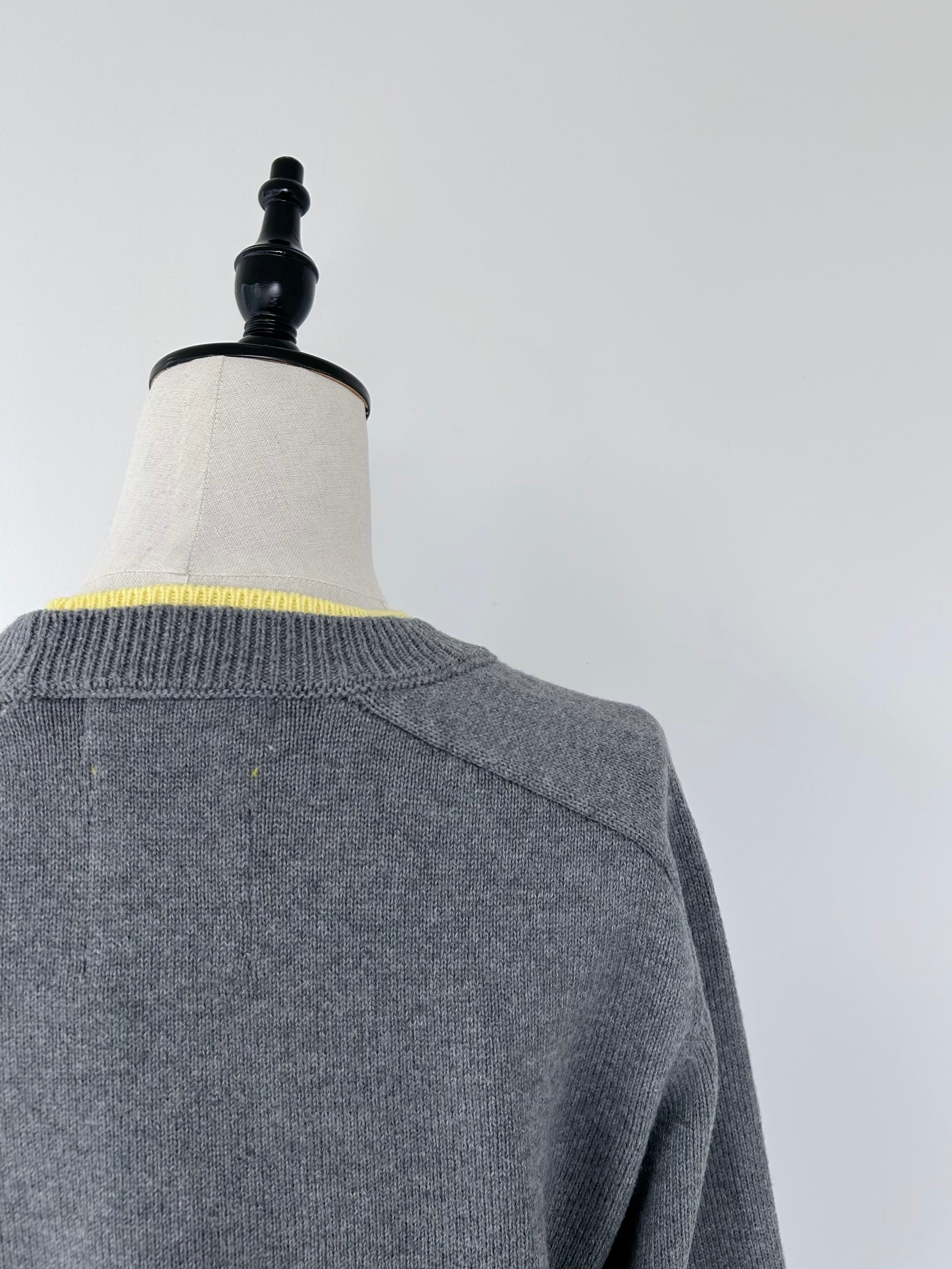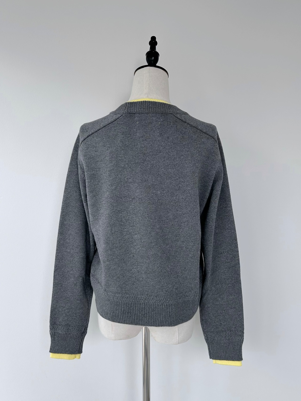 コレクションテーマに合わせたフレンチブルドッグがモチーフのインターシャプルオーバー。