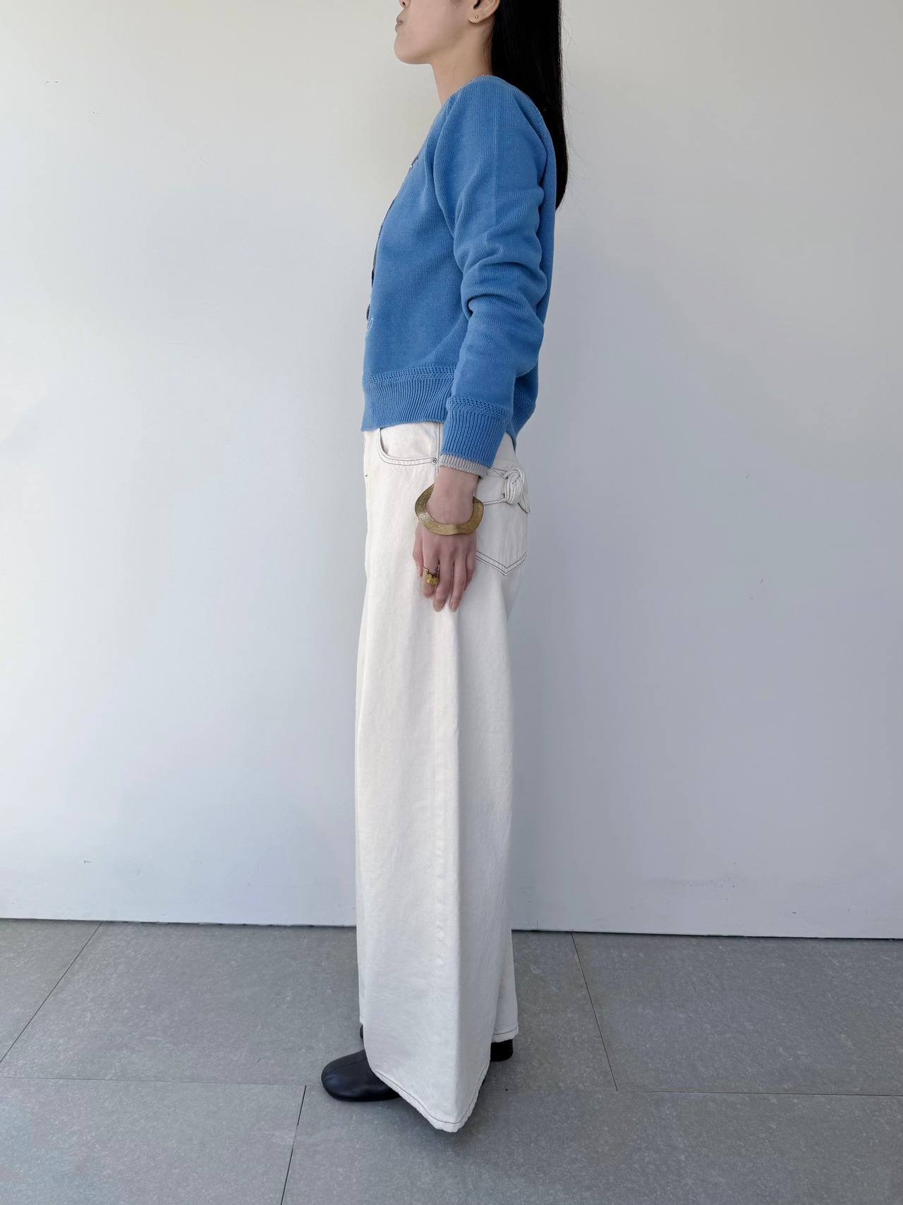ボトムスを選ばない、ほどよくコンパクトな着丈なのもうれしい。