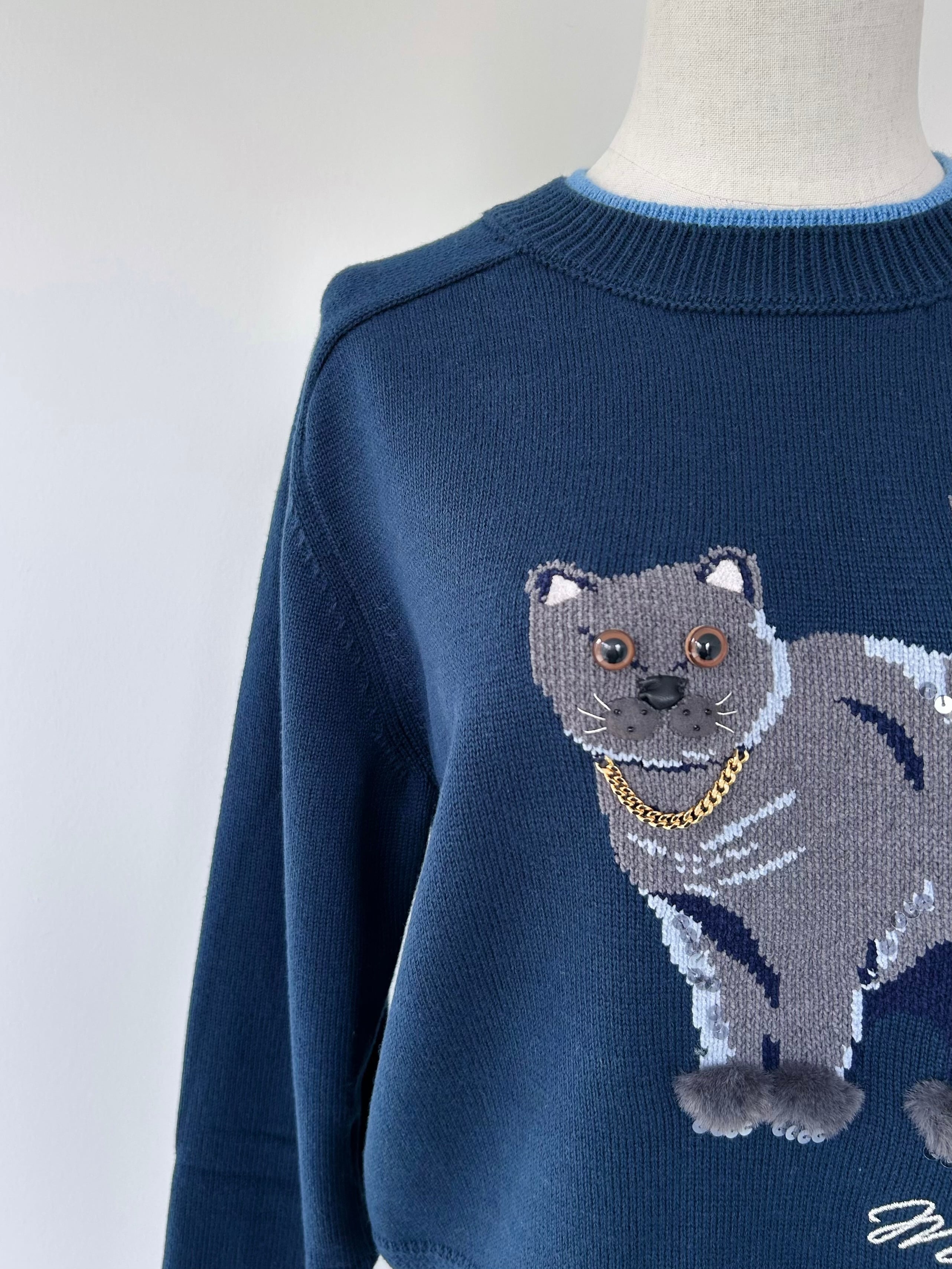 コレクションテーマに合わせたシャルトリューがモチーフのインターシャプルオーバー。