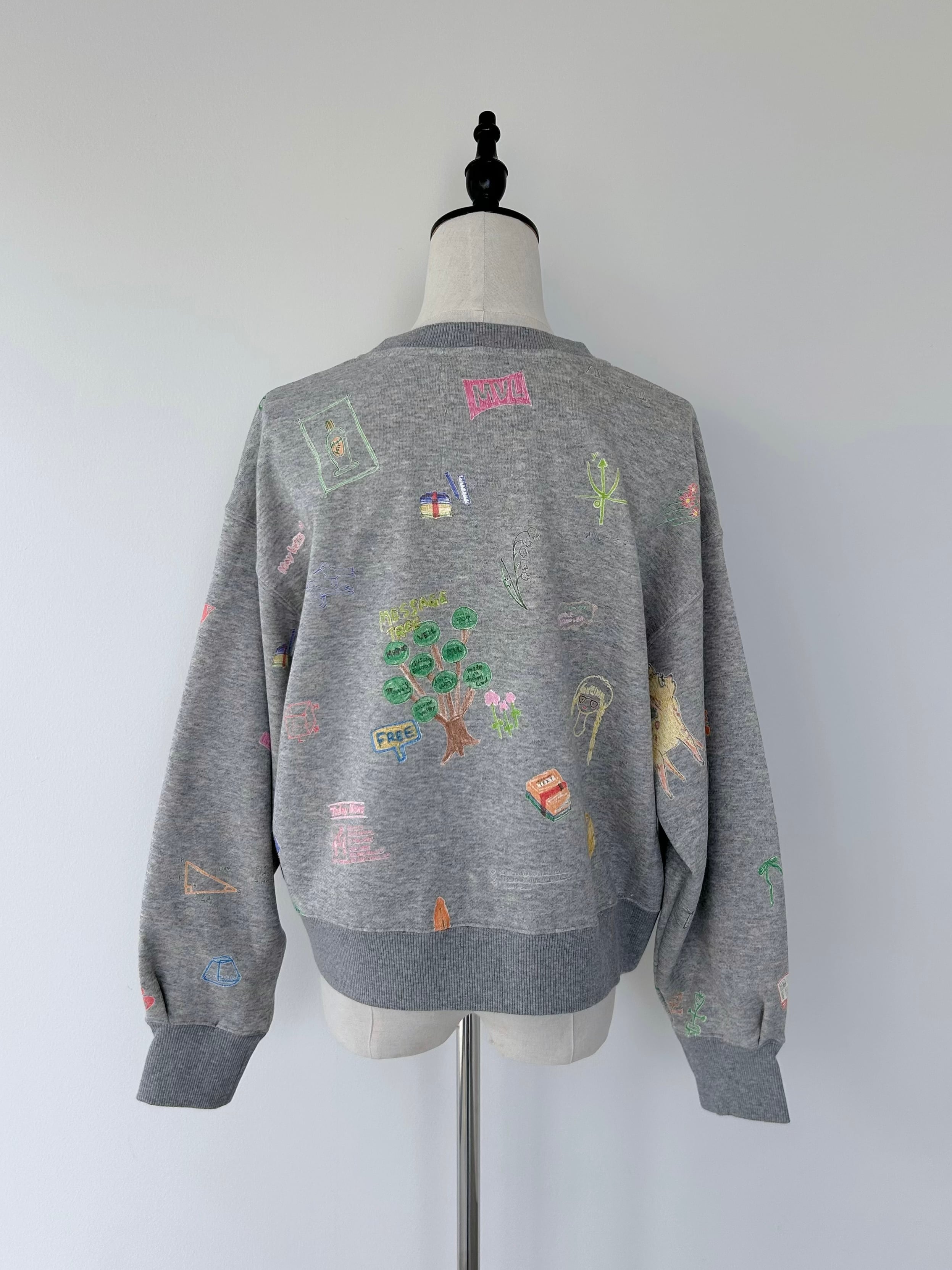 コレクションテーマに合わせて学生時代のマジックペンで描いたようなオリジナルの落書きプリントで遊び心を添えた一着。