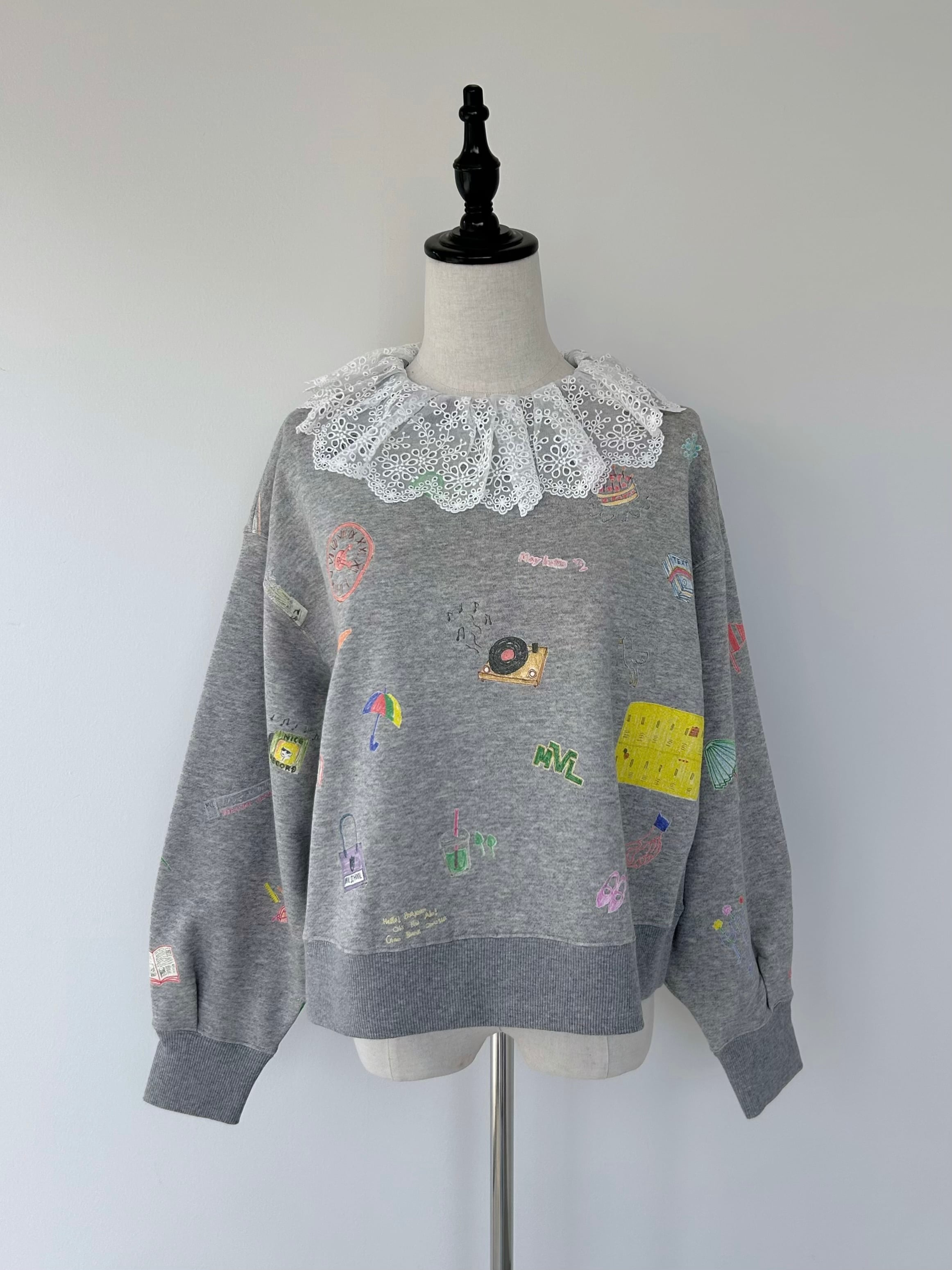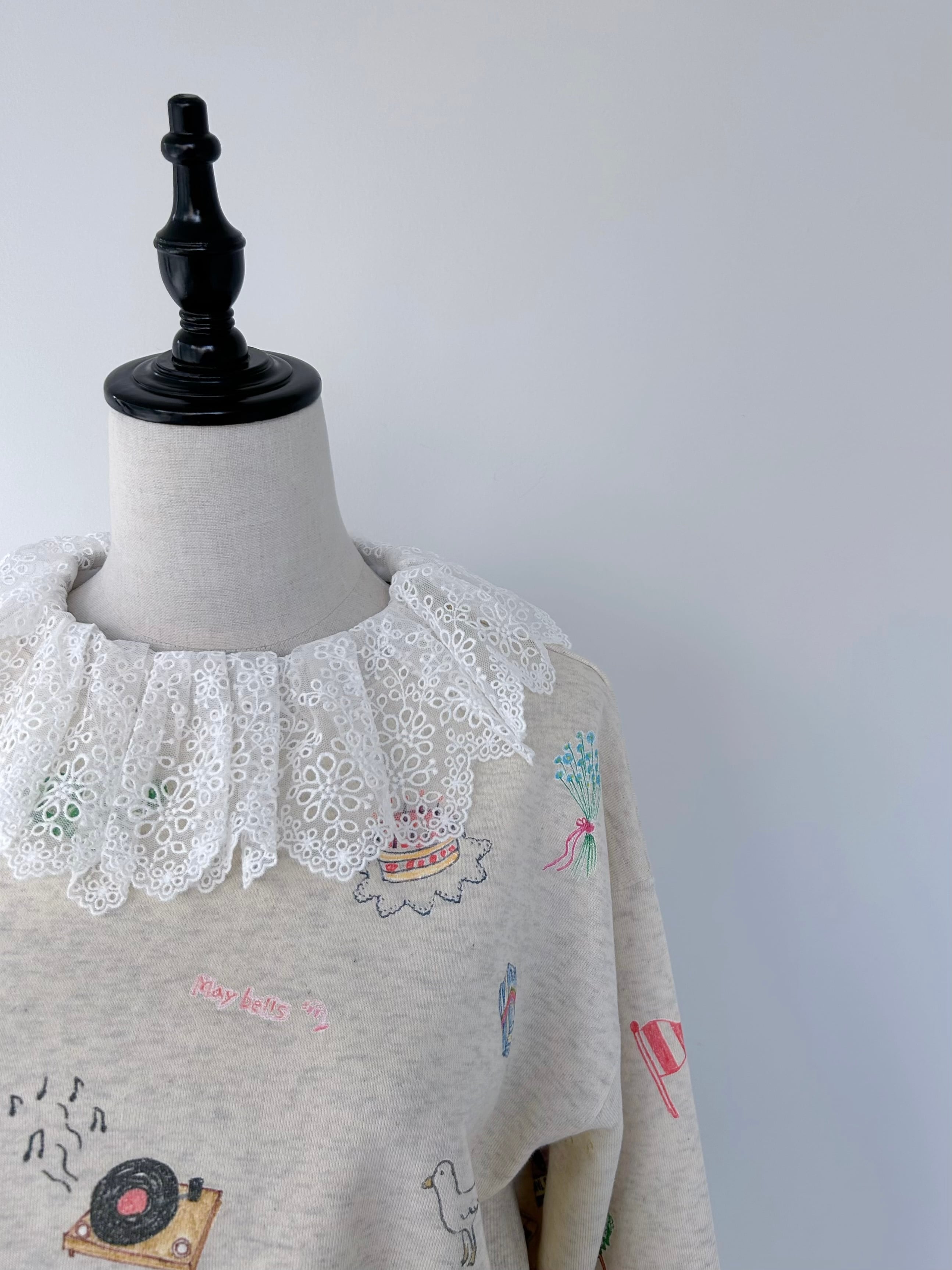 取り外し可能なレース衿付きのスウェットプルオーバー。