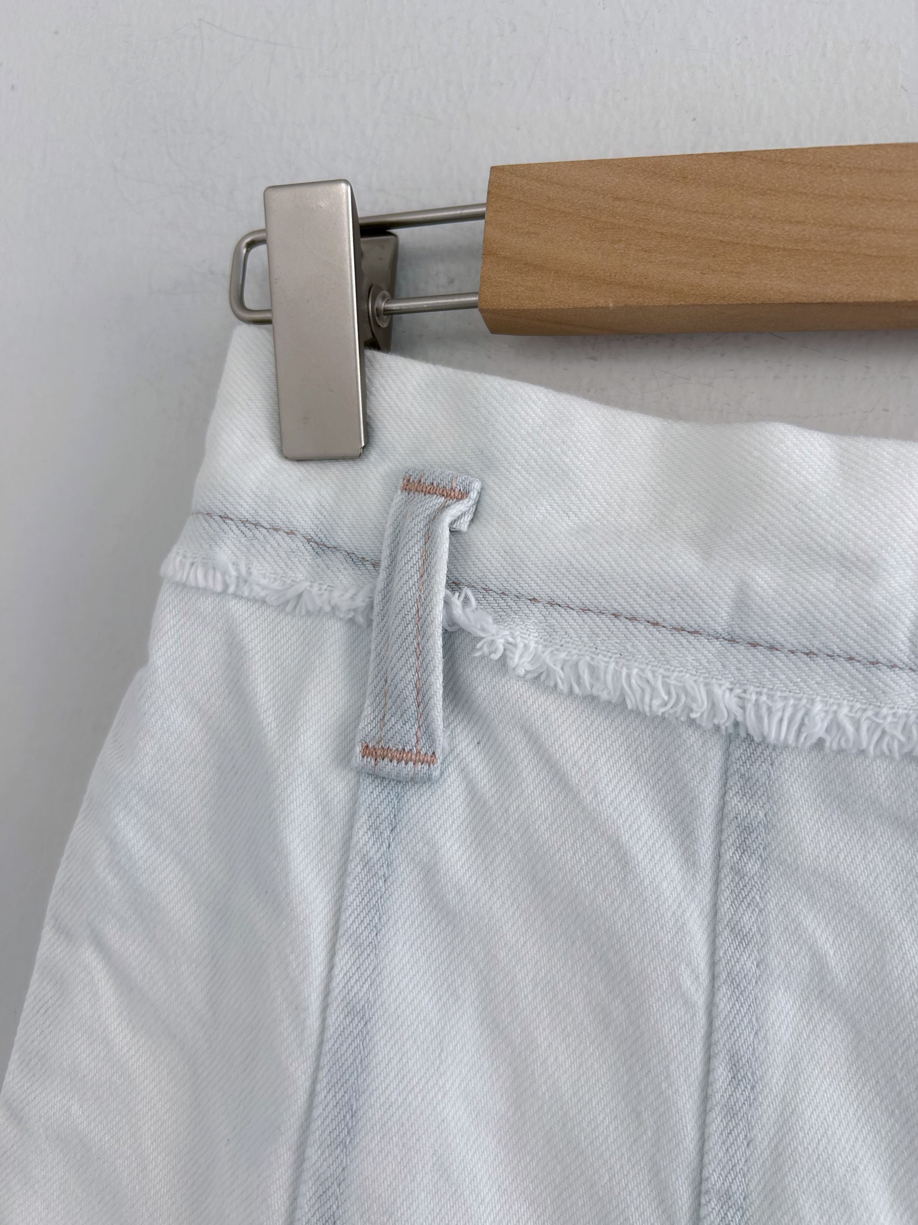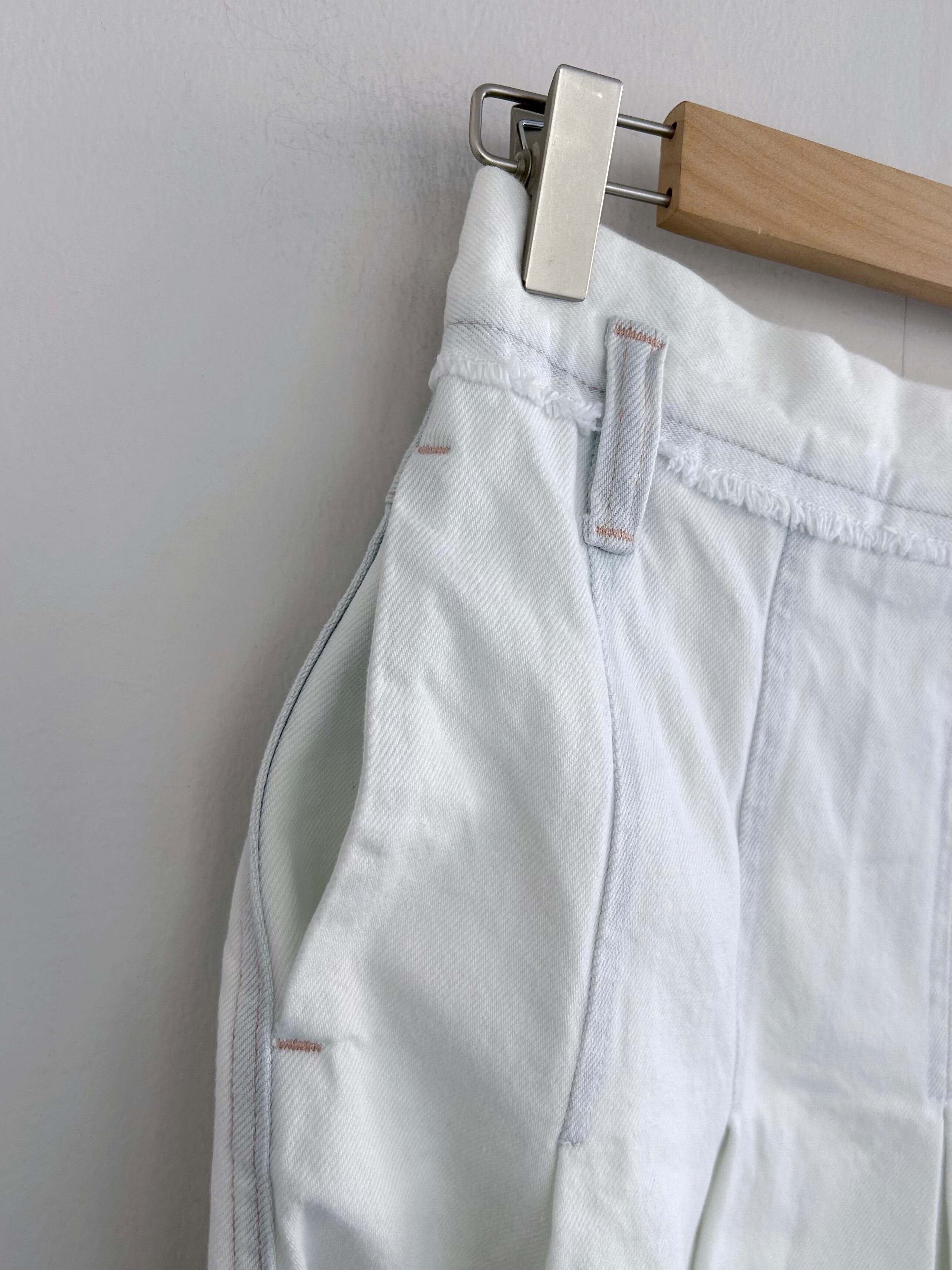 タテヨコ共ストレート糸を使用し、ヴィンテージ感のあるソフトな風合いになるデニムをブリーチしいる。