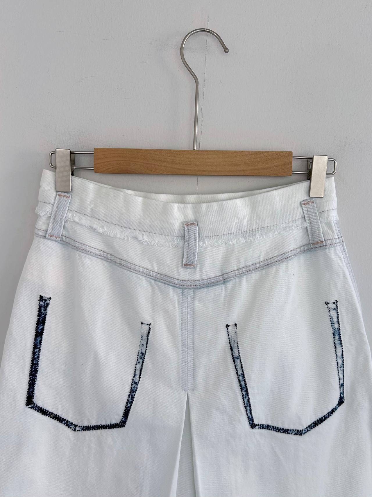 生地の重なる部分はインディゴがほんのり残り、ポケットは加工後に外すことでインディゴがしっかり残ってポイントに。