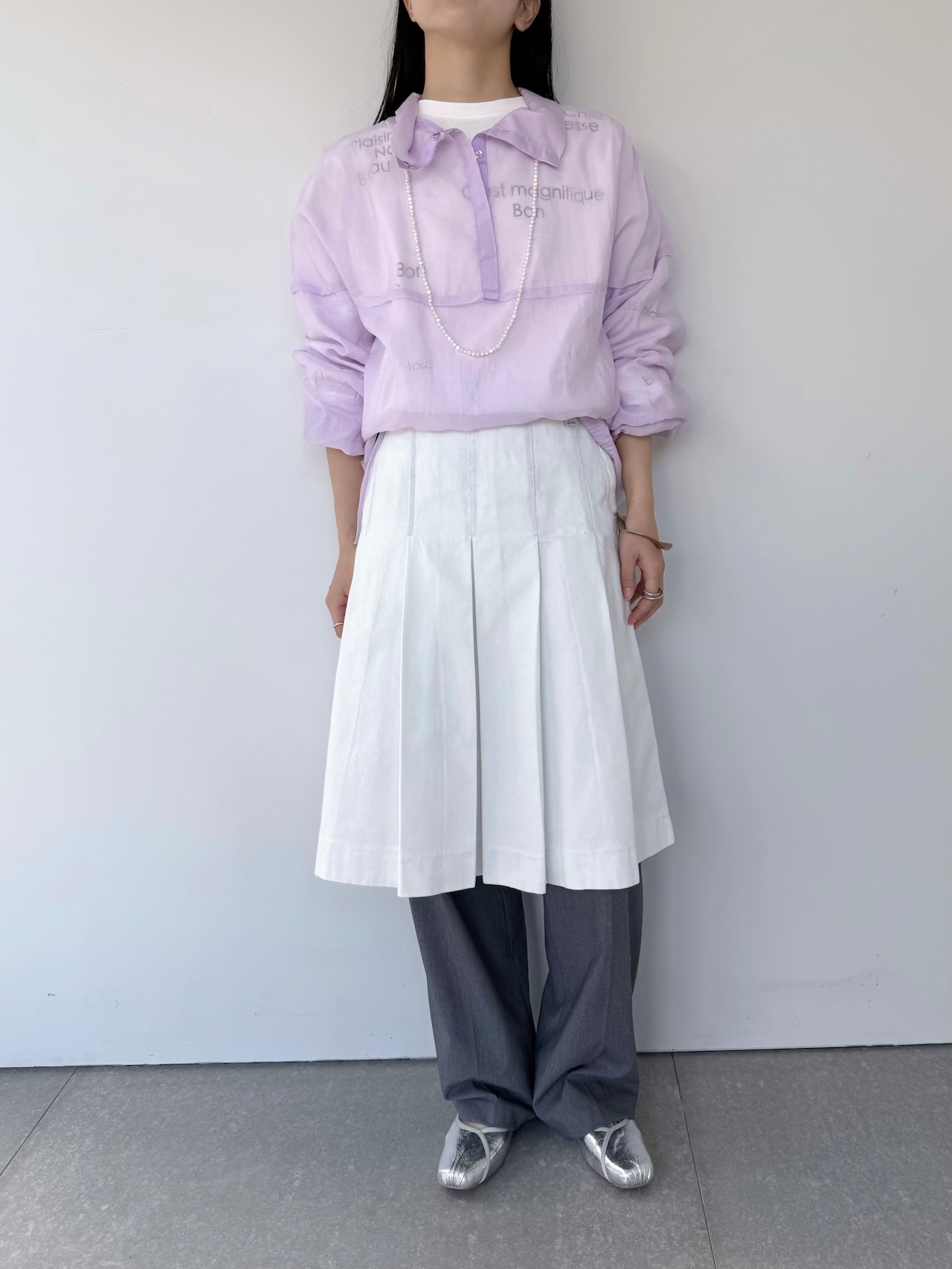 ローウエストで大人が履けるプリーツスカート。