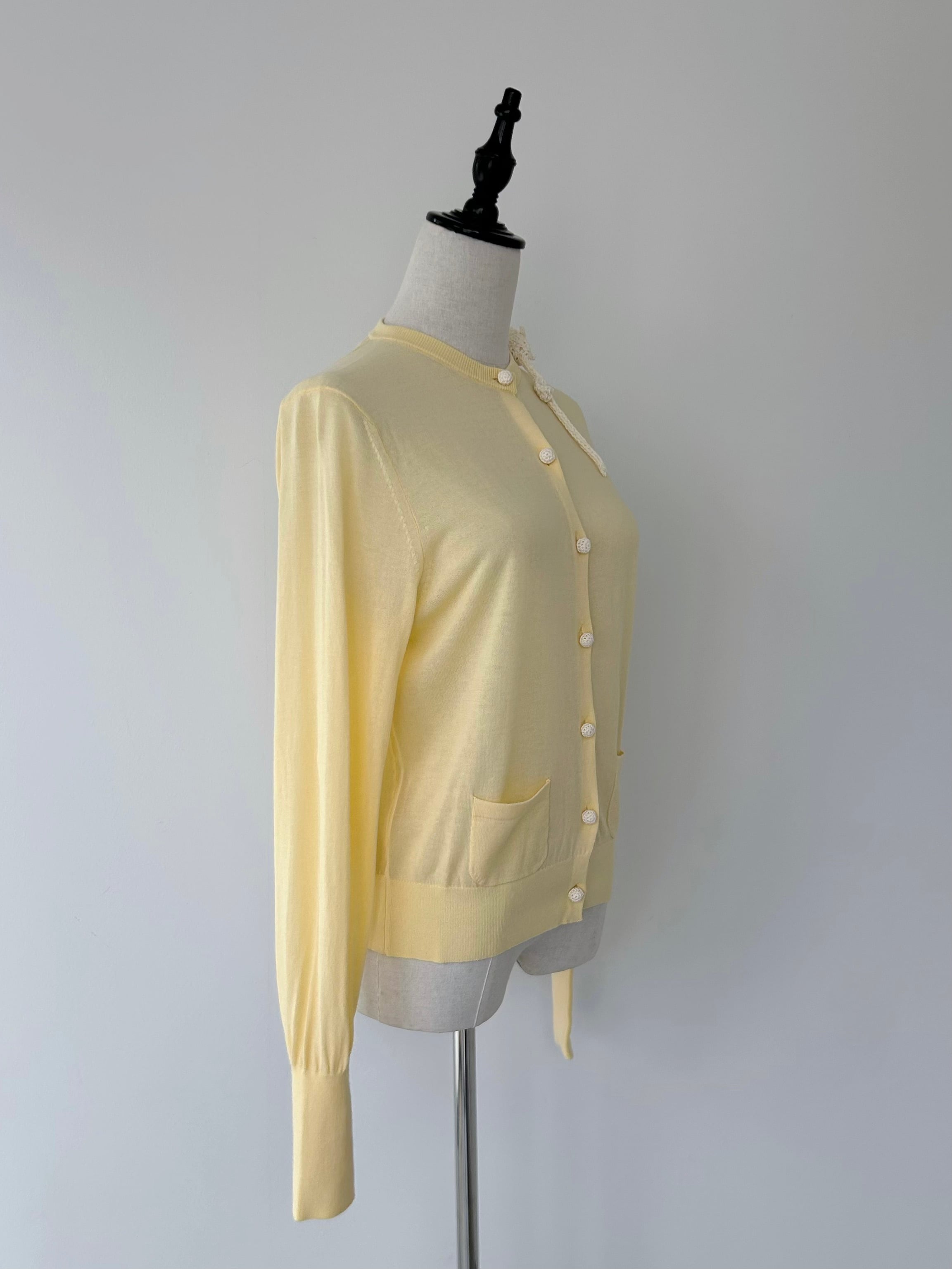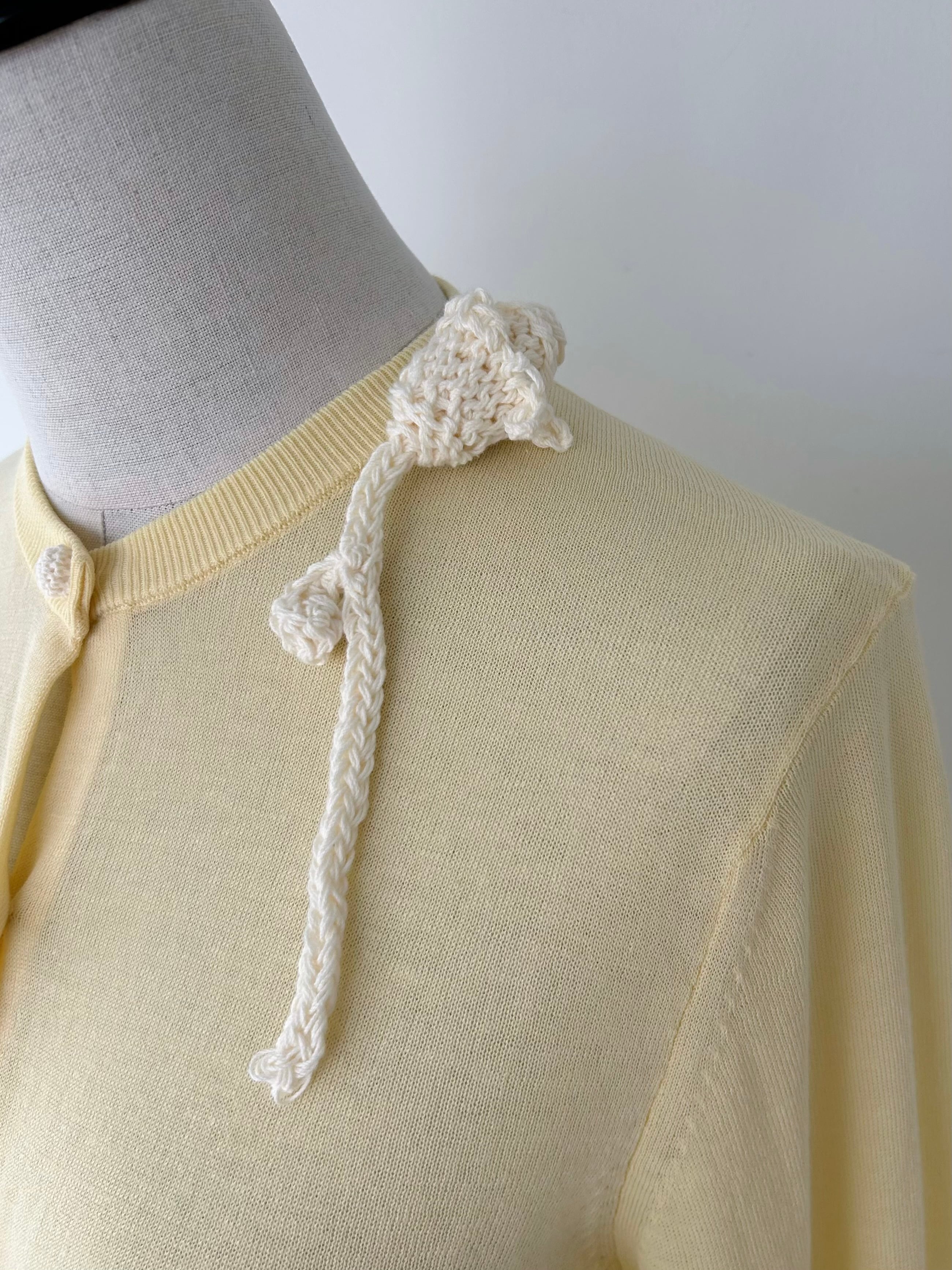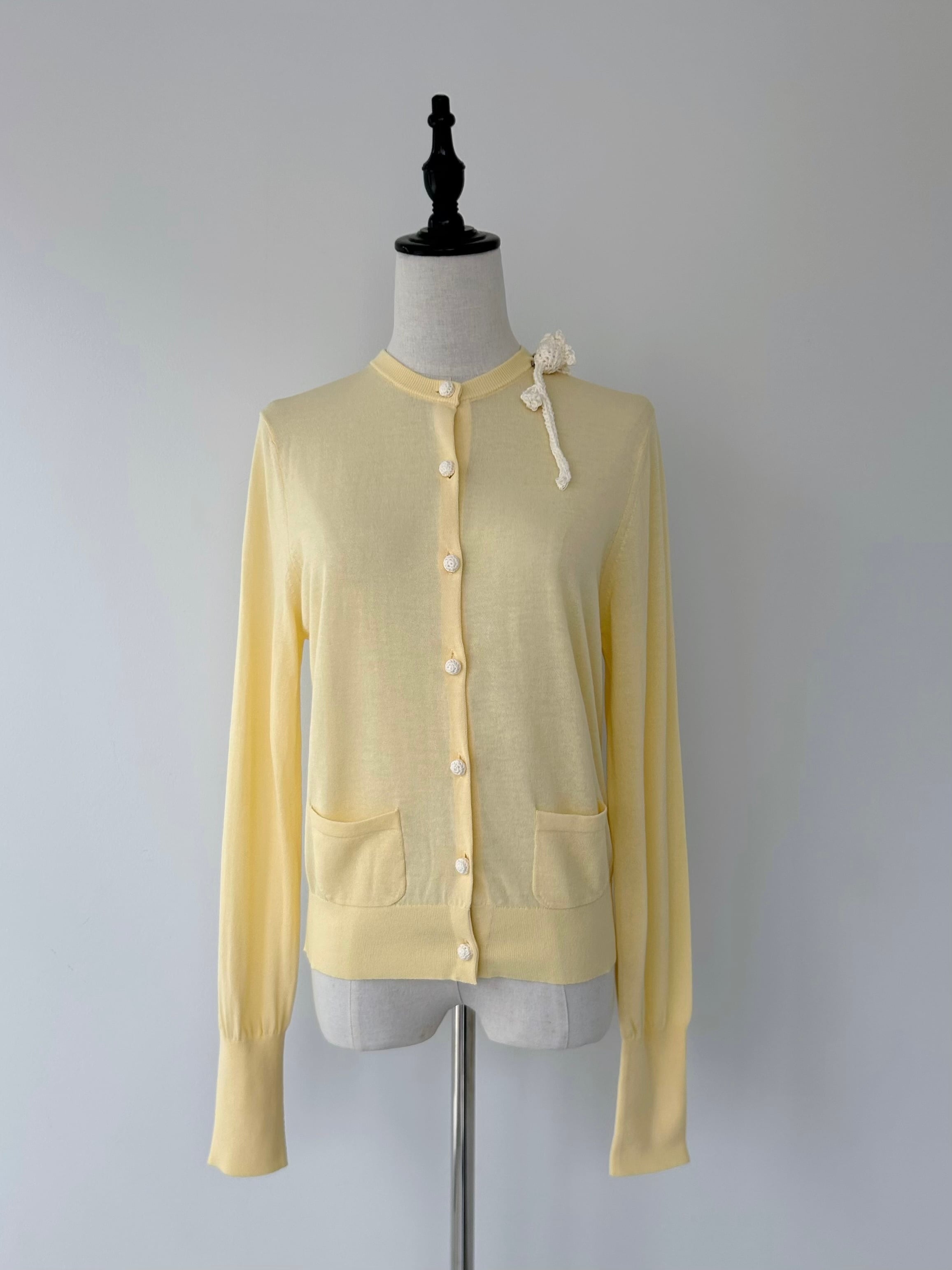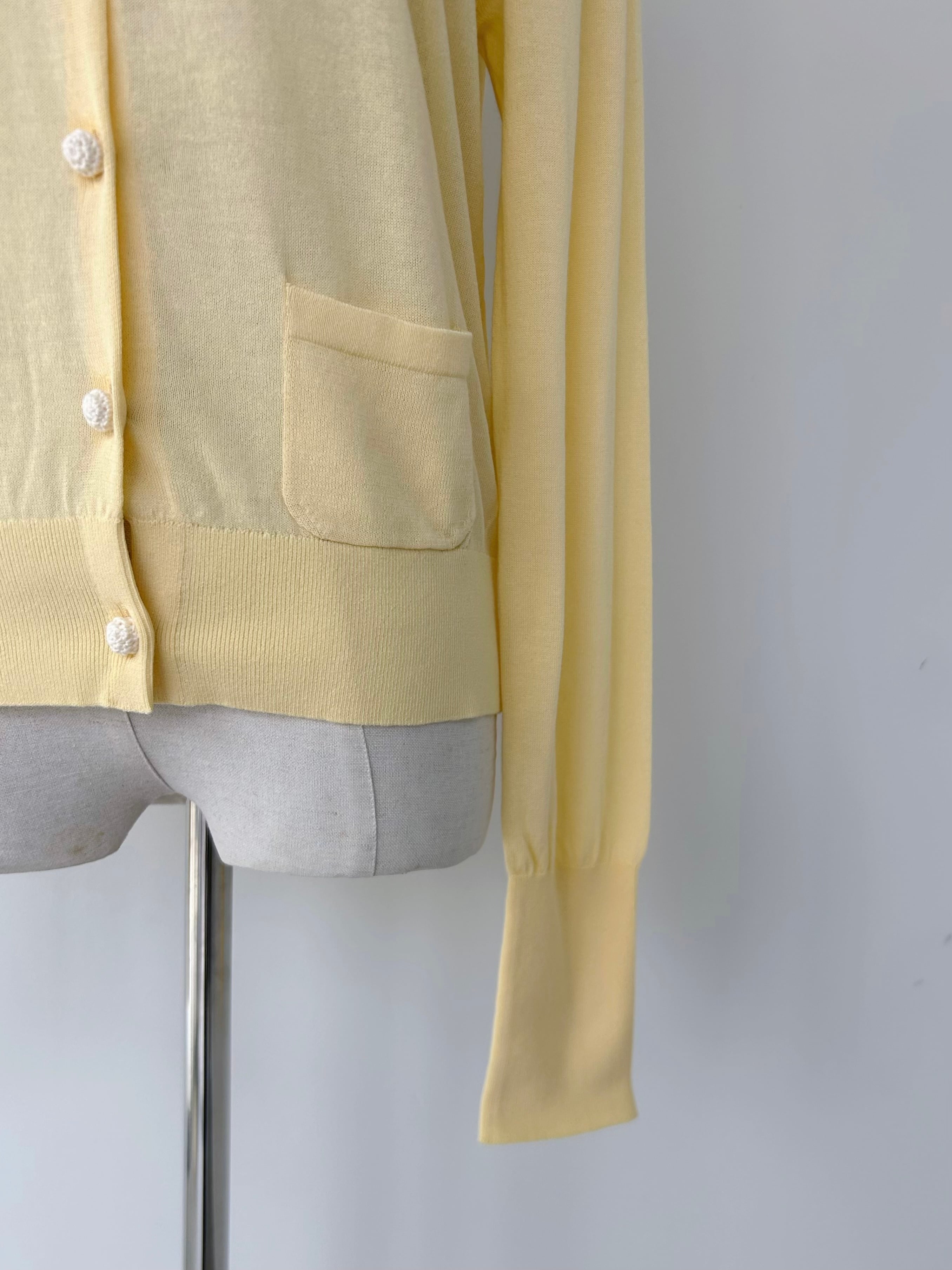 小さなポケットがかわいらしいアクセントに。レーヨンコットンのなめらかで柔らかな質感のニット素材が手放せなくなる。