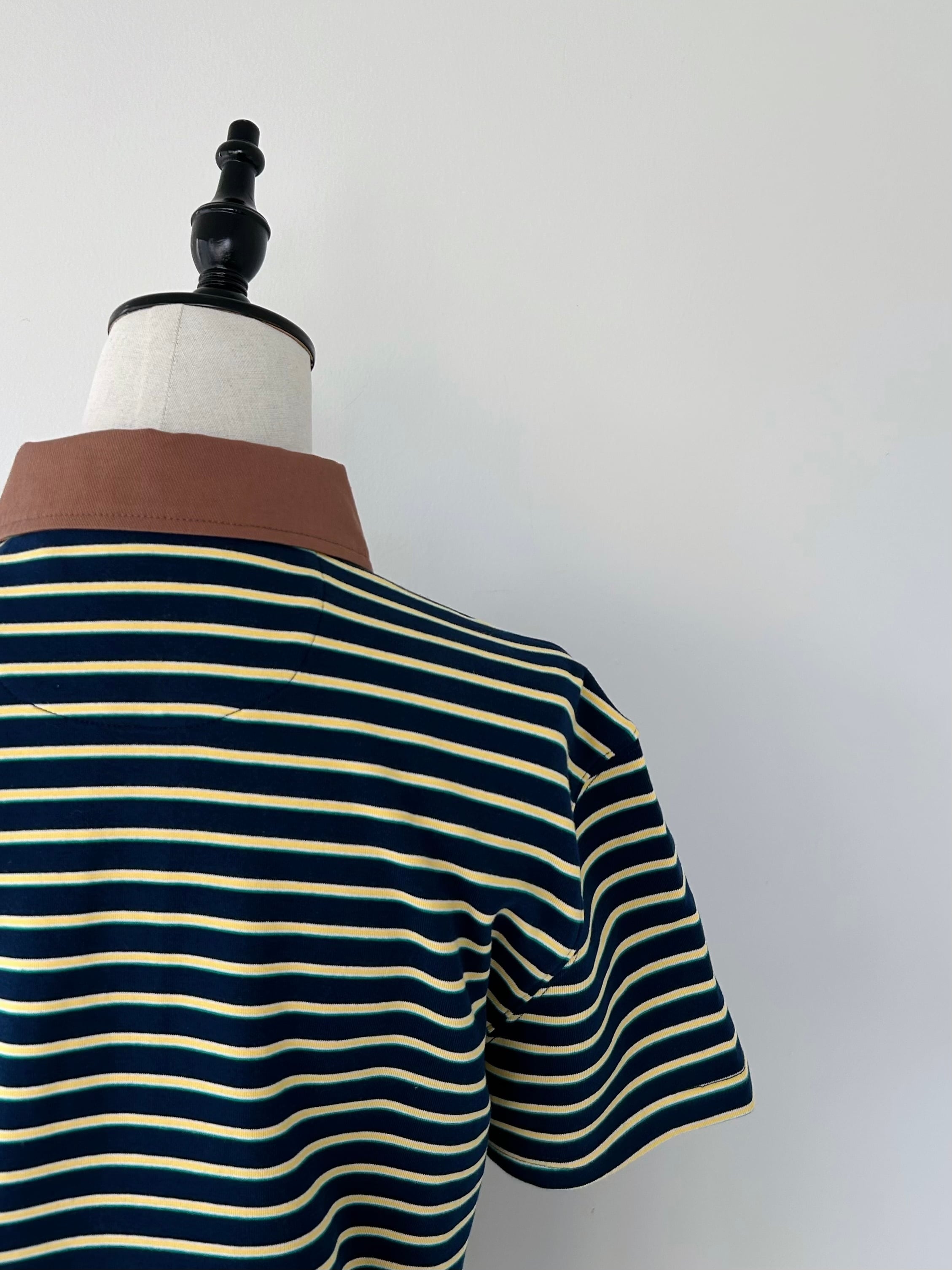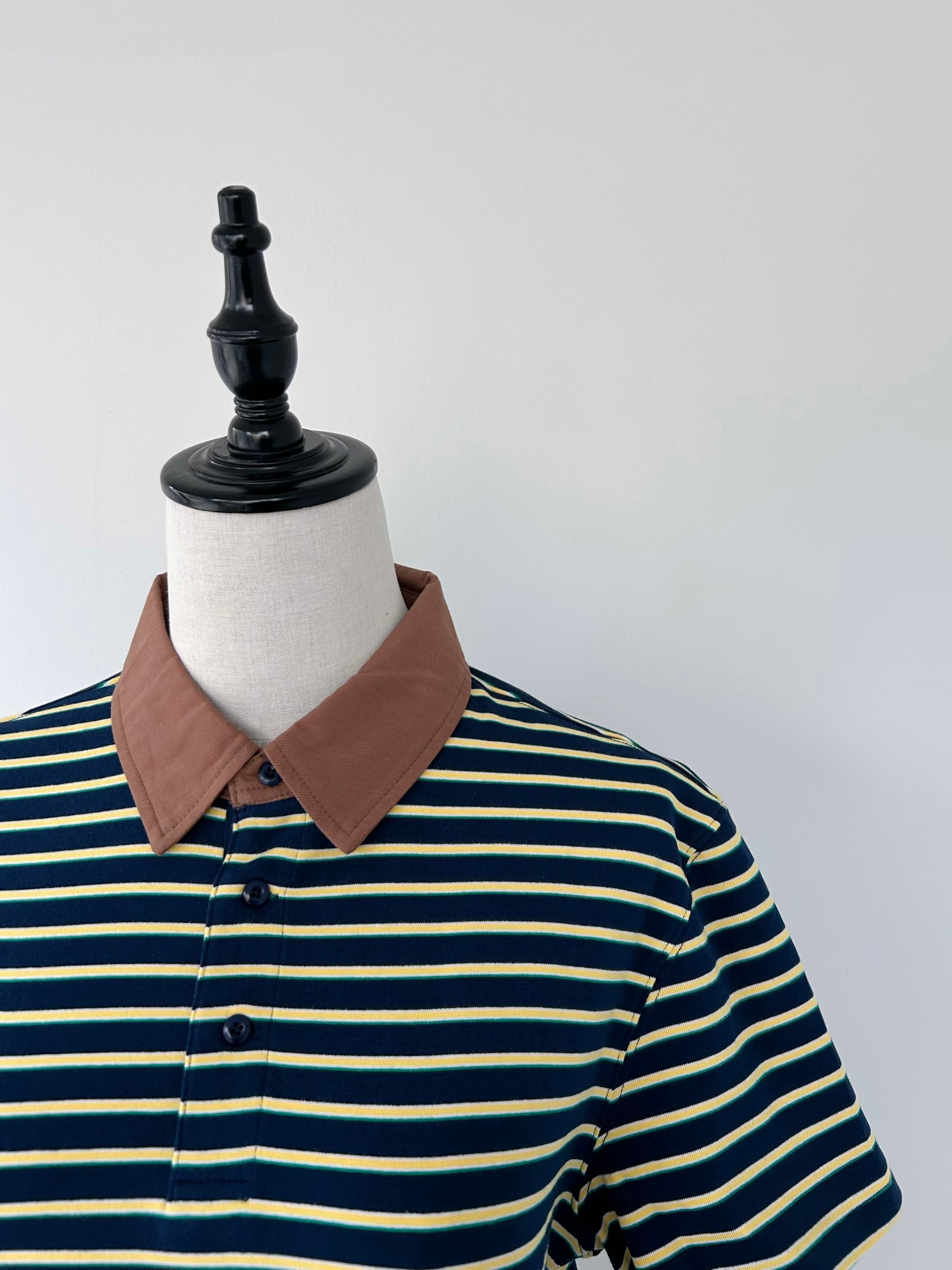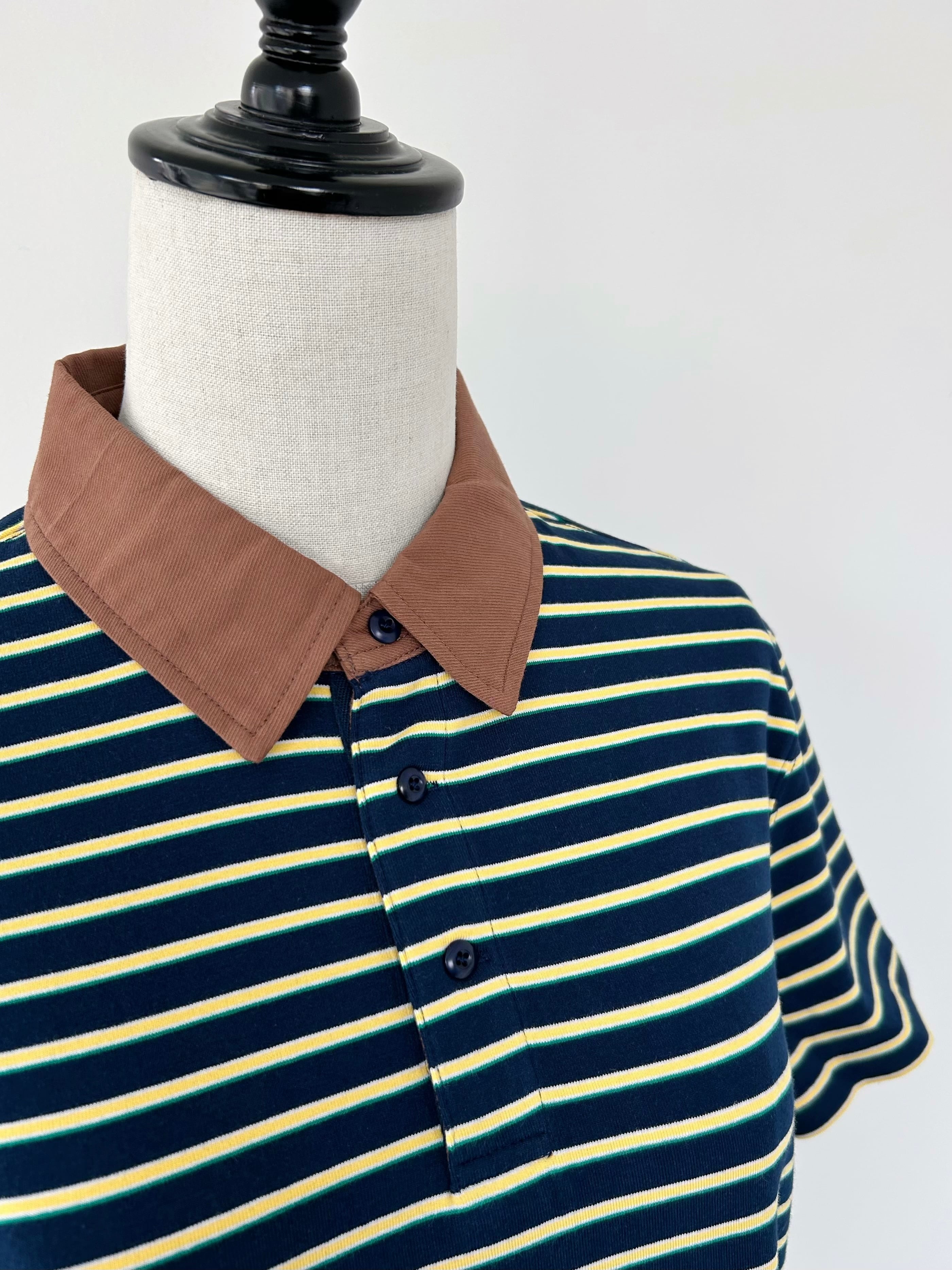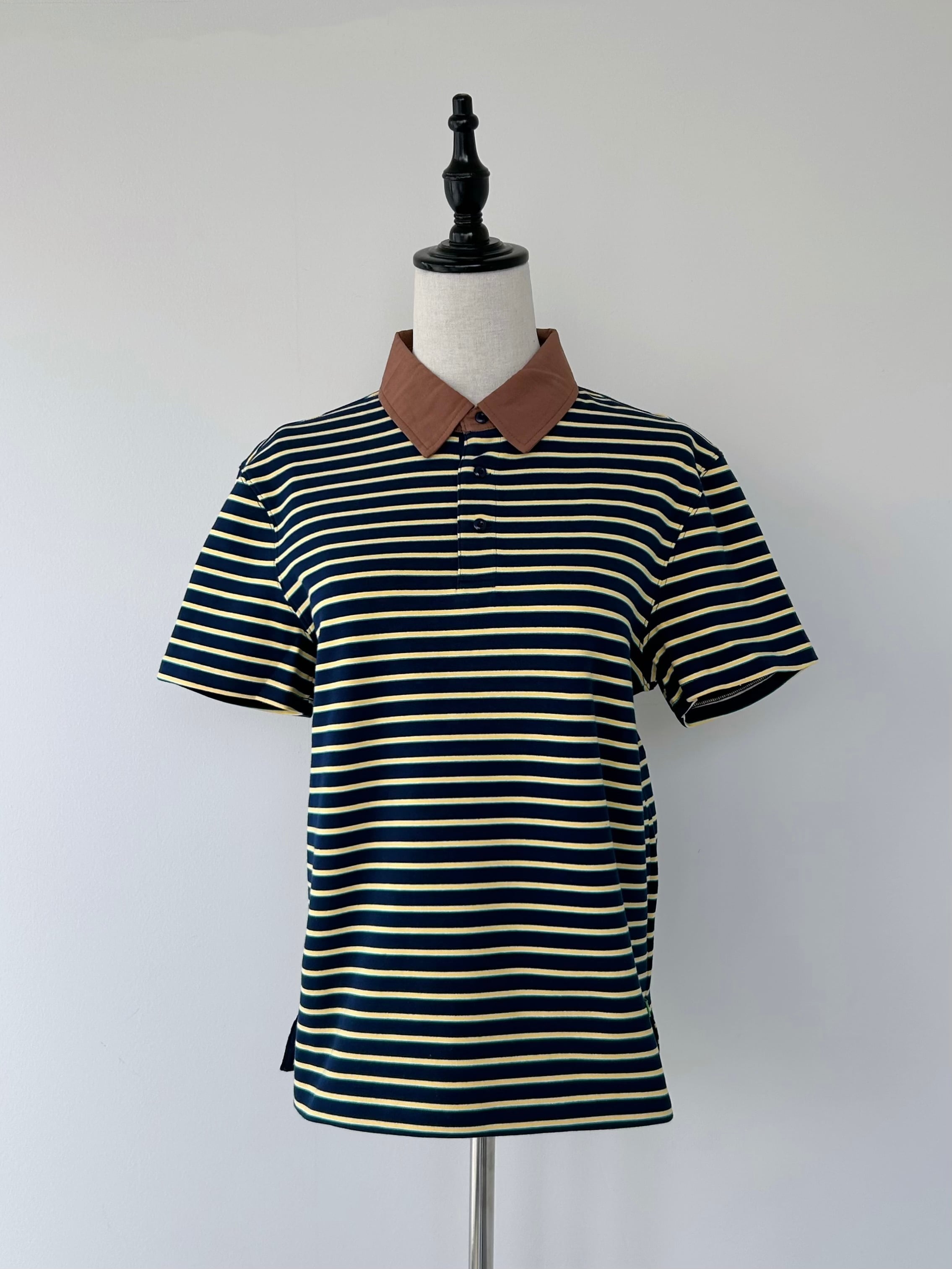 伸縮性に優れ、快適な着心地のストライプポロ。